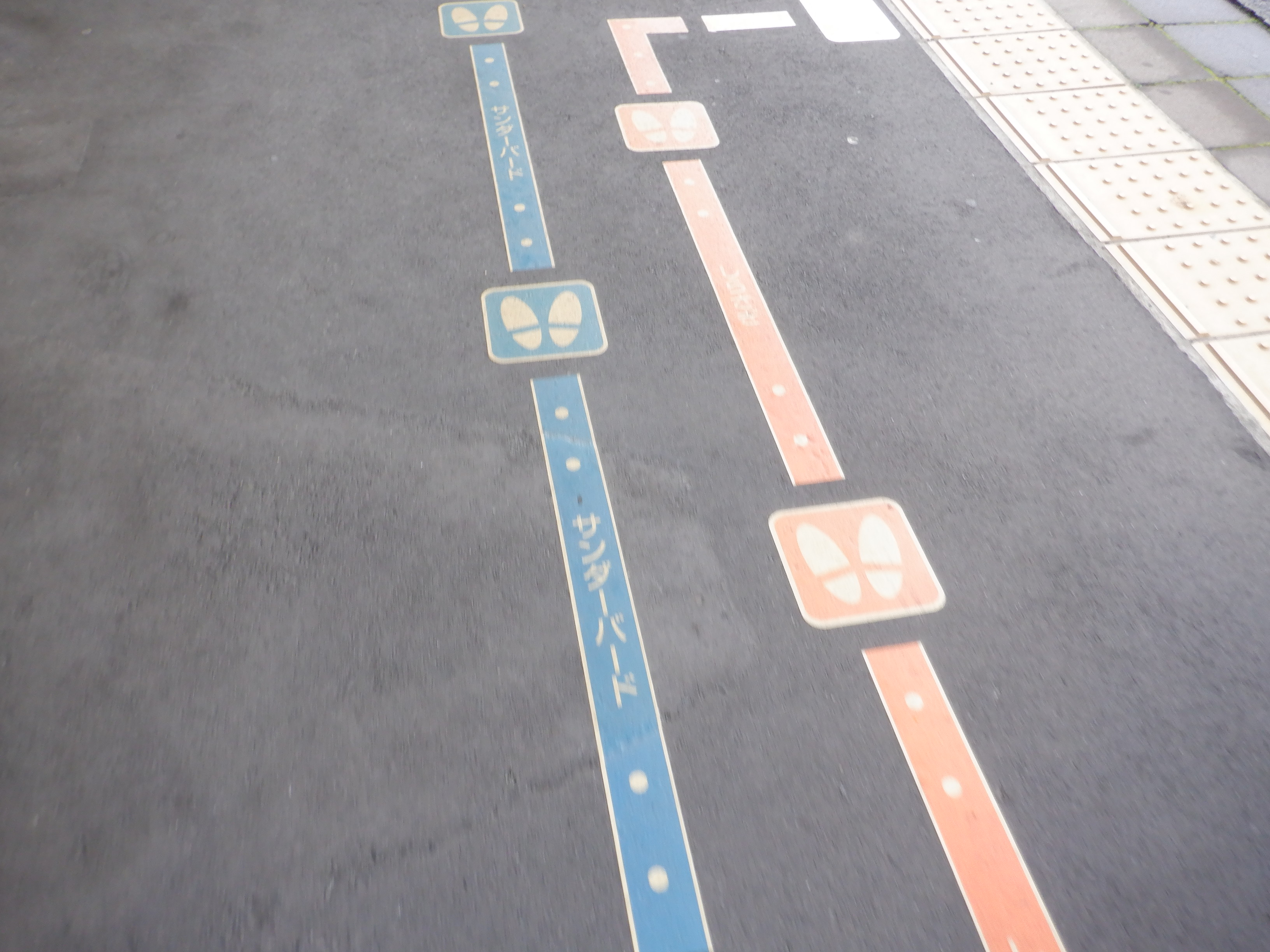 1番のりば特急列車の乗車位置案内。一つ普通列車のものが混じっています。