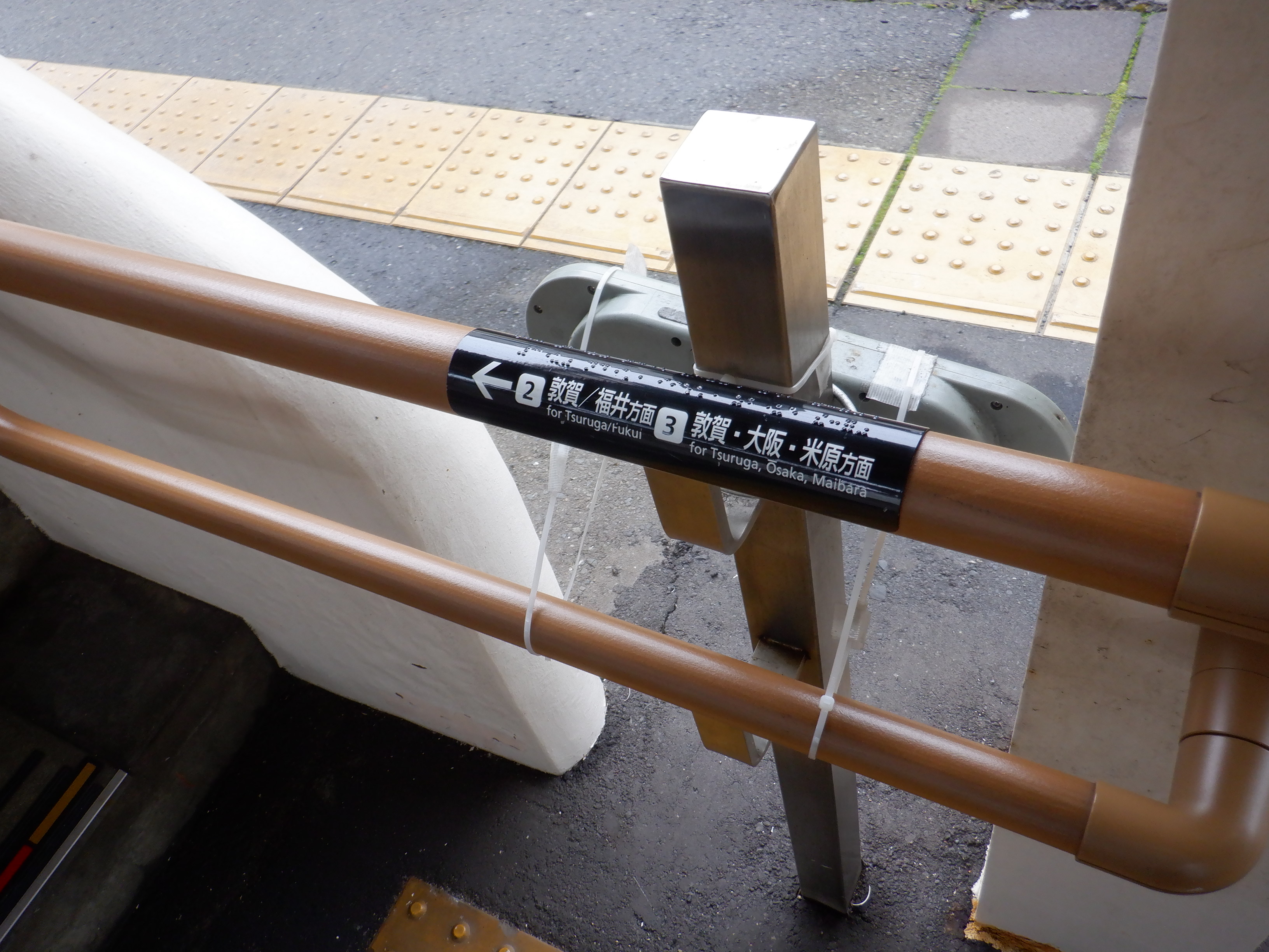 1番のりばから見た2番のりば武生駅側の駅名標。
