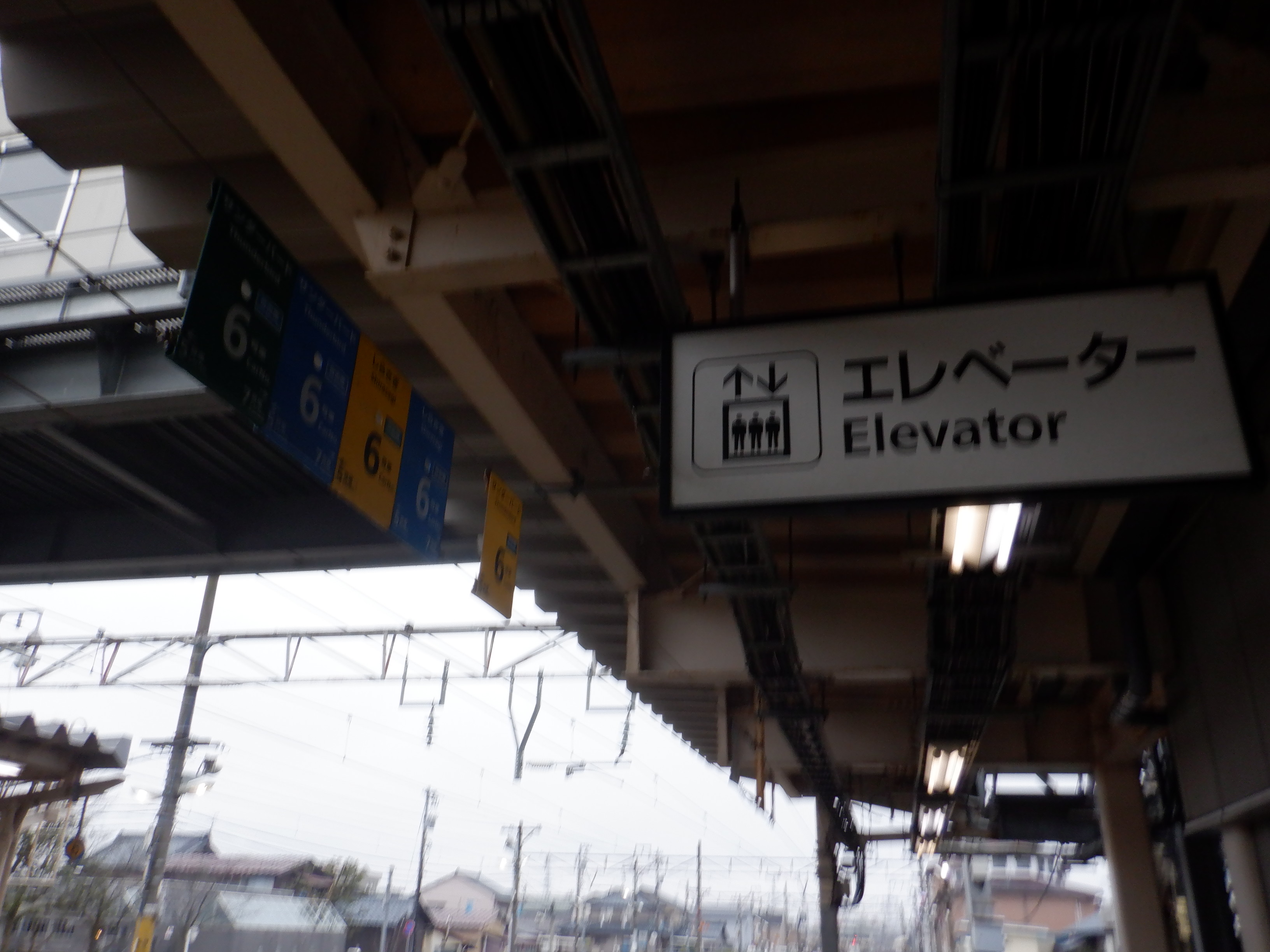 2・3番のりば上屋のエレベーター側の駅名標。