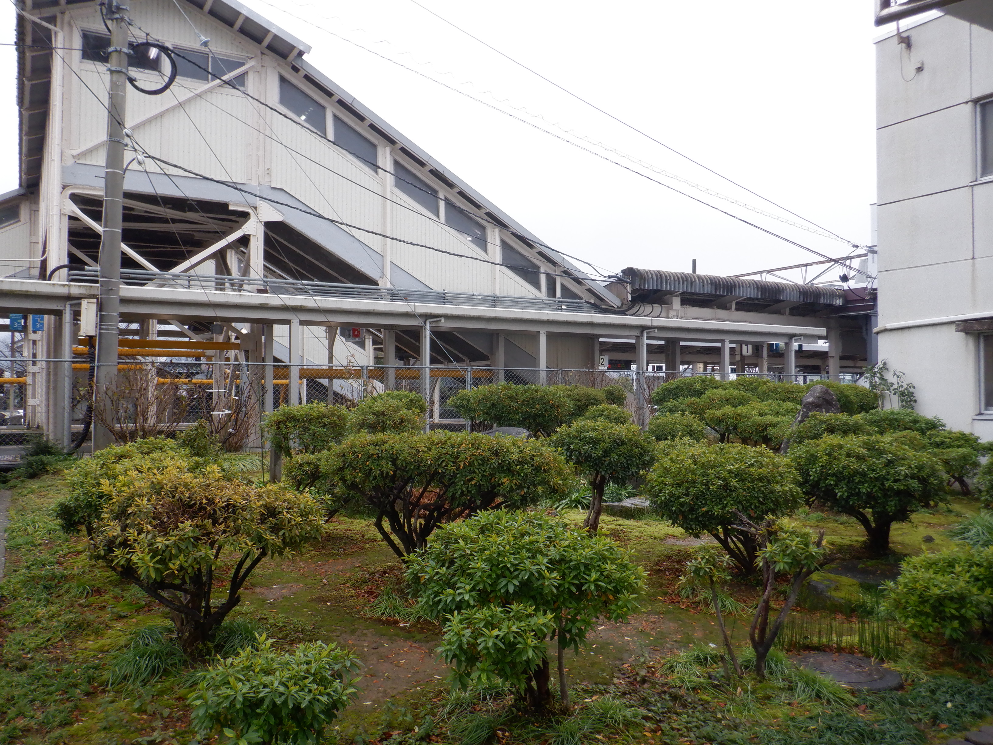 駅舎横から庭園。