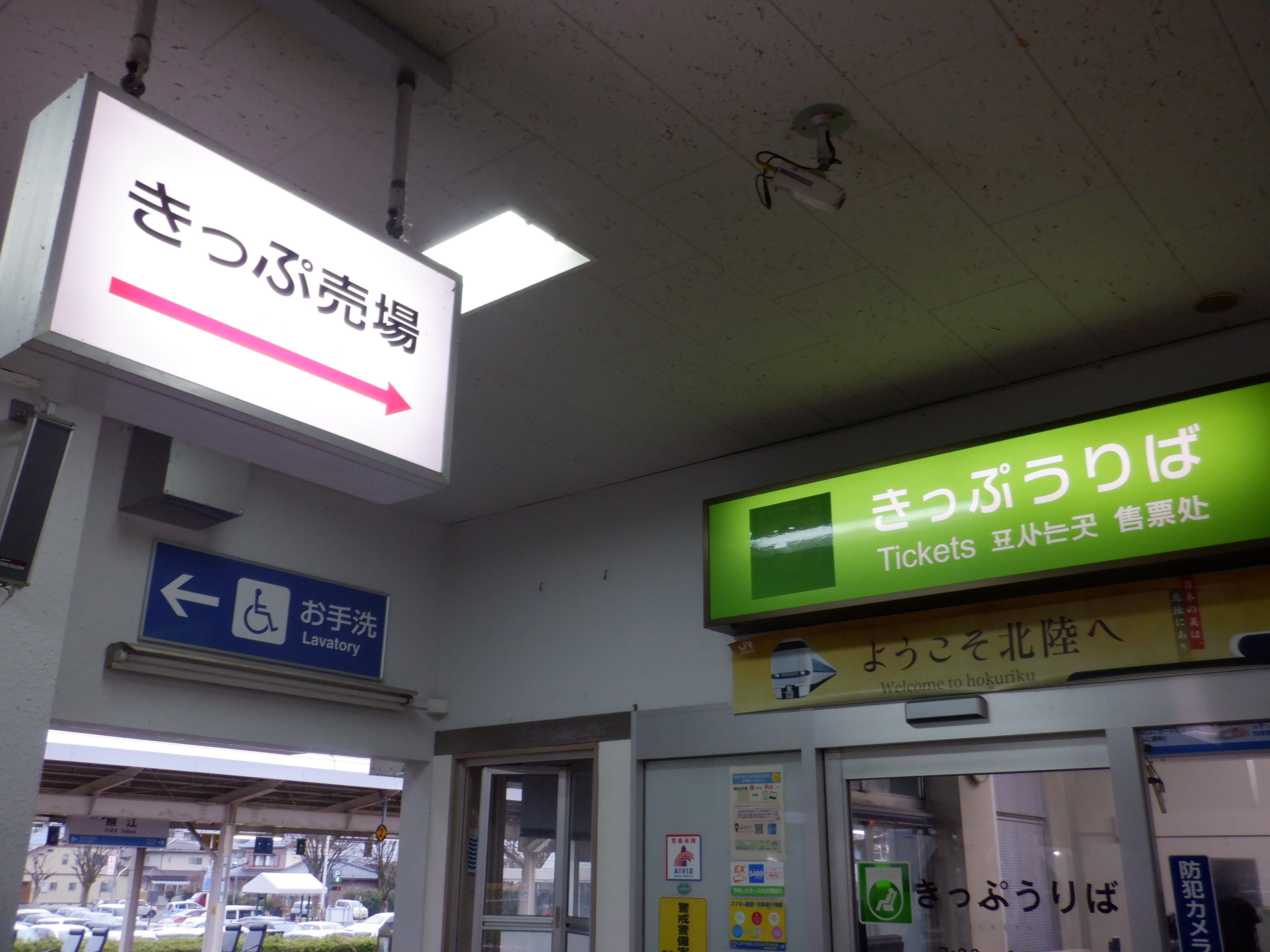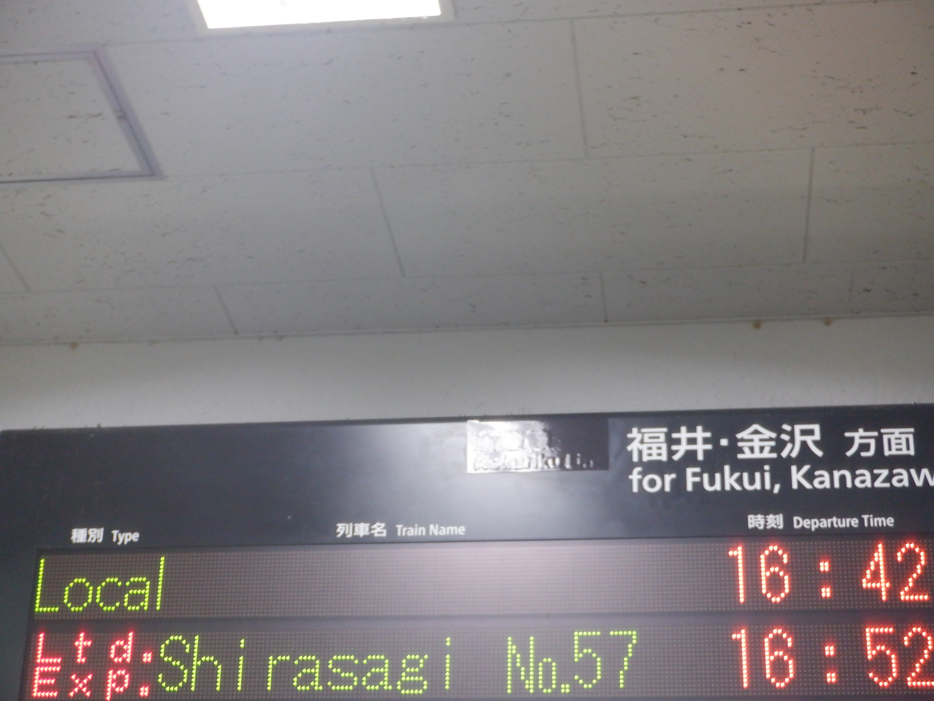 改札口の発車標も「北陸線」の部分が隠されていました。
