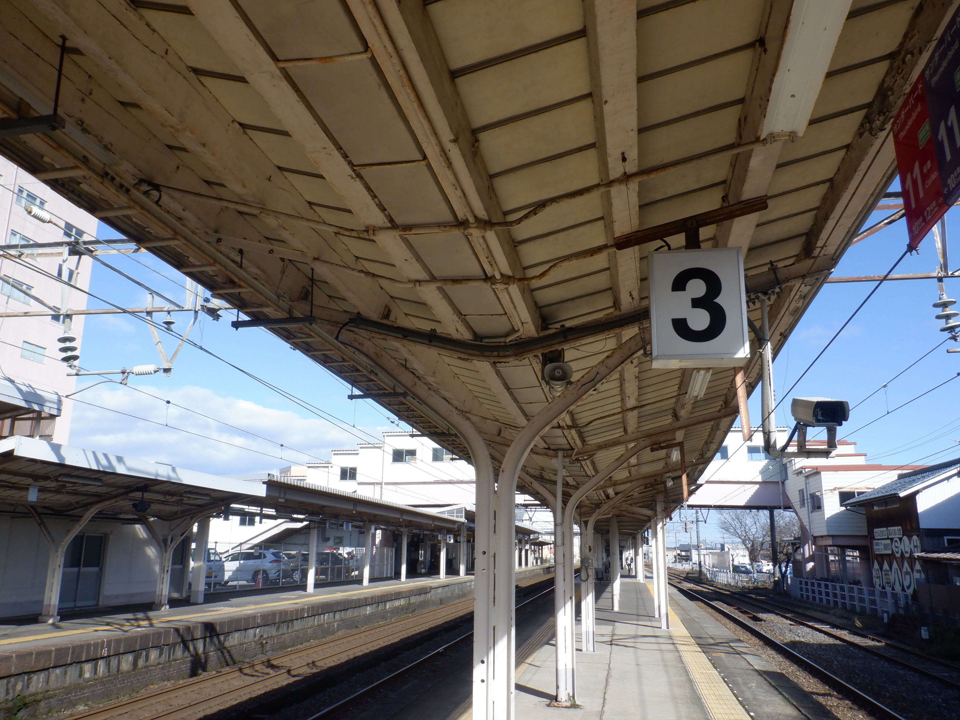 2・3番のりば鯖江駅側の駅名標。こちらはこの時点では変化がなさそうです。
