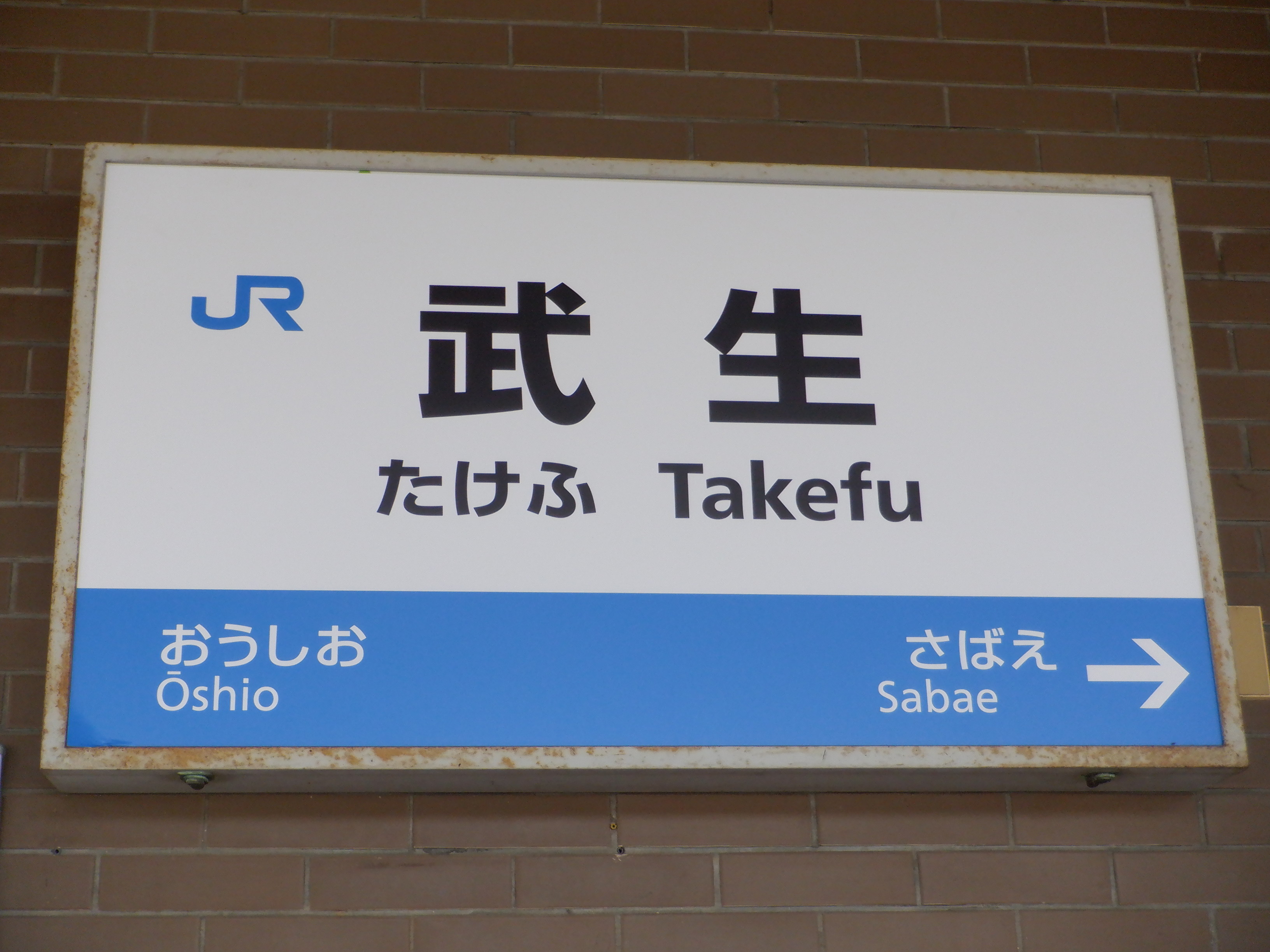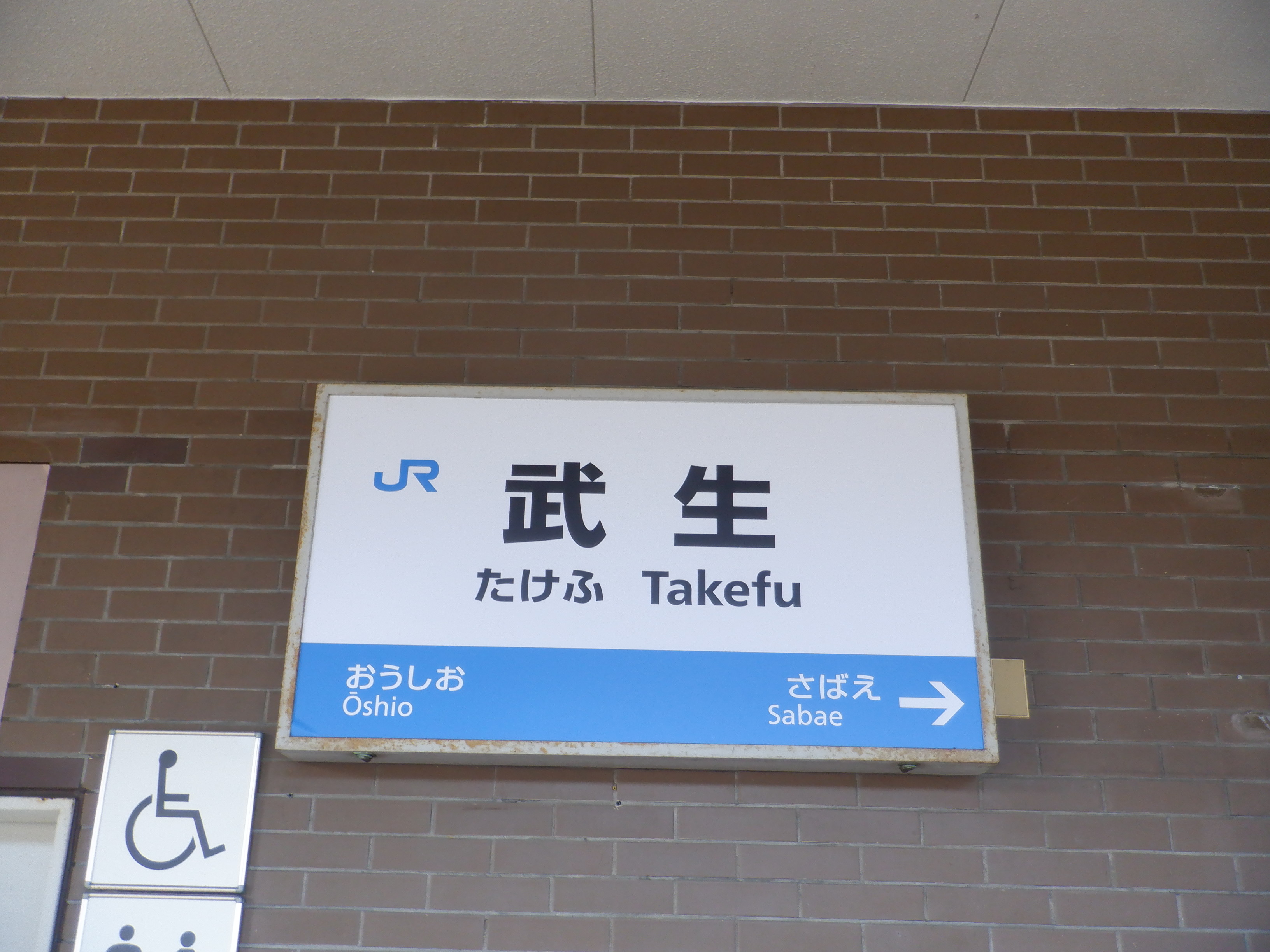 1番のりば駅舎に付いている駅名標。前回と比べて少し剥がれているようです。