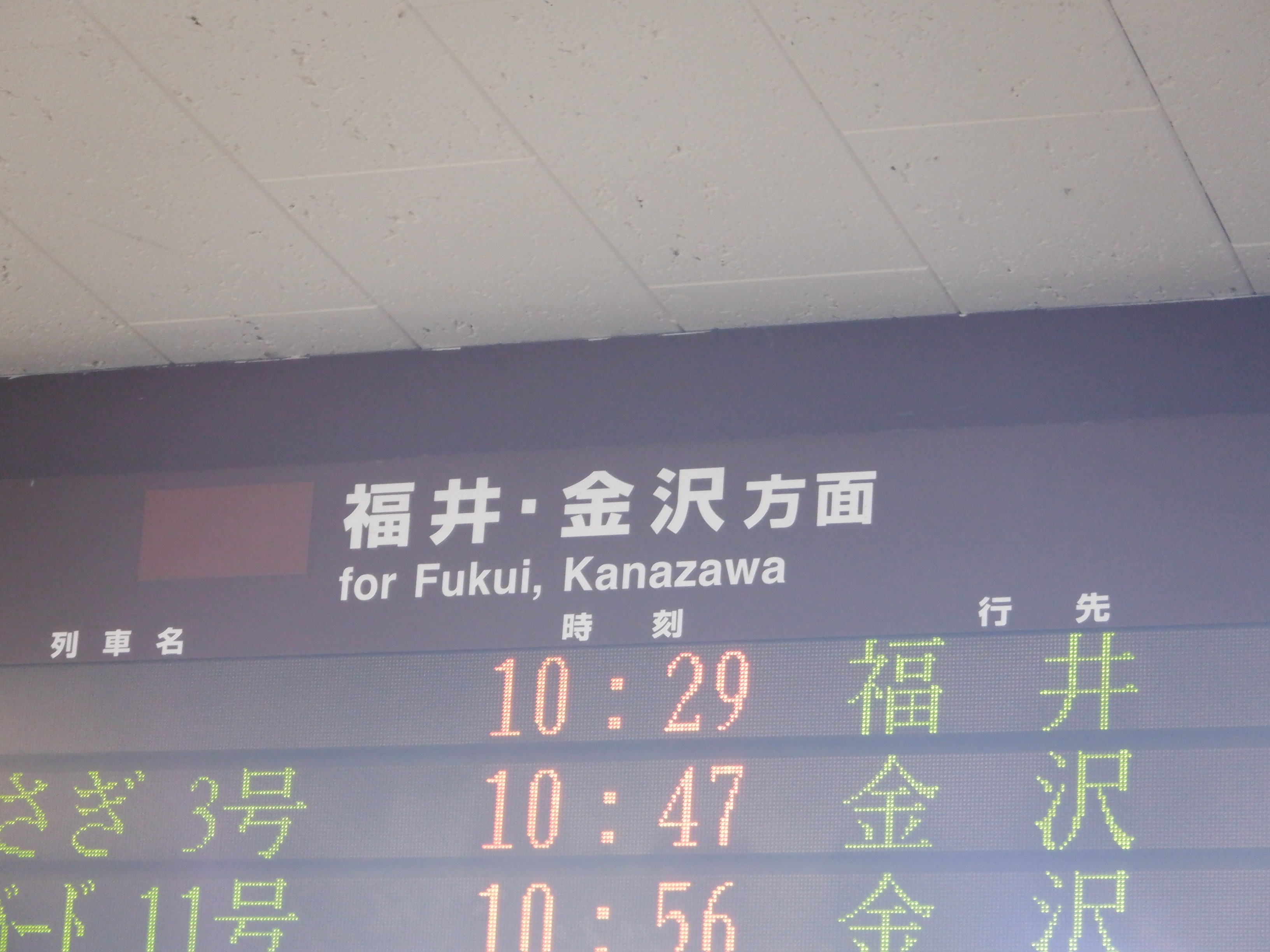 改札口の発車標も「北陸線」の部分が隠されていました。