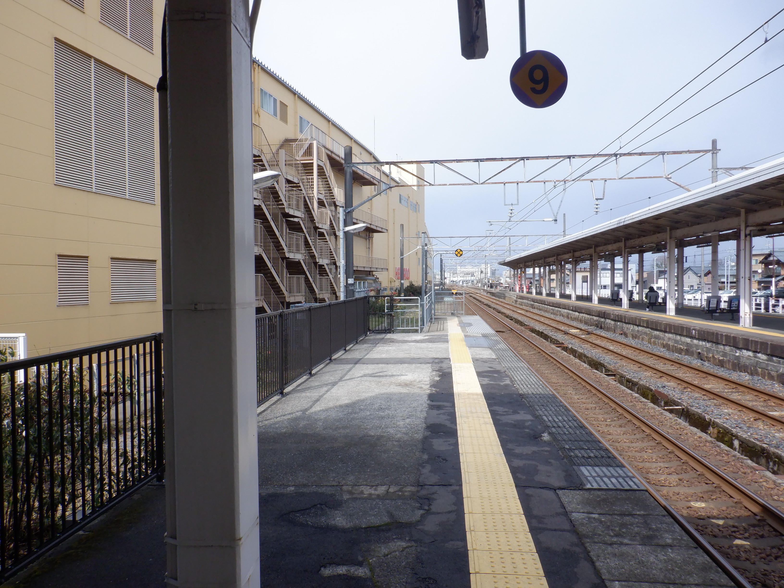 駅舎の様子。撮りにくい場所にあるのですが、第一種駅名標にハピラインのロゴが付けられたようです。