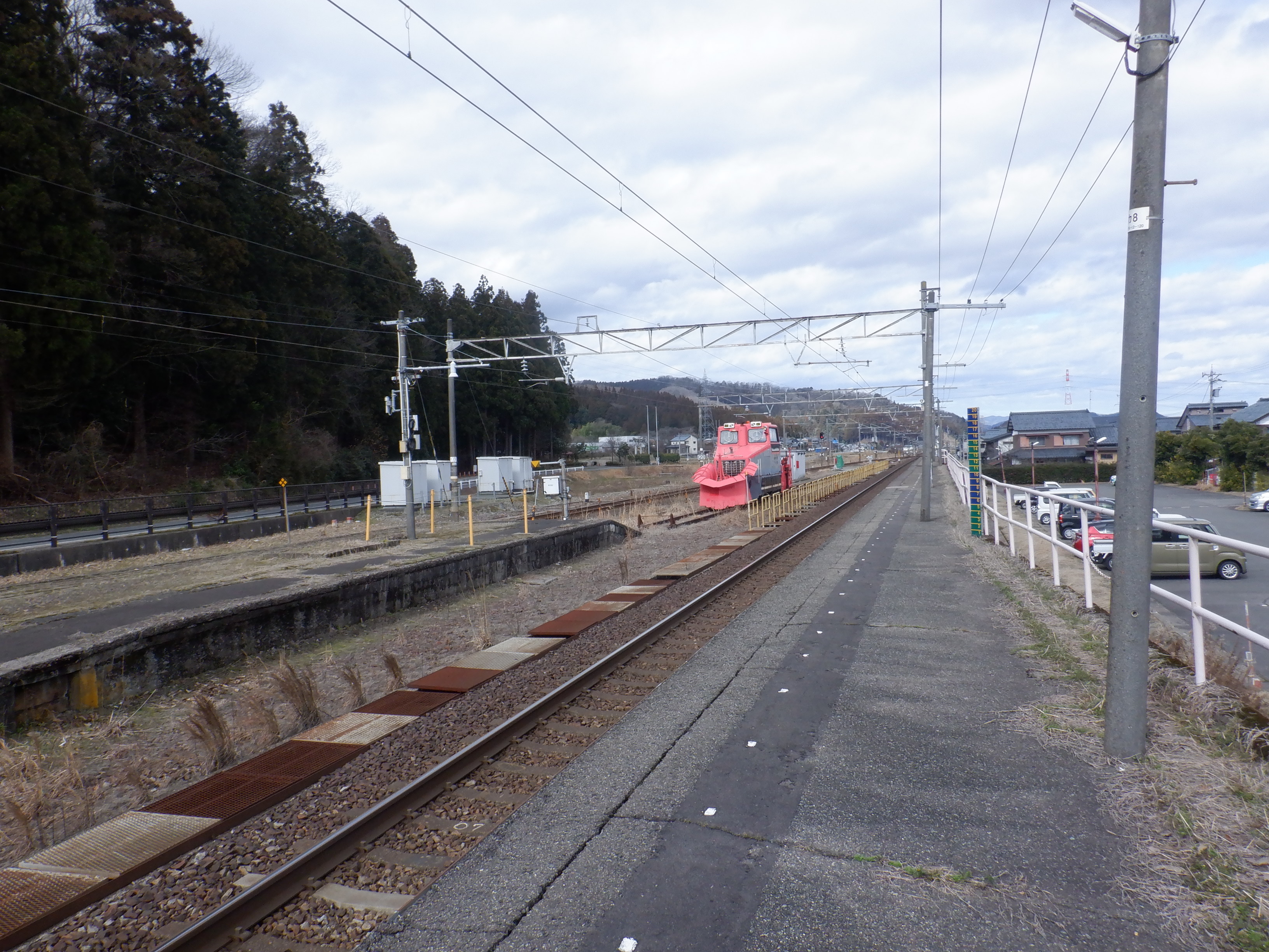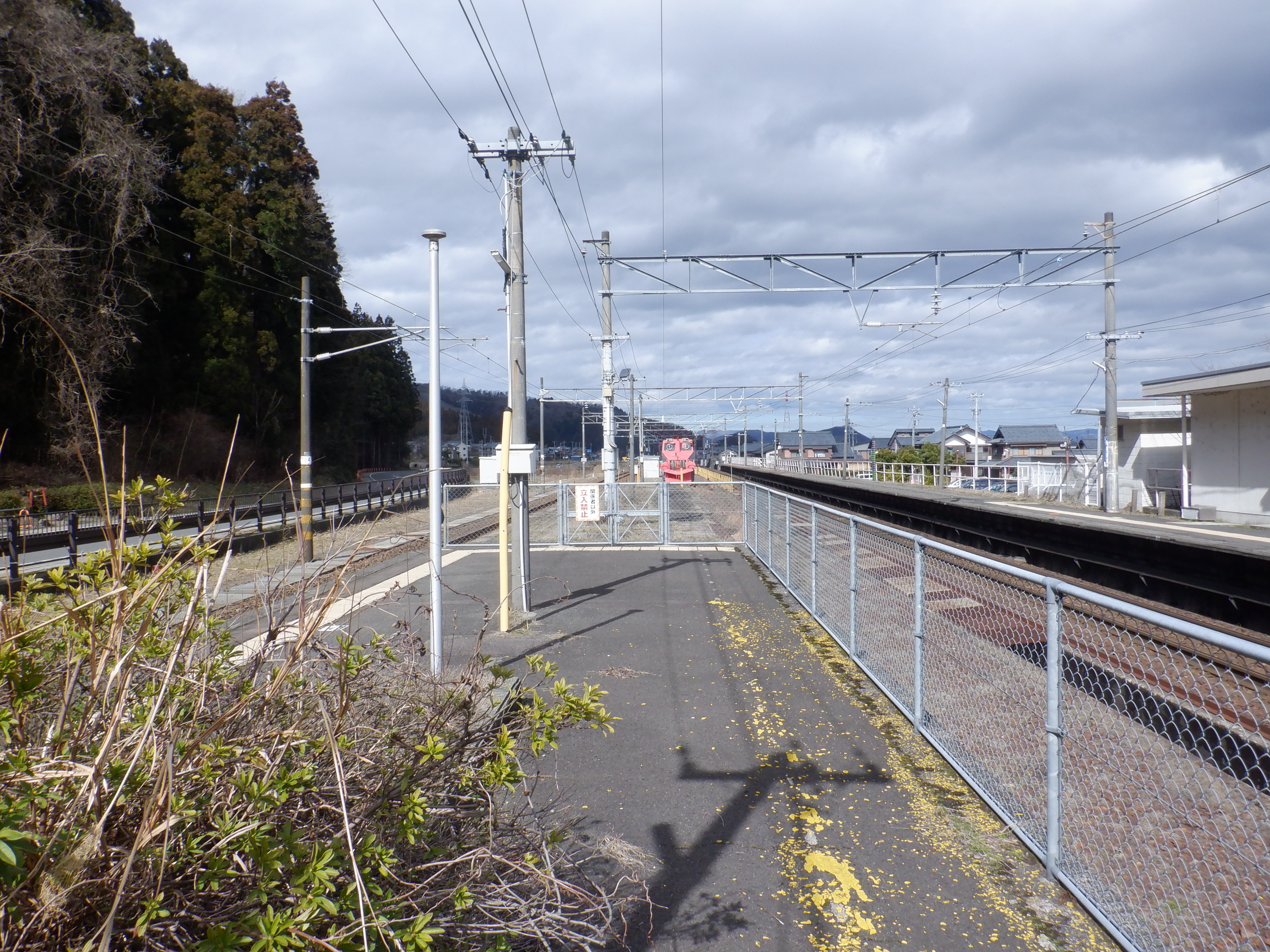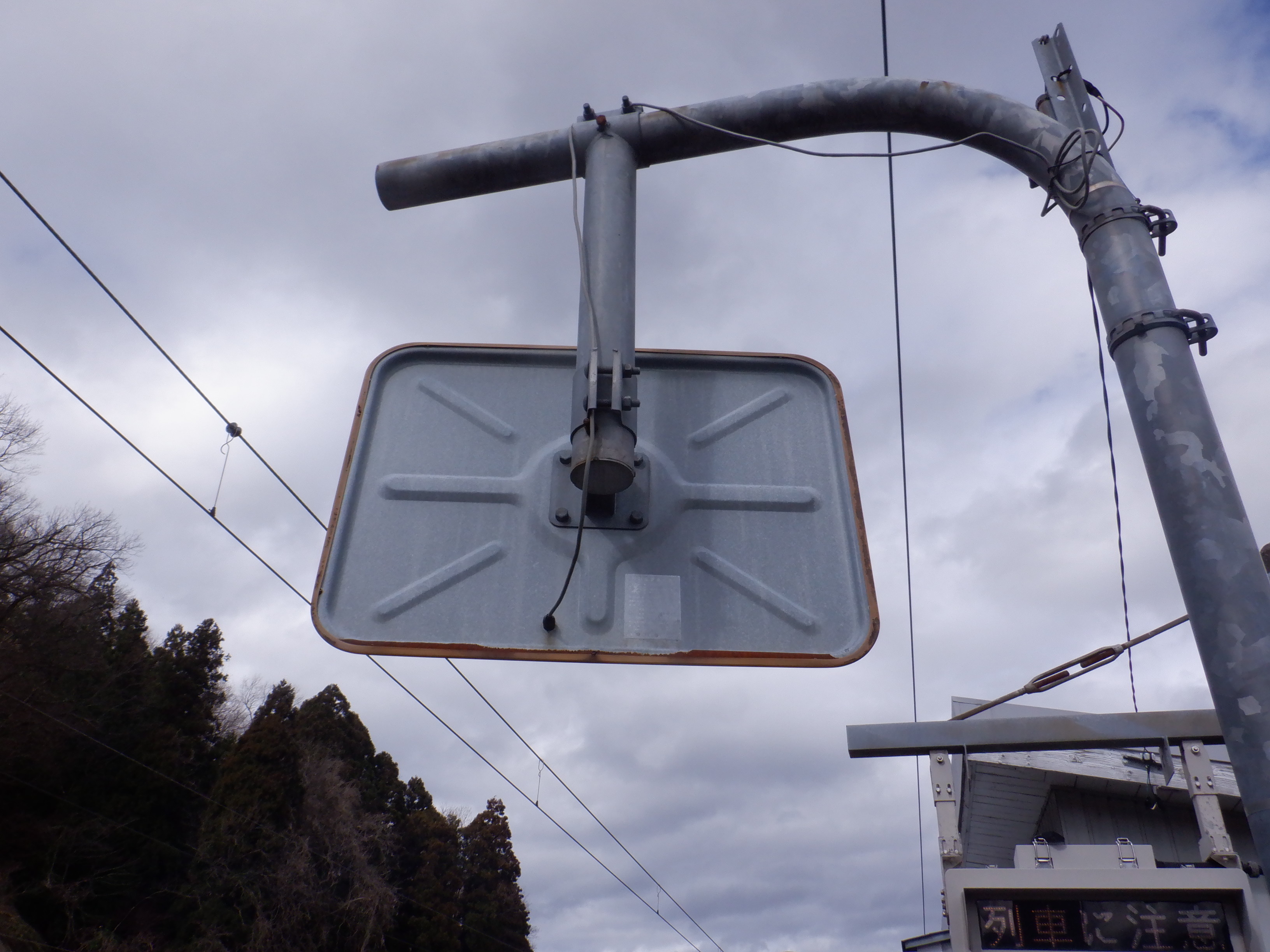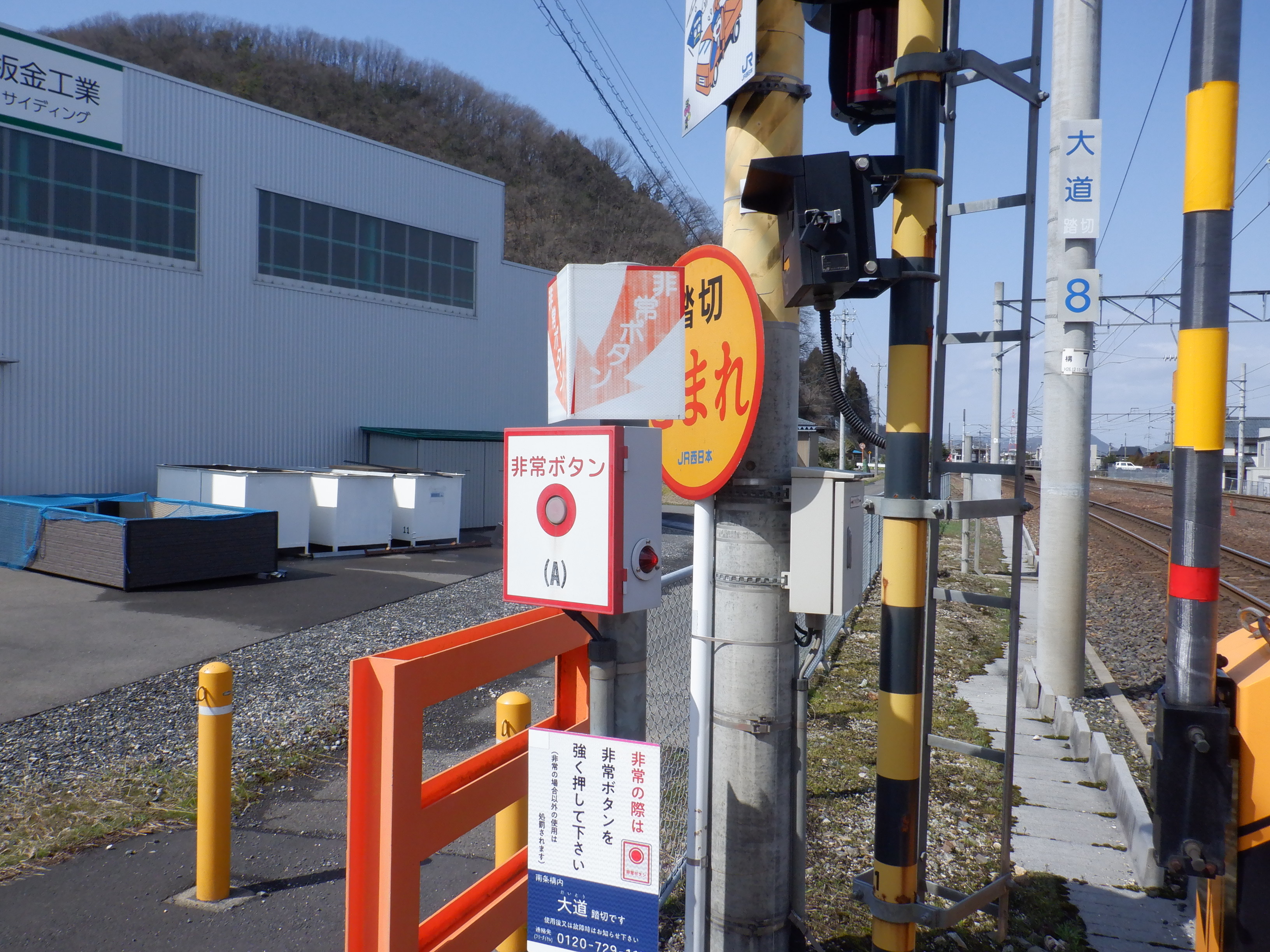 湯尾駅側の踏切。こちらはハピラインふくいのものになっています。