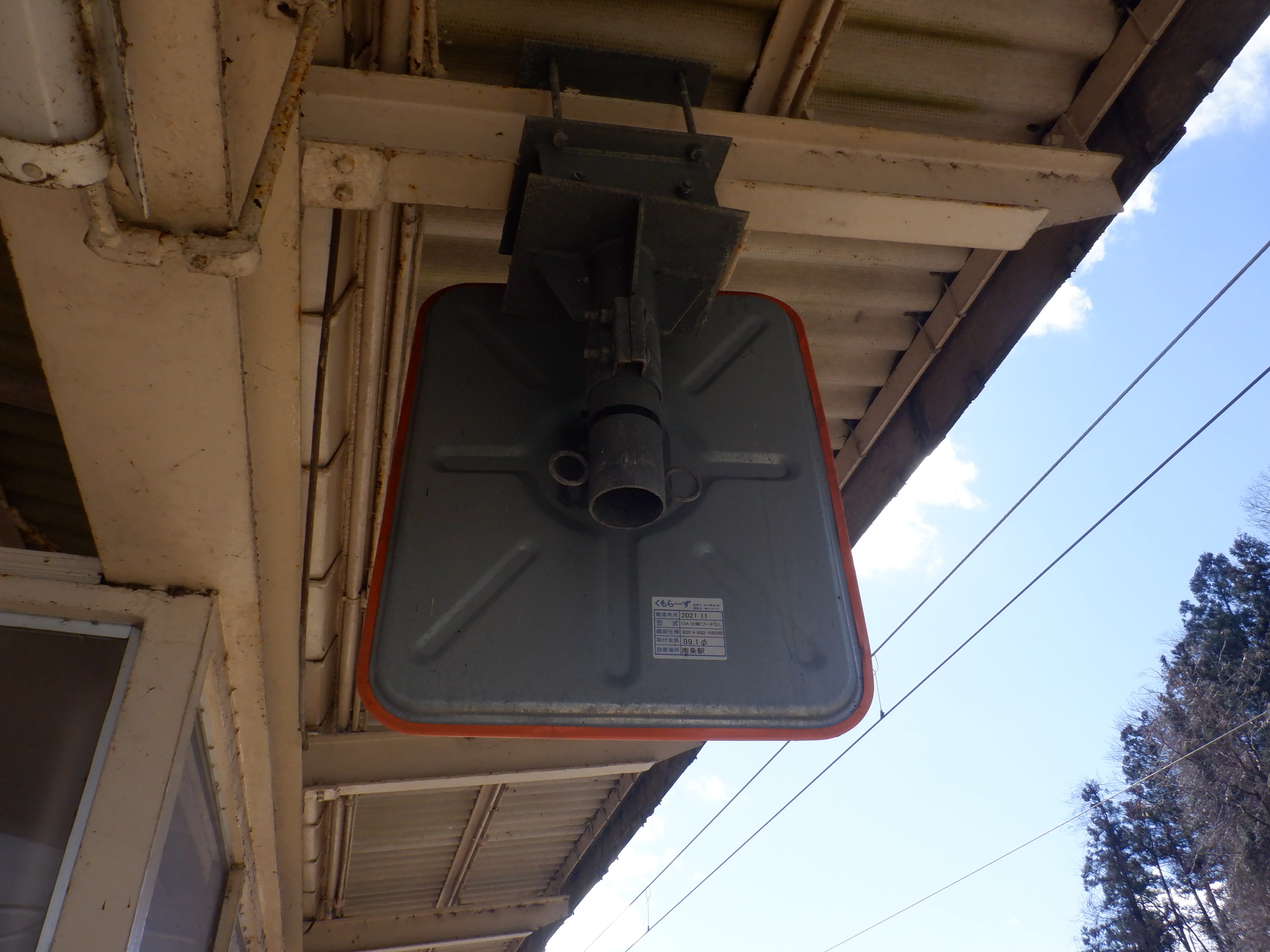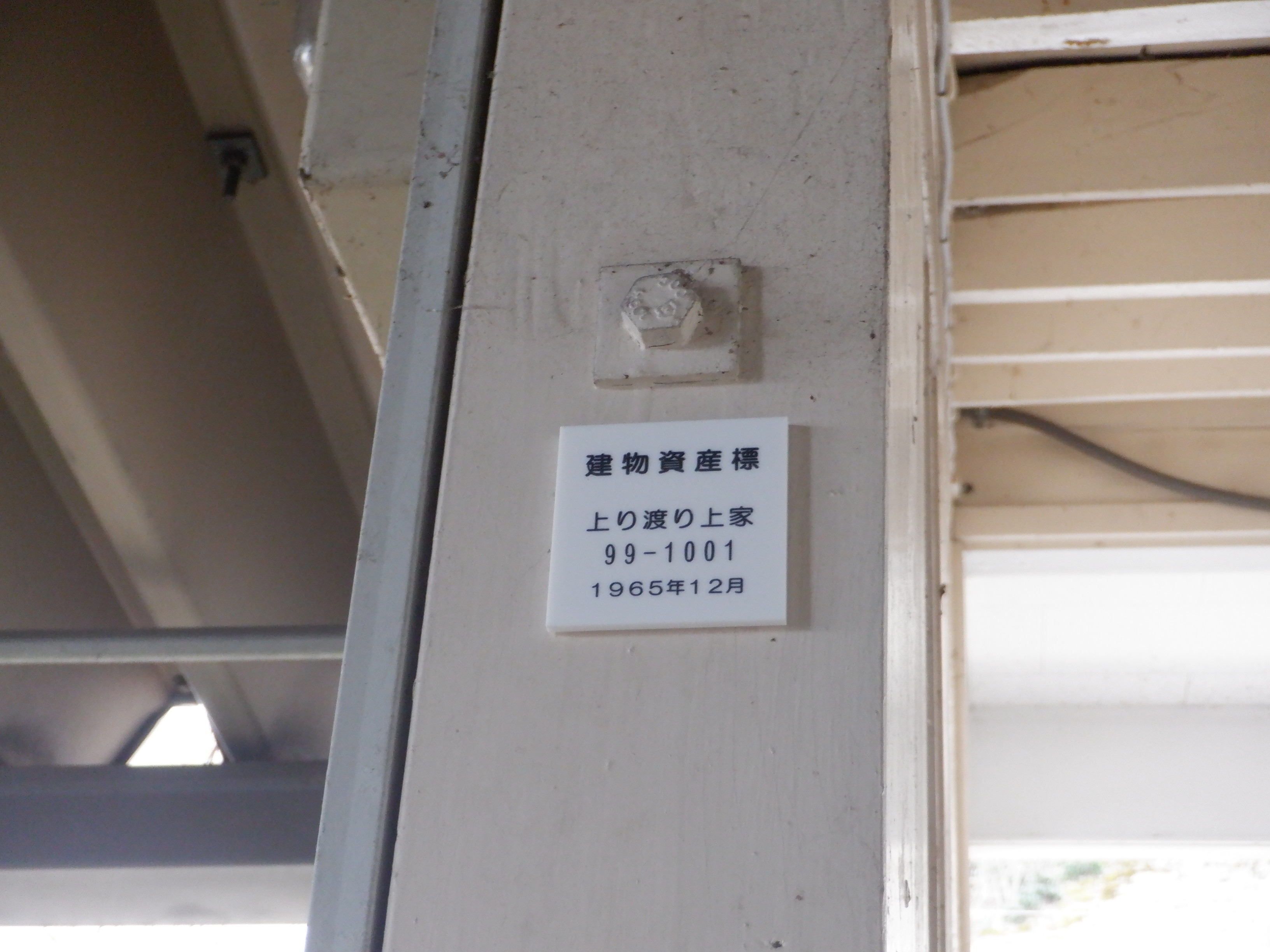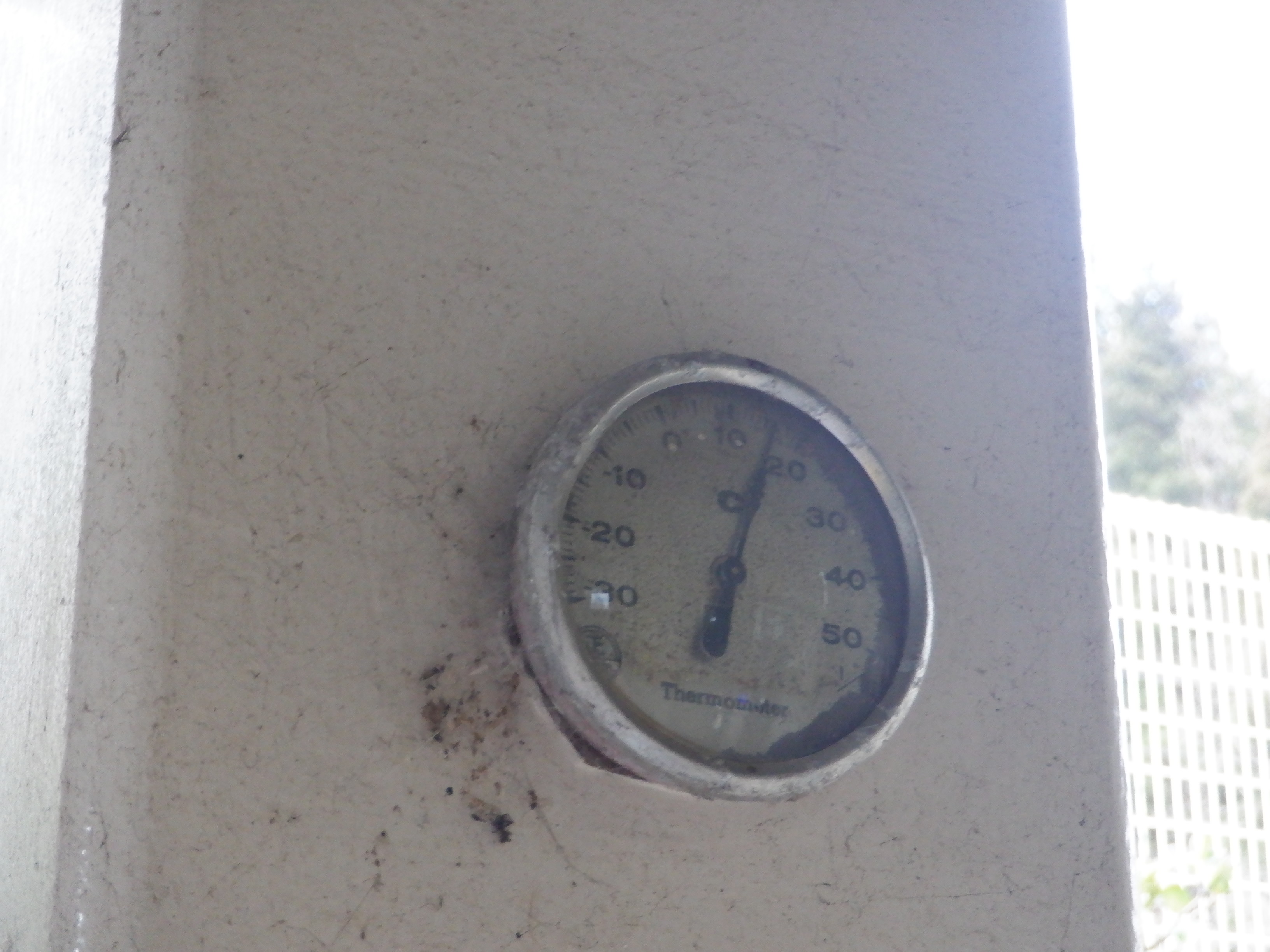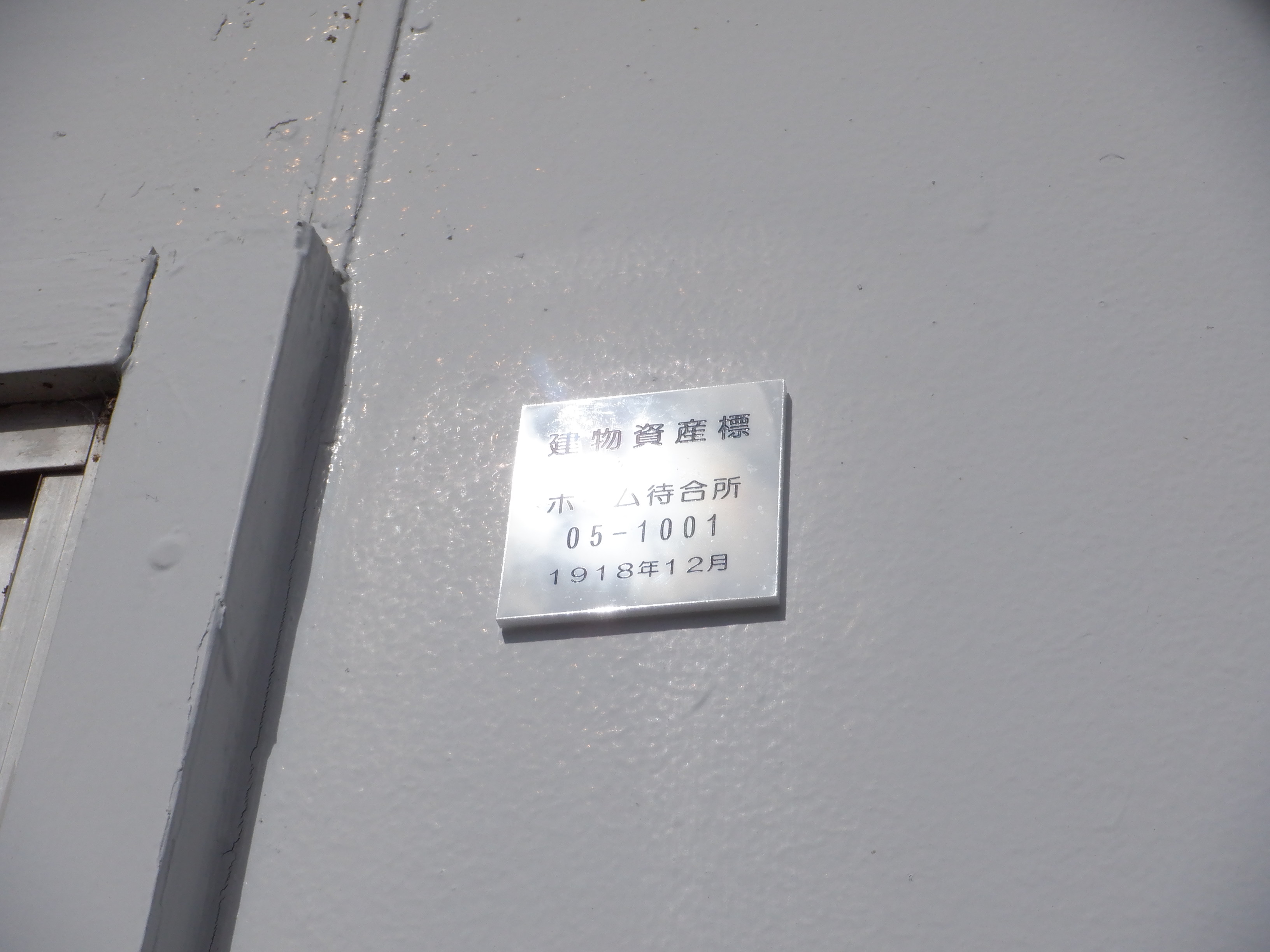 再び駅に入り、階段の横、通路上屋の資産標とそこにある温度計。