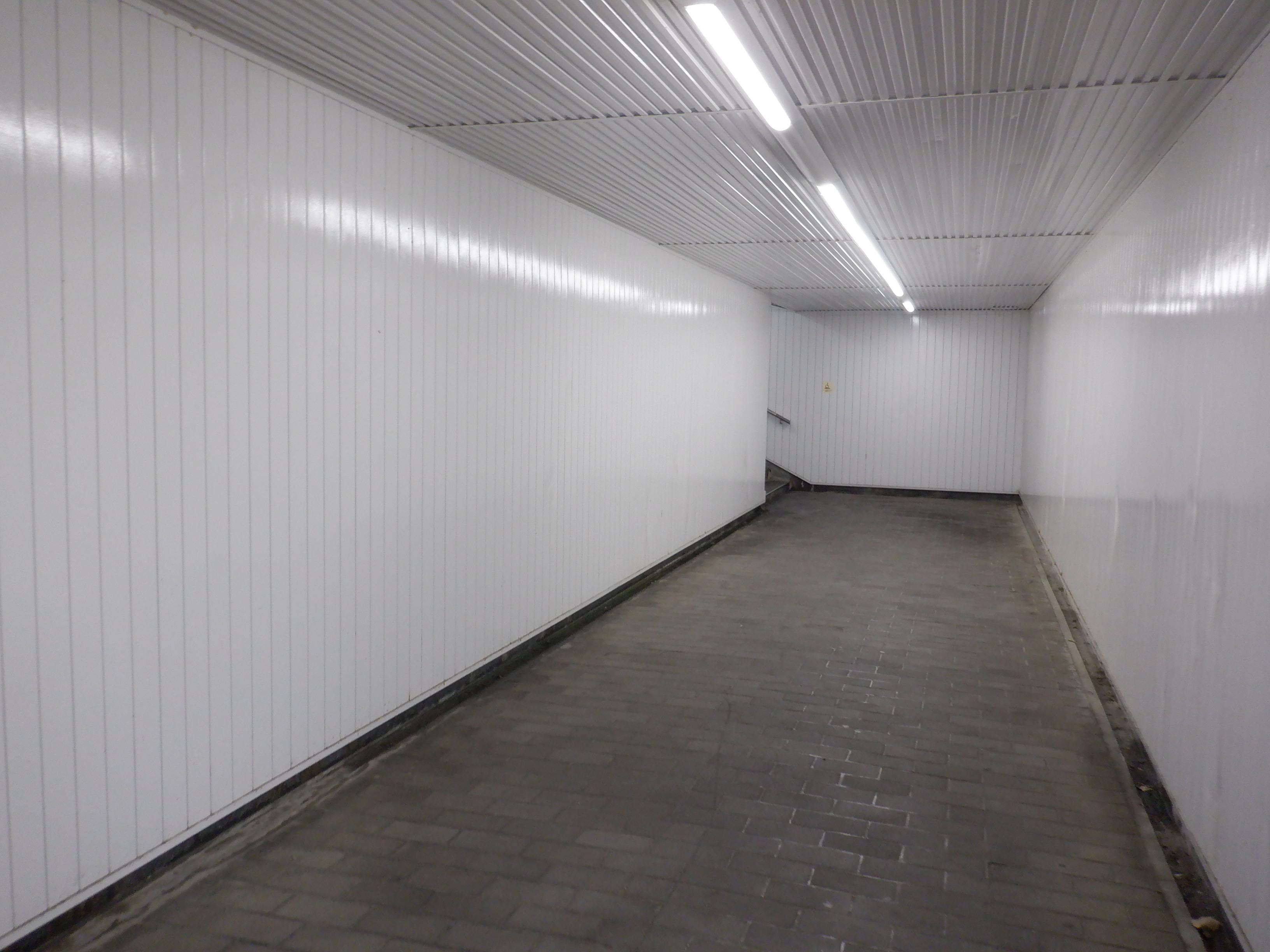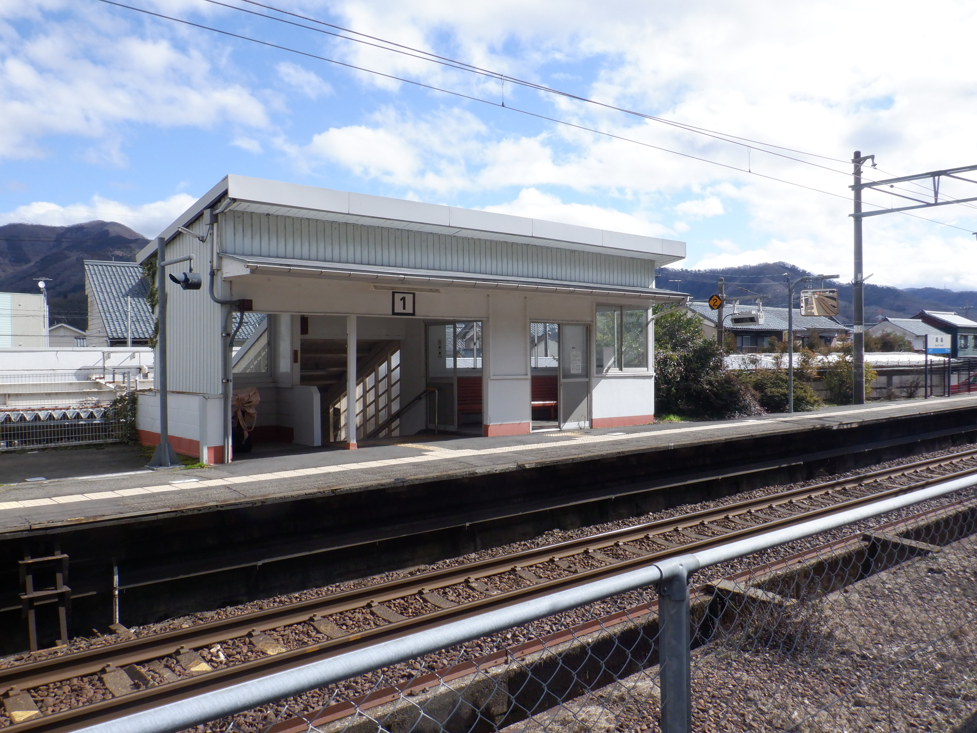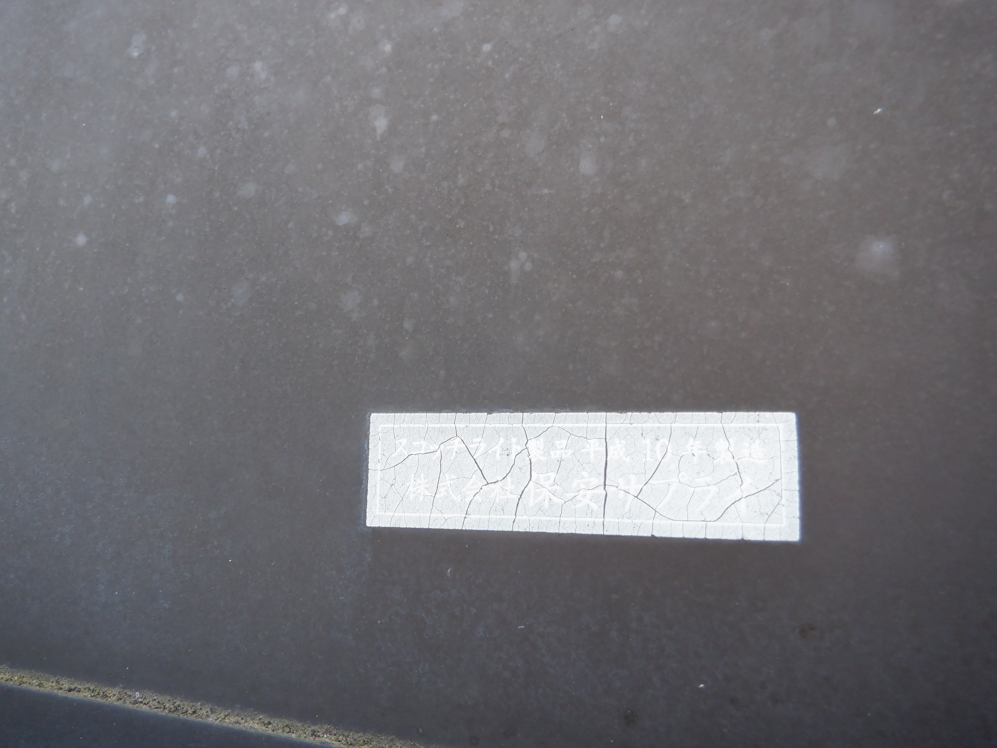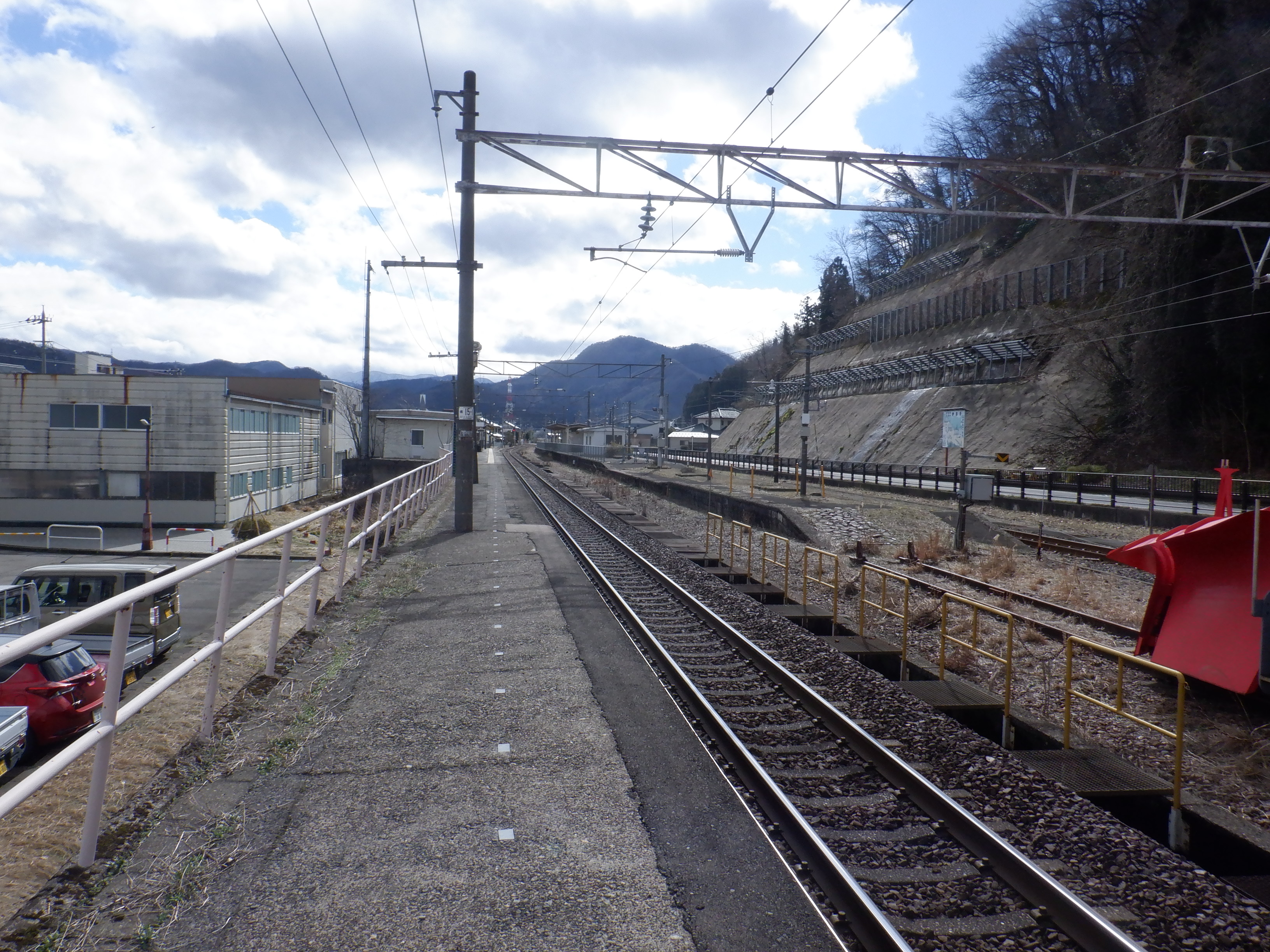 再び駅に入り、階段の横、通路上屋の資産標とそこにある温度計。
