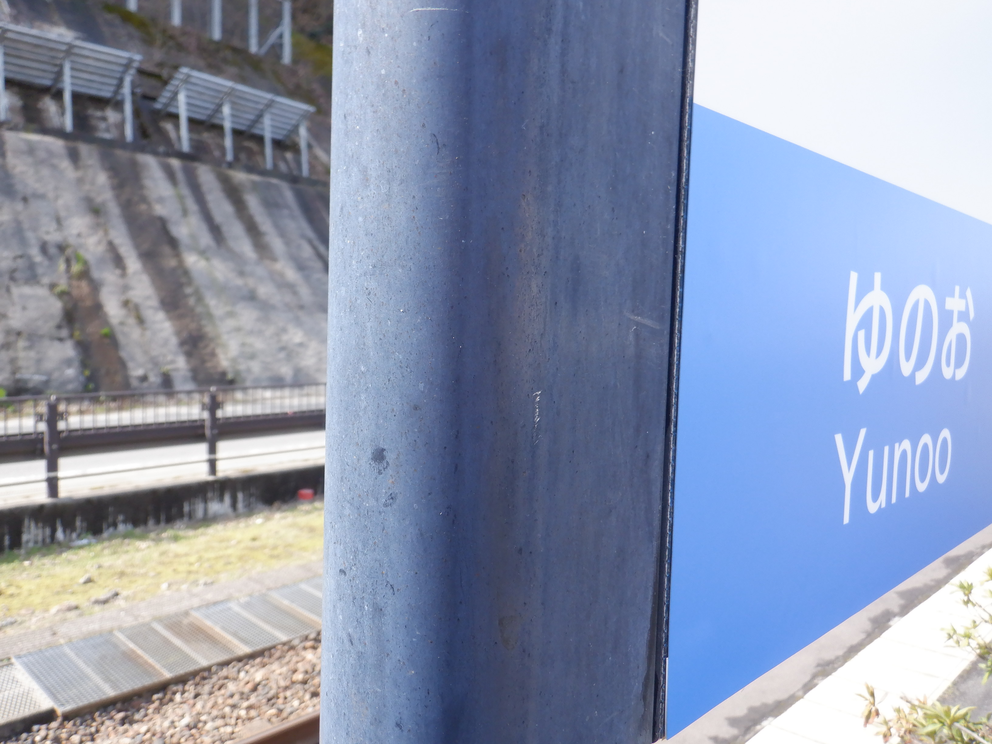 ハピラインふくいの駅名標の上に仮のJR駅名標が貼られた状態となりました。