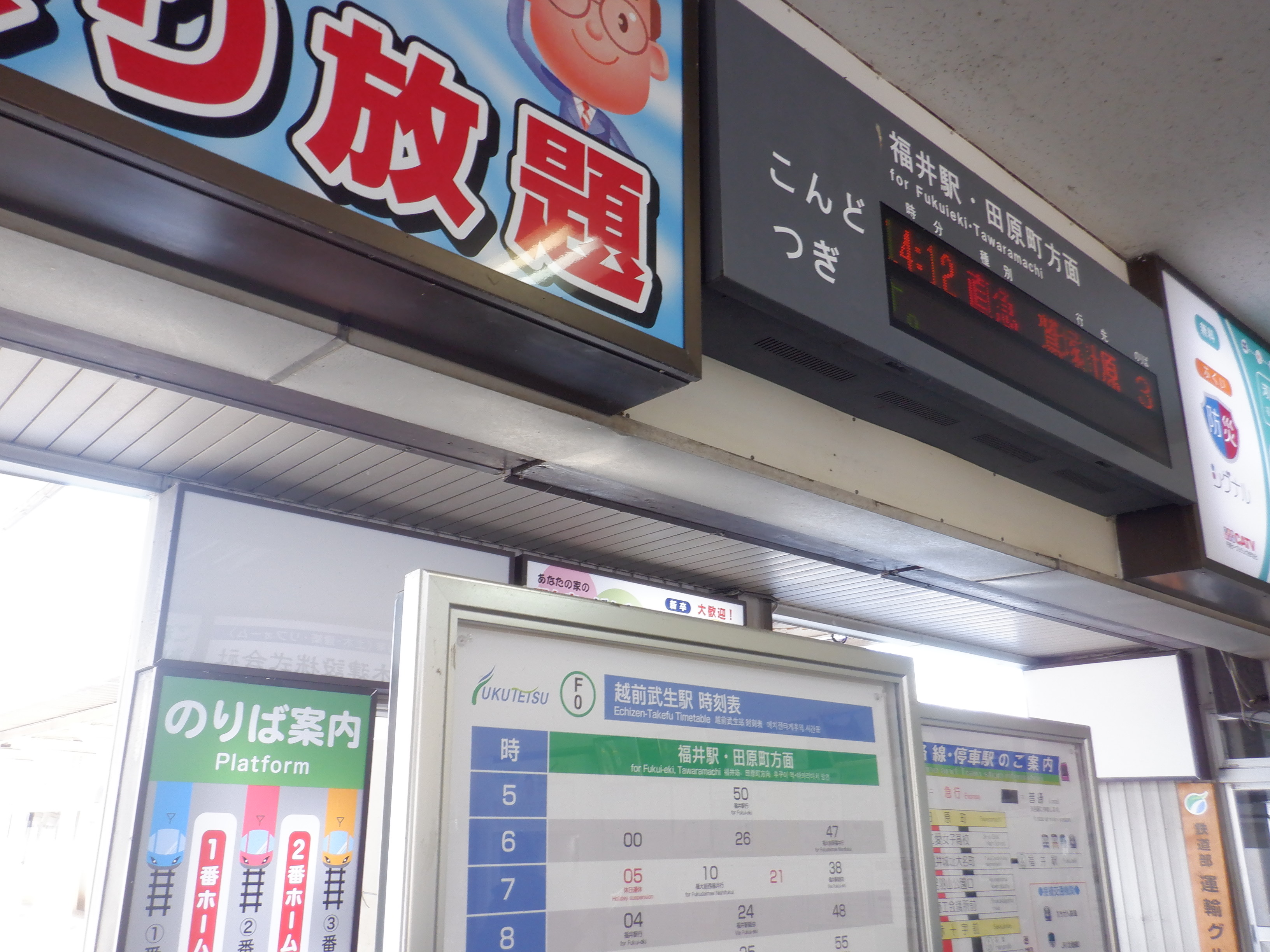 改称を2日前に控えていますが、駅名標は既に「たけふ新」に変わっていました。他は特に変わっていませんでした。