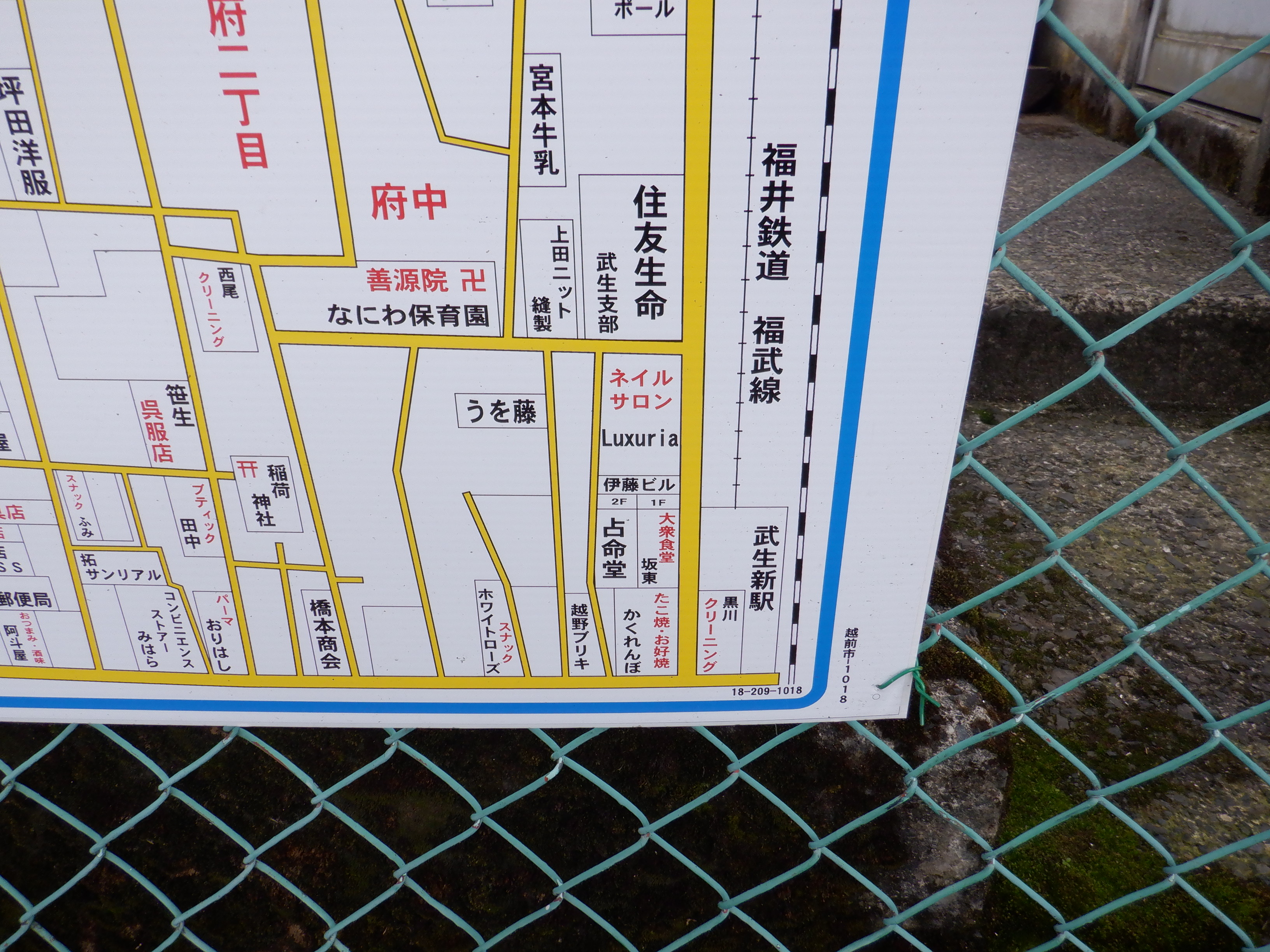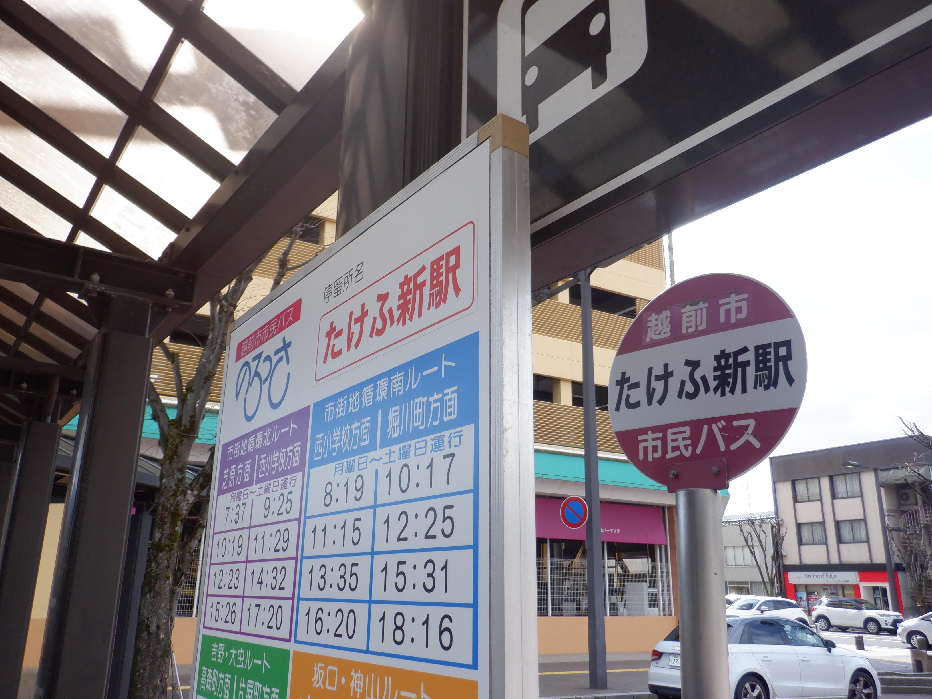 時刻表・その下の路線図とも「たけふ新」になっていました。