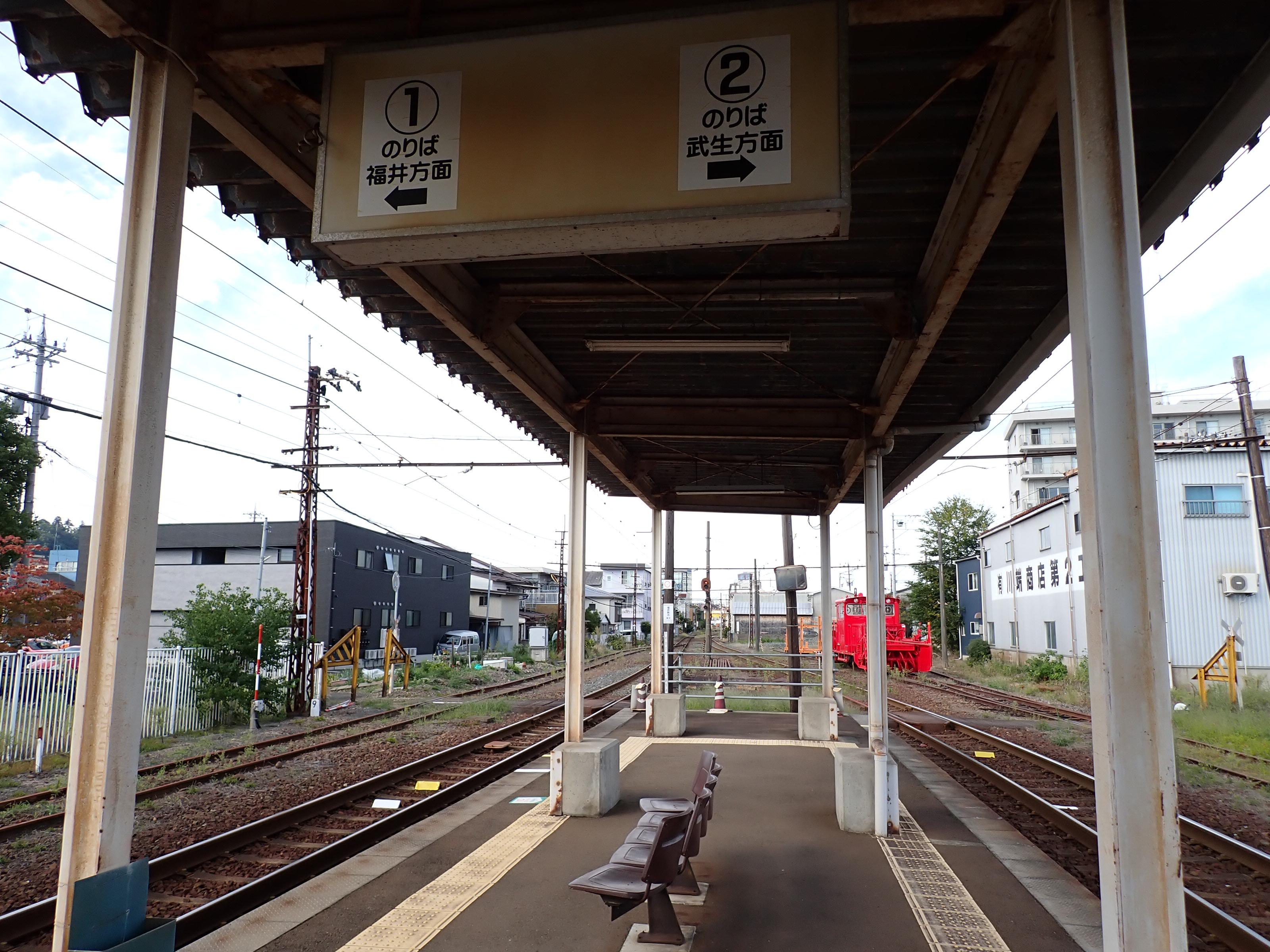 ホームの方面表示。ここの駅名がどうなっているかと思ったのですが「武生方面」なので、特に改称後も問題なさそうです。
