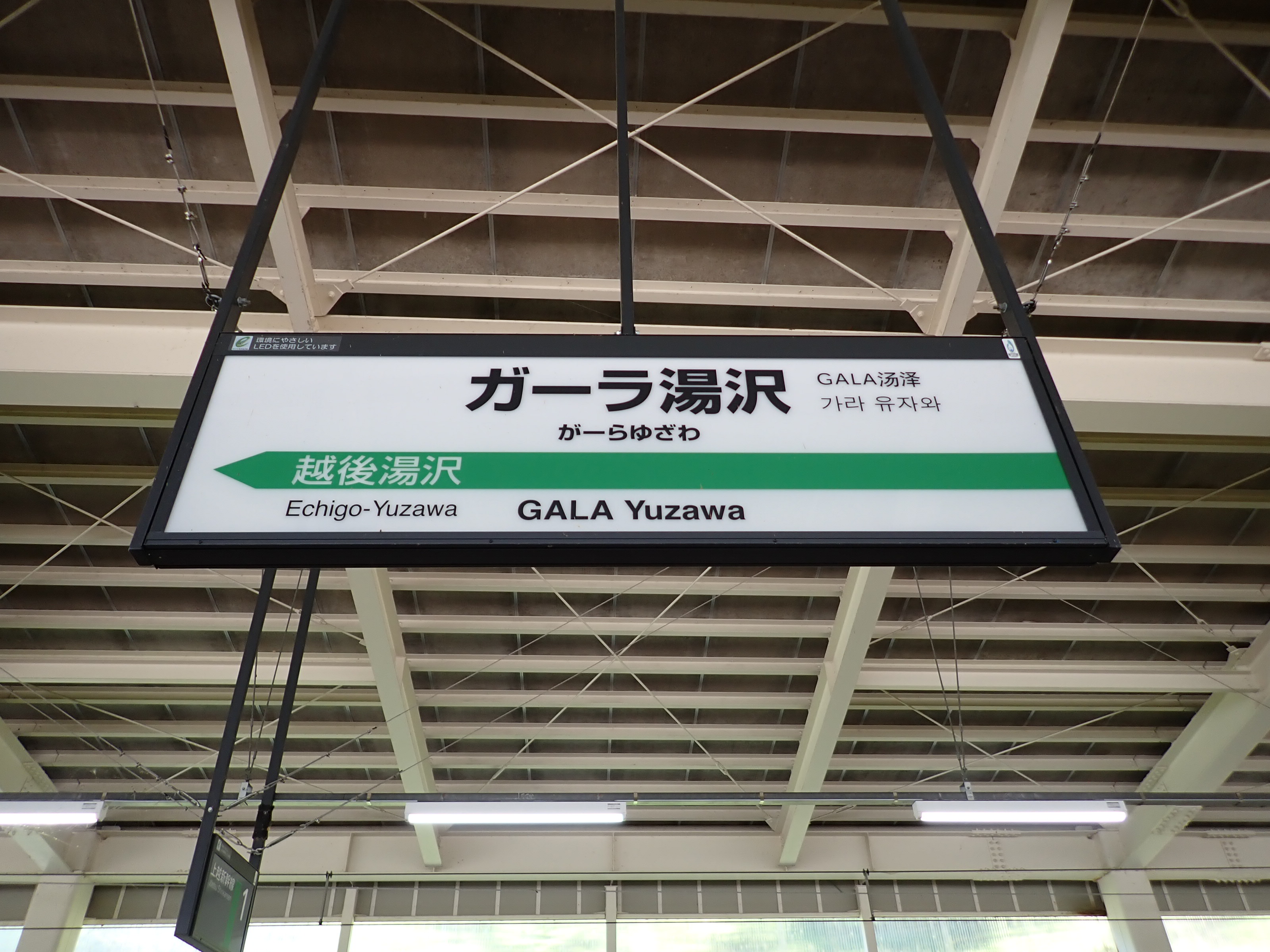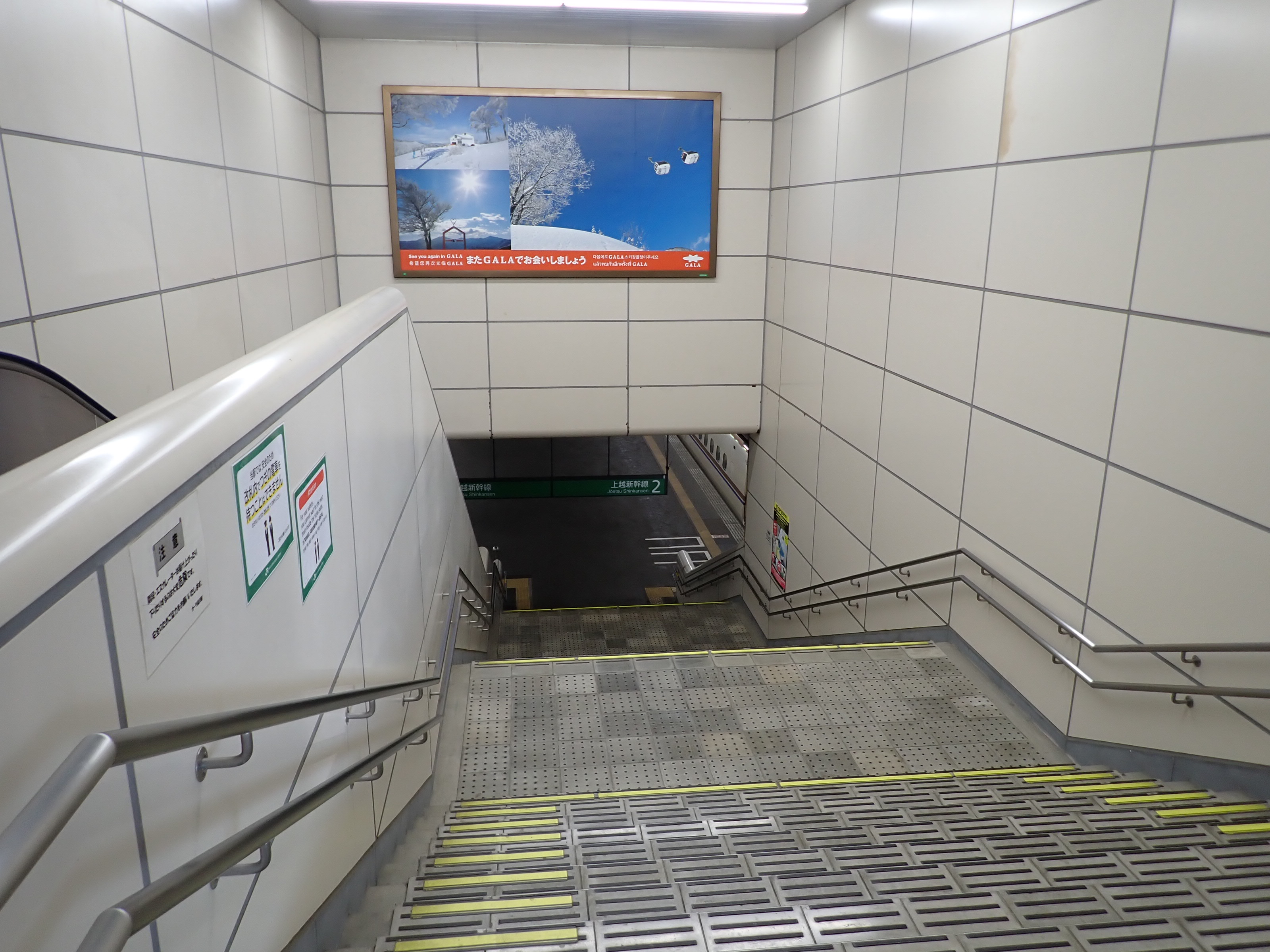 ホームの越後湯沢駅の階段近く。