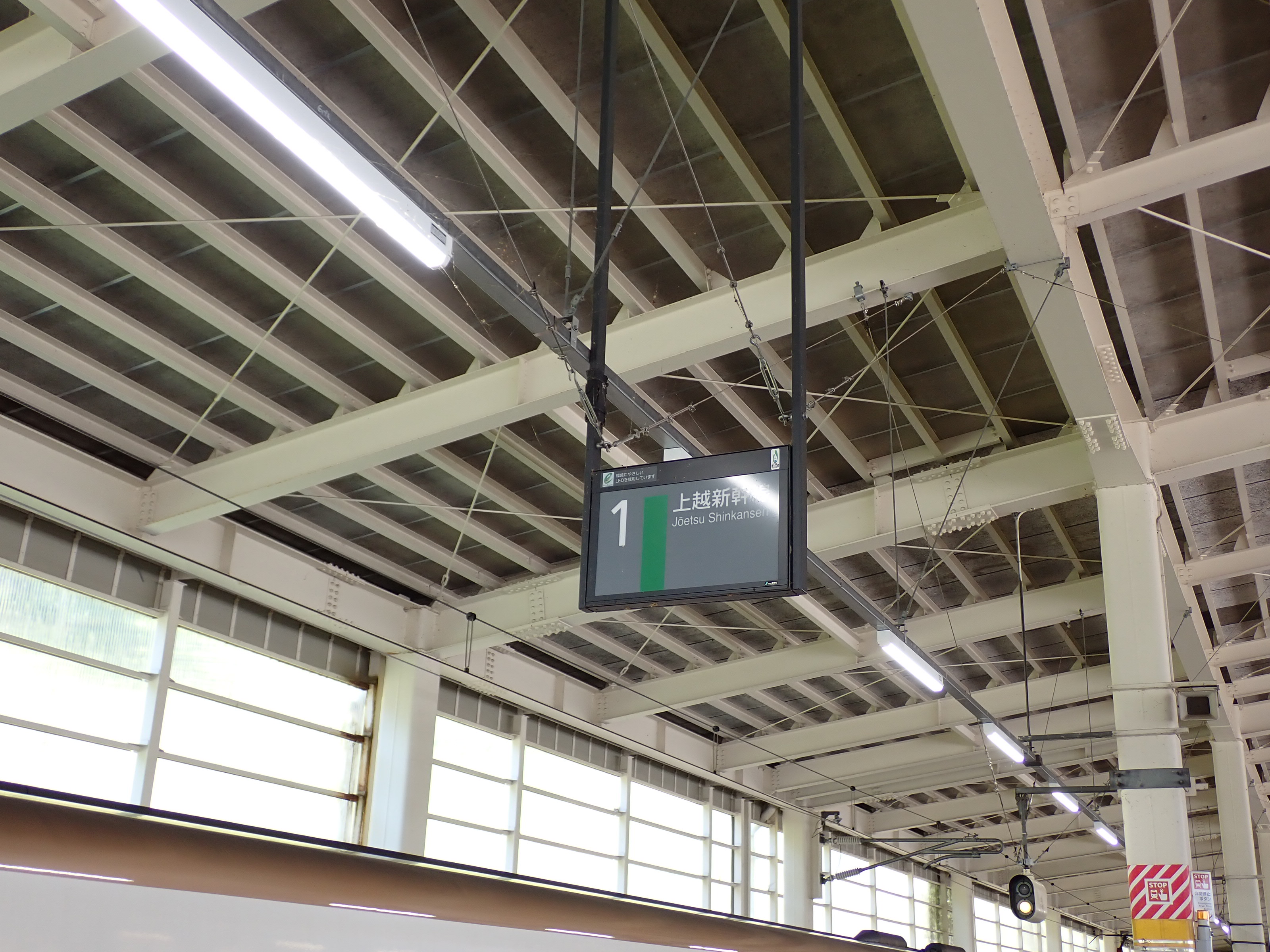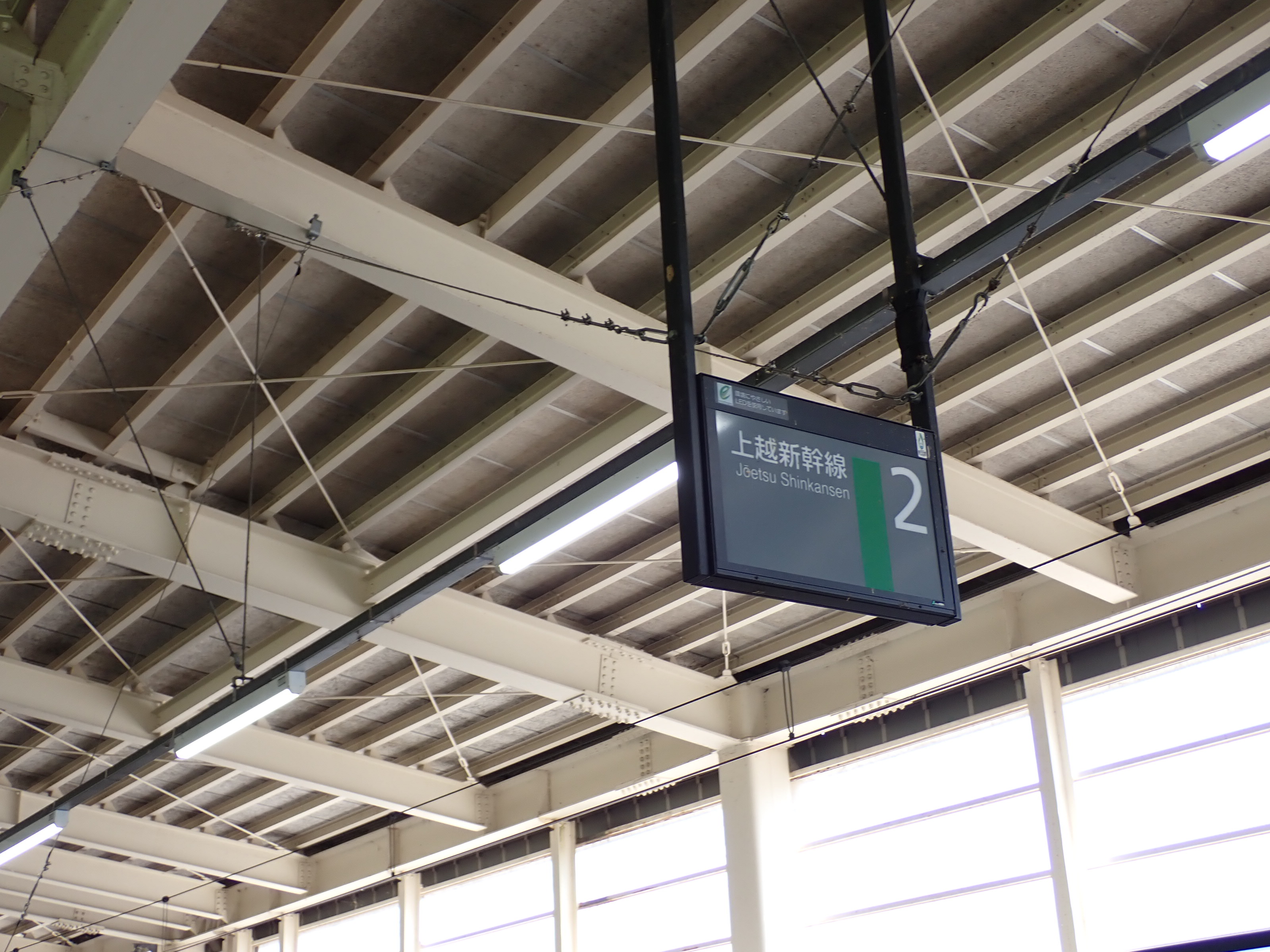 1番線側のホームから見える様子。上越新幹線がスノーシェルターが見えます。