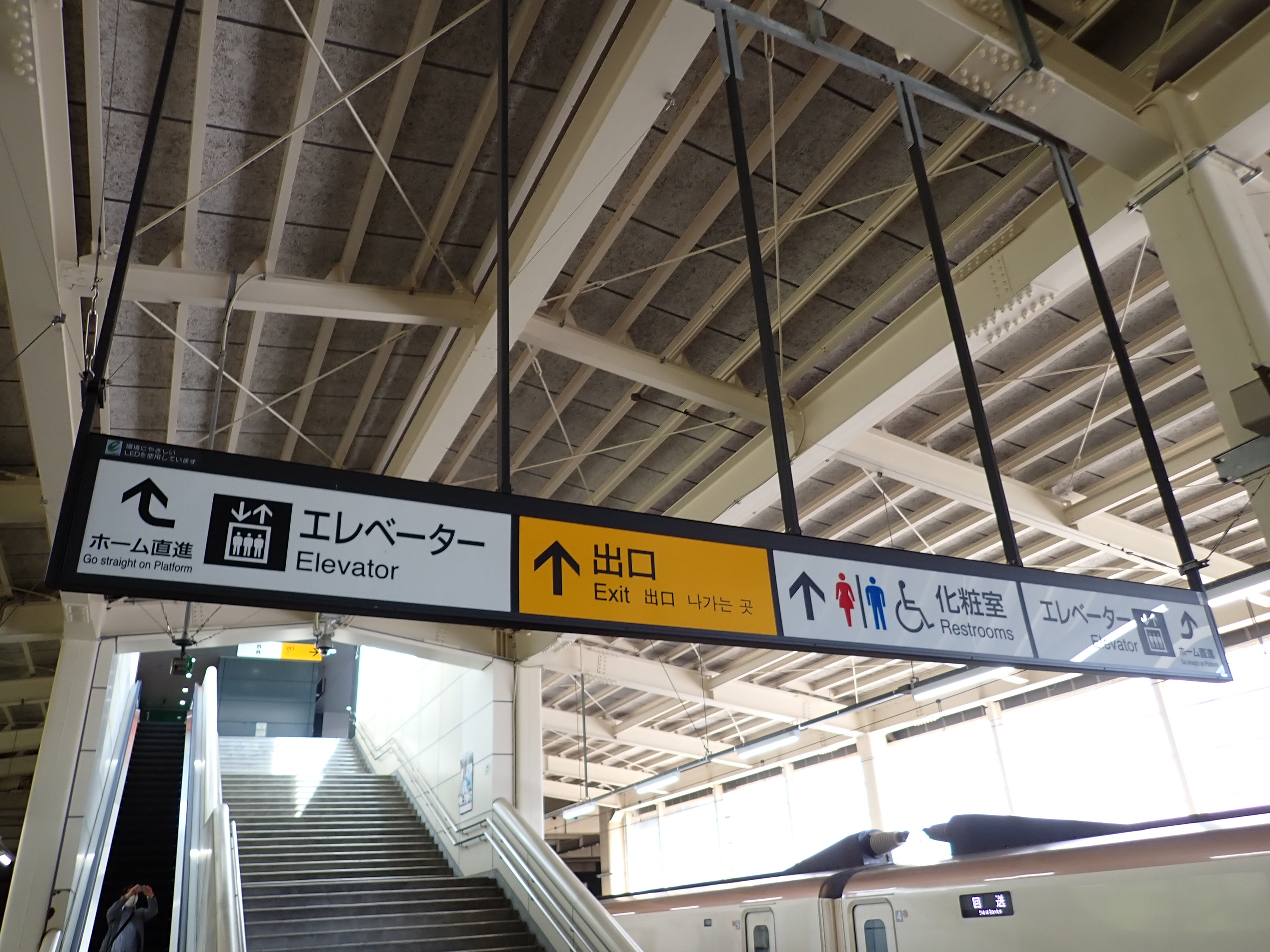 出口標と改札口。