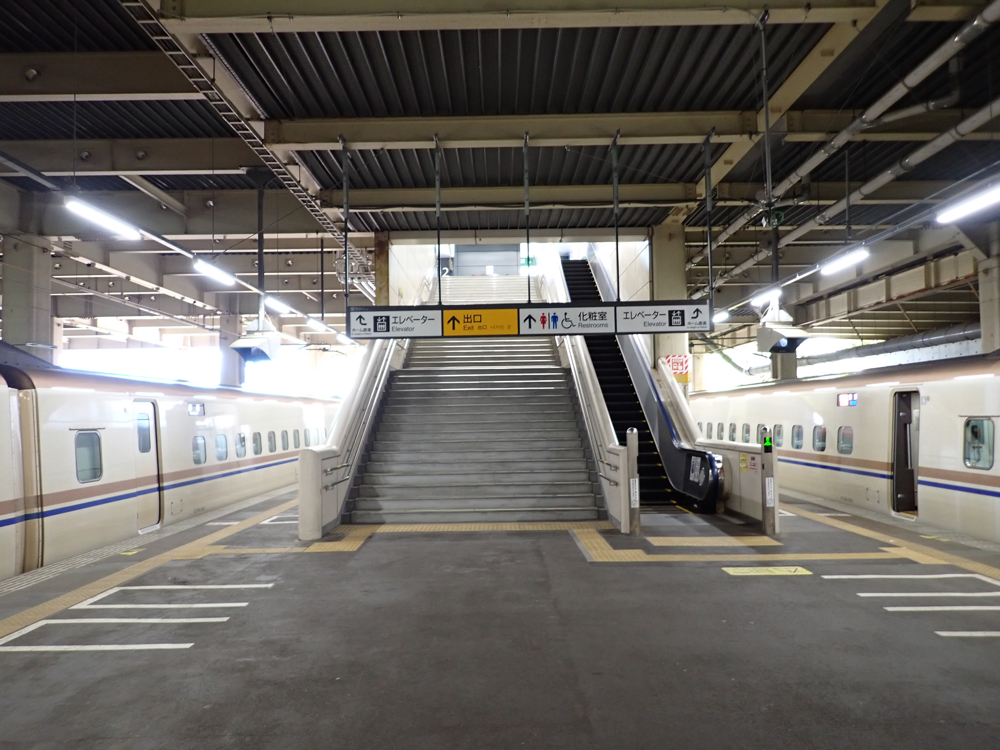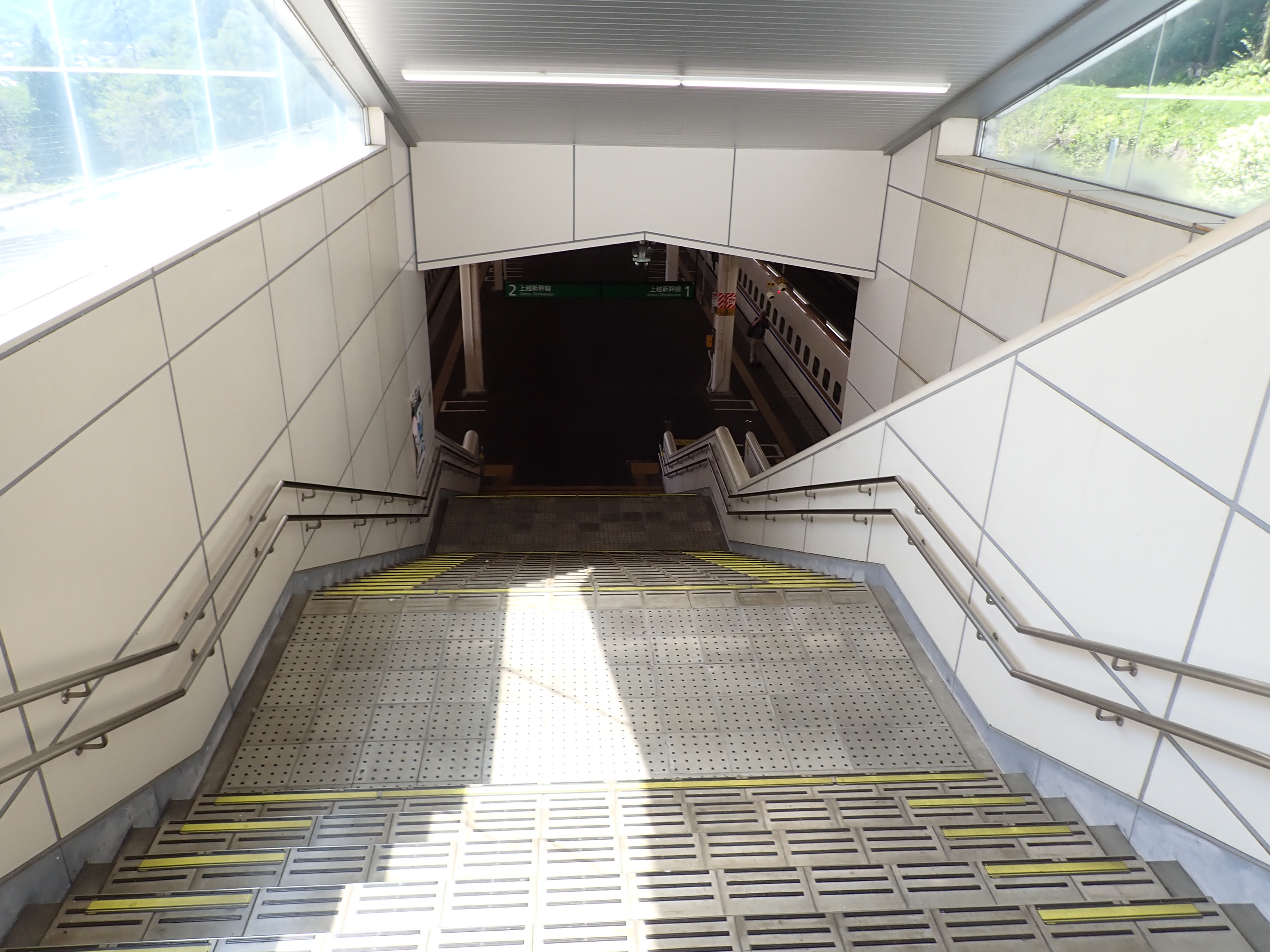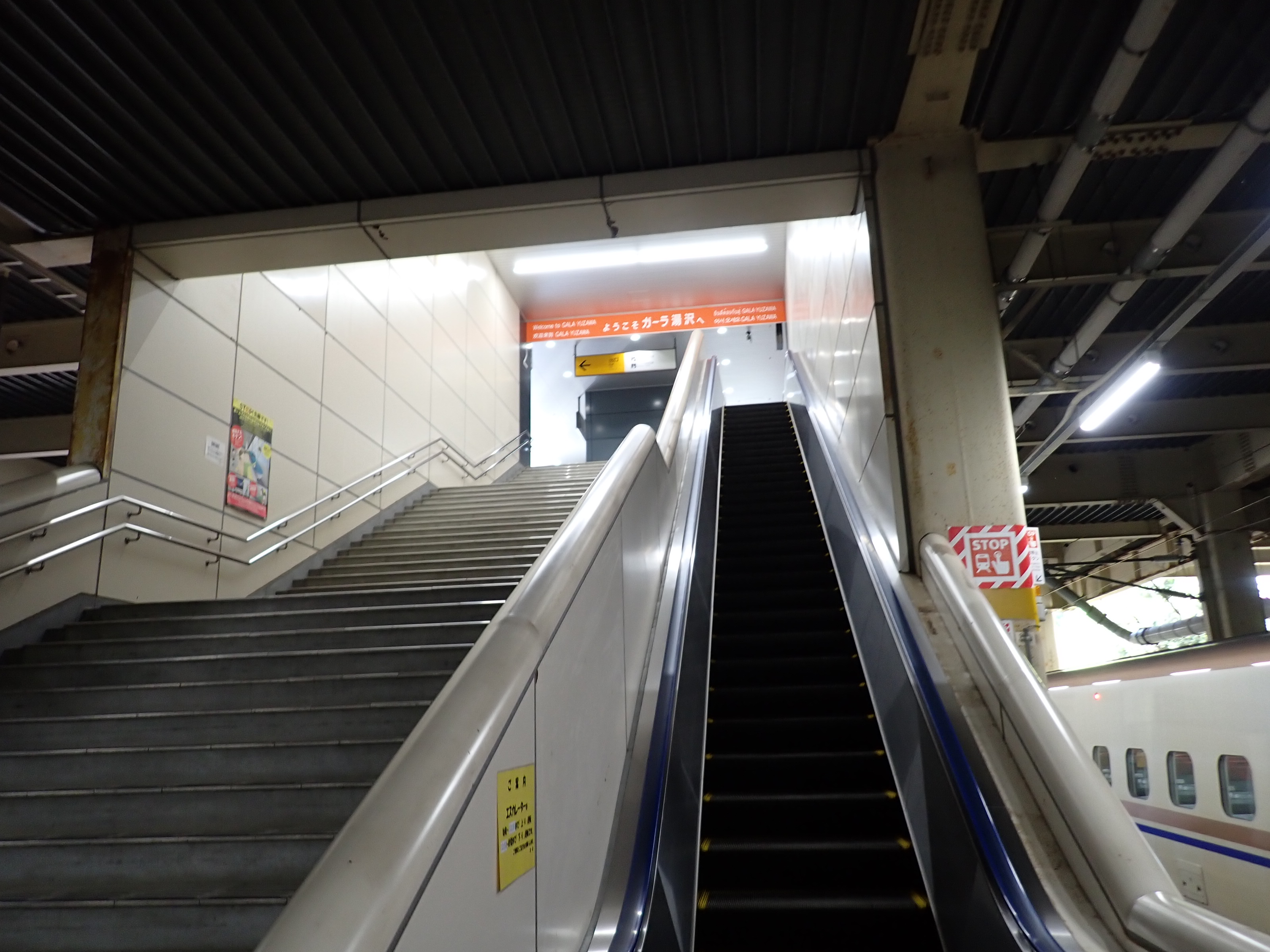 越後湯沢と反対側(終端側)のホーム階段・エスカレーター。