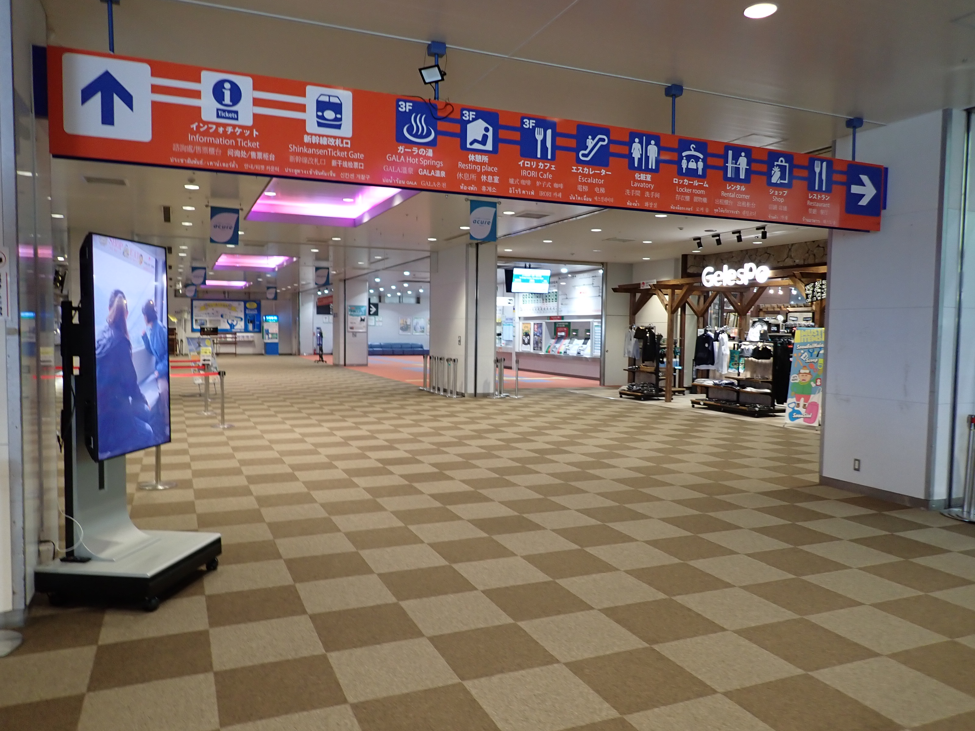 2階ゴンドラのりばへ続く通路。