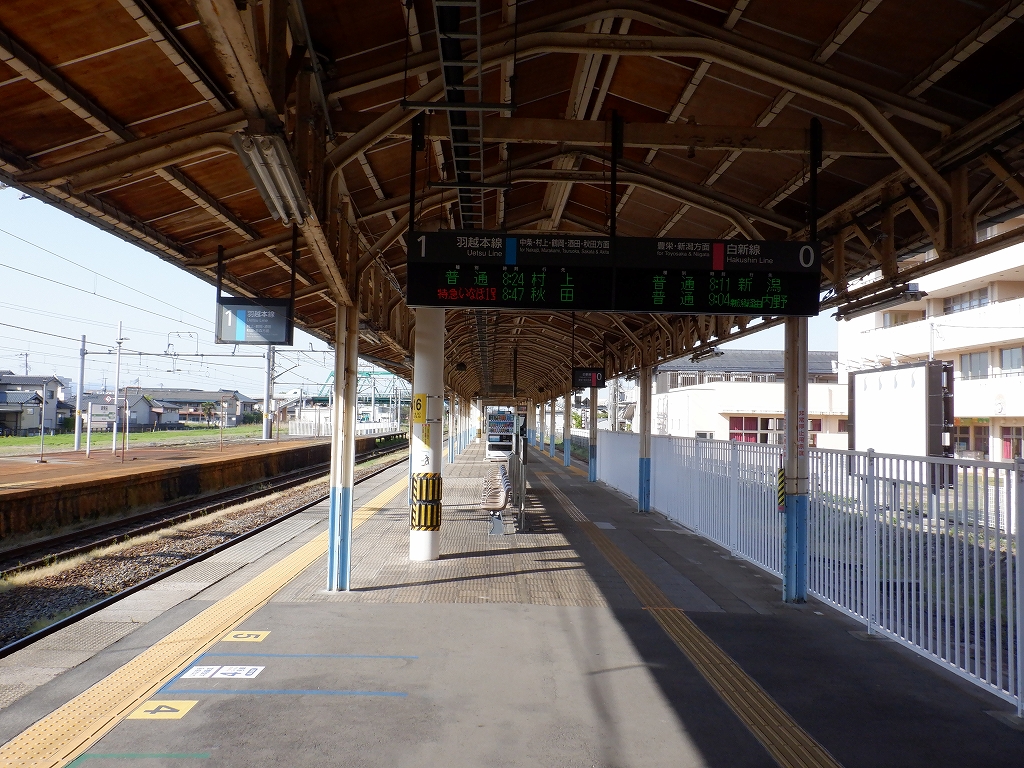 新潟方面から来た白新線と、ショートカットする形で新津から来た羽越本線が合流する駅です。特に白新線の当駅折り返し用に0番線があります。一時期は橋上化する計画があったようですが、旧来の駅舎を大きく改装する形となったようです。
