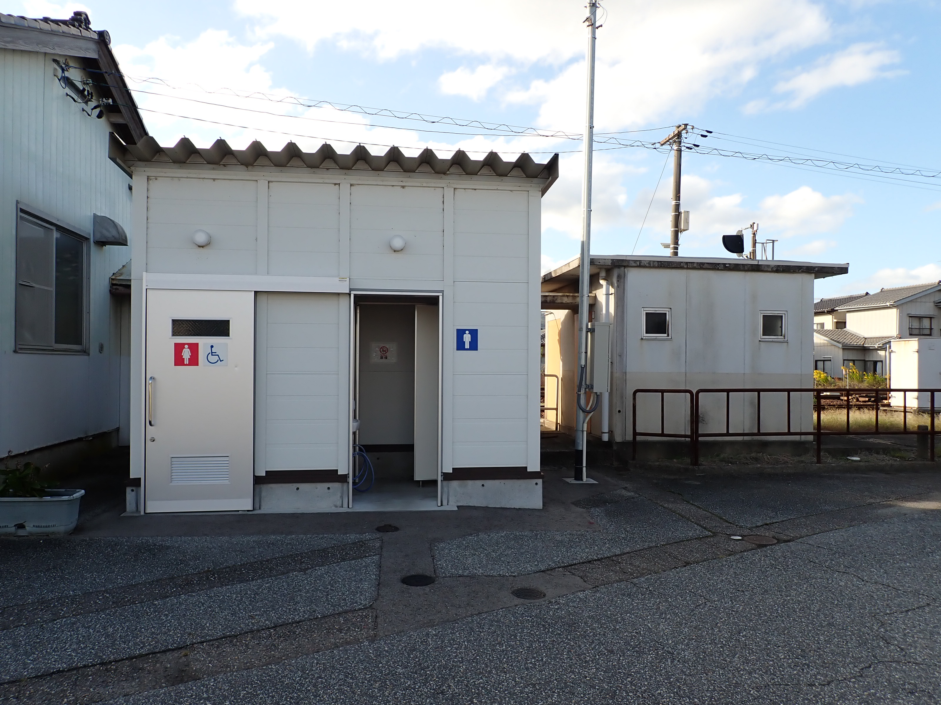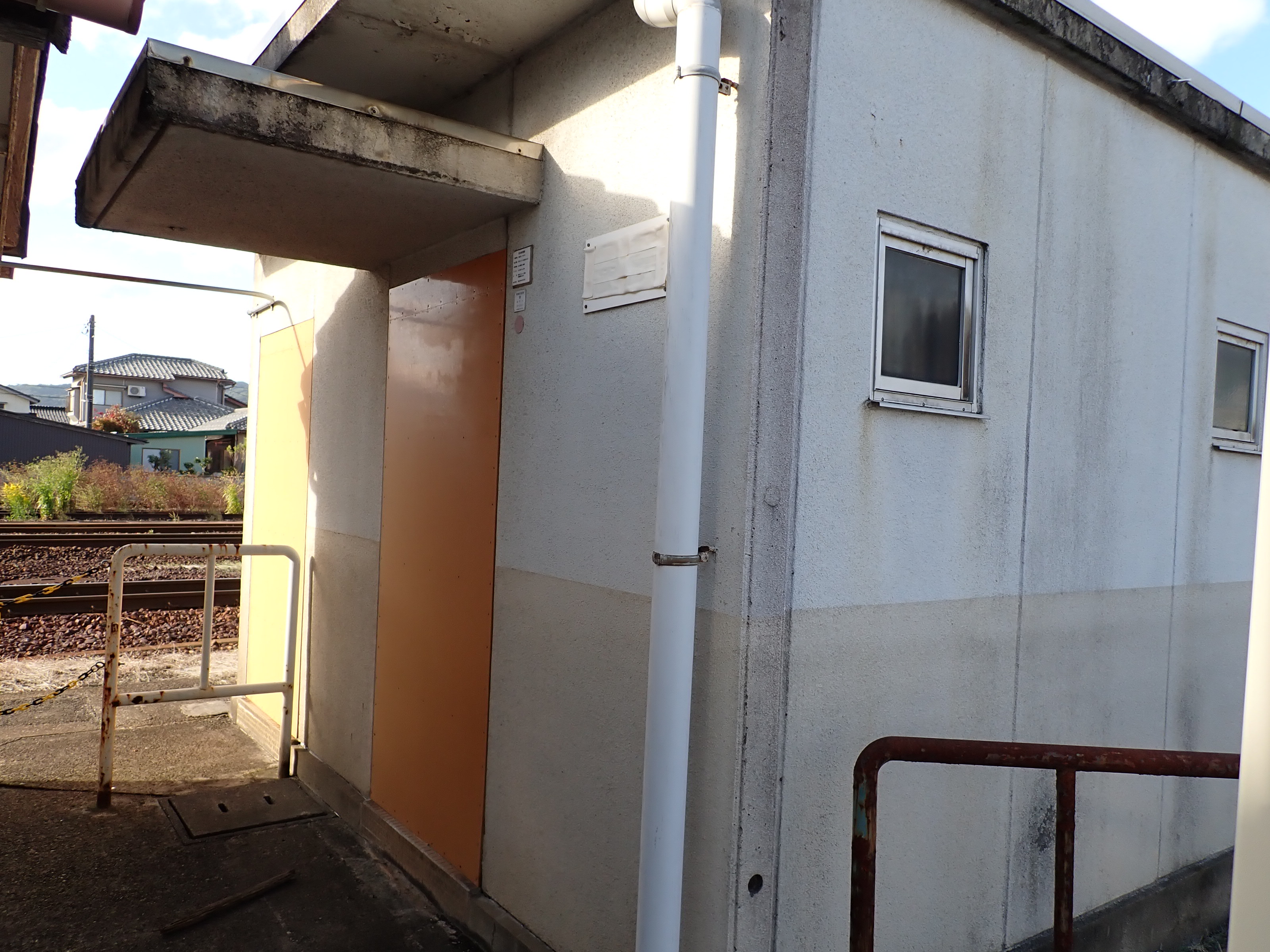 旧駅舎が取り壊されず、新旧トイレが並んでいます。