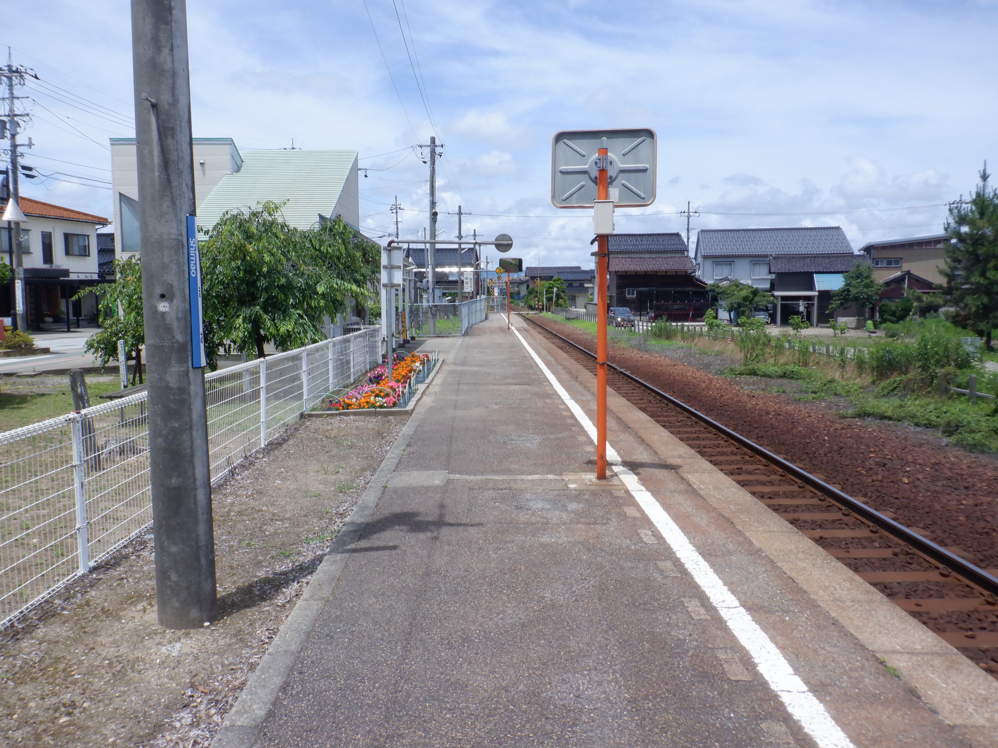 雨晴駅側のモニター(ITV)。柵のところに反射板が設置されました。