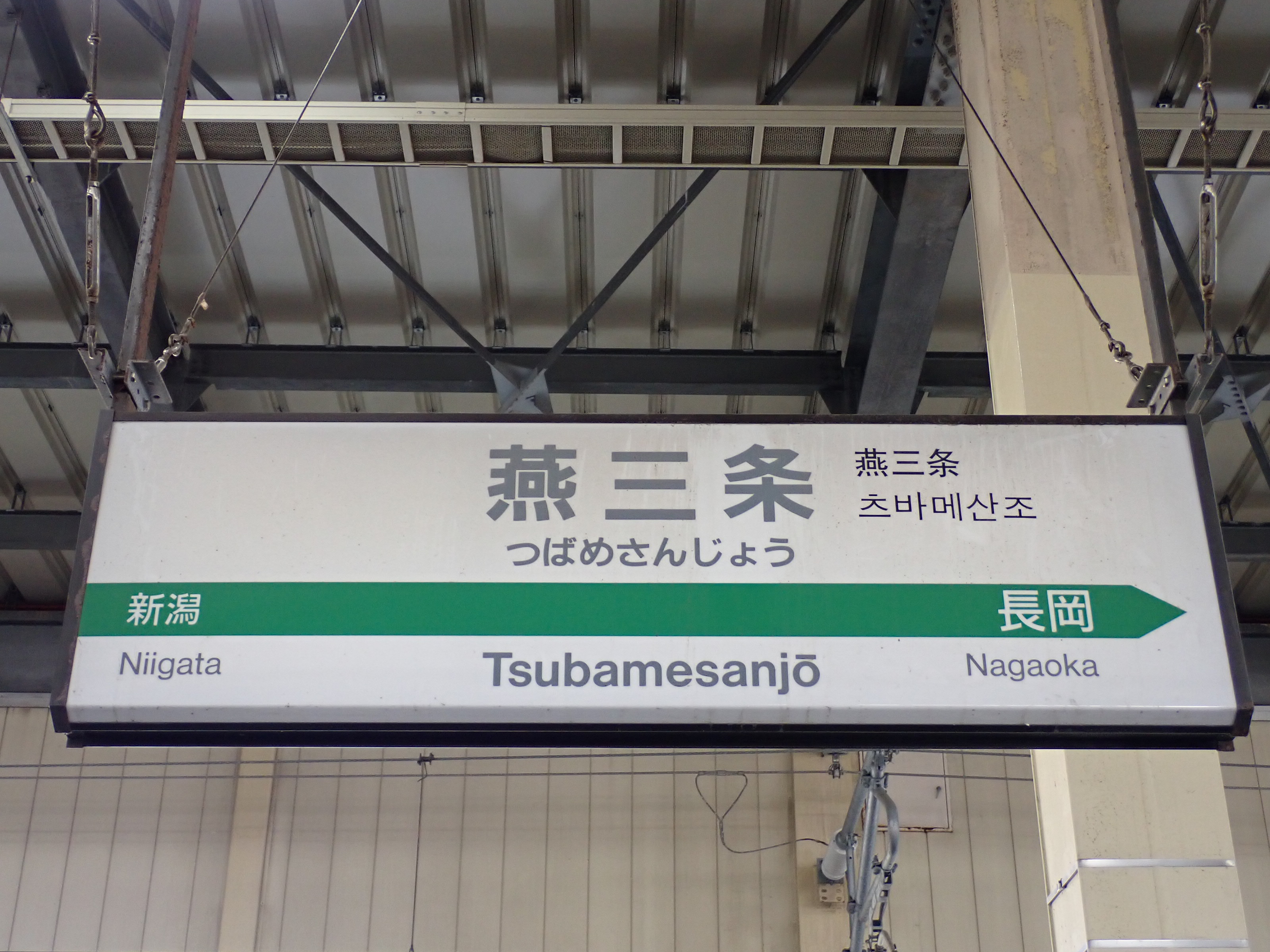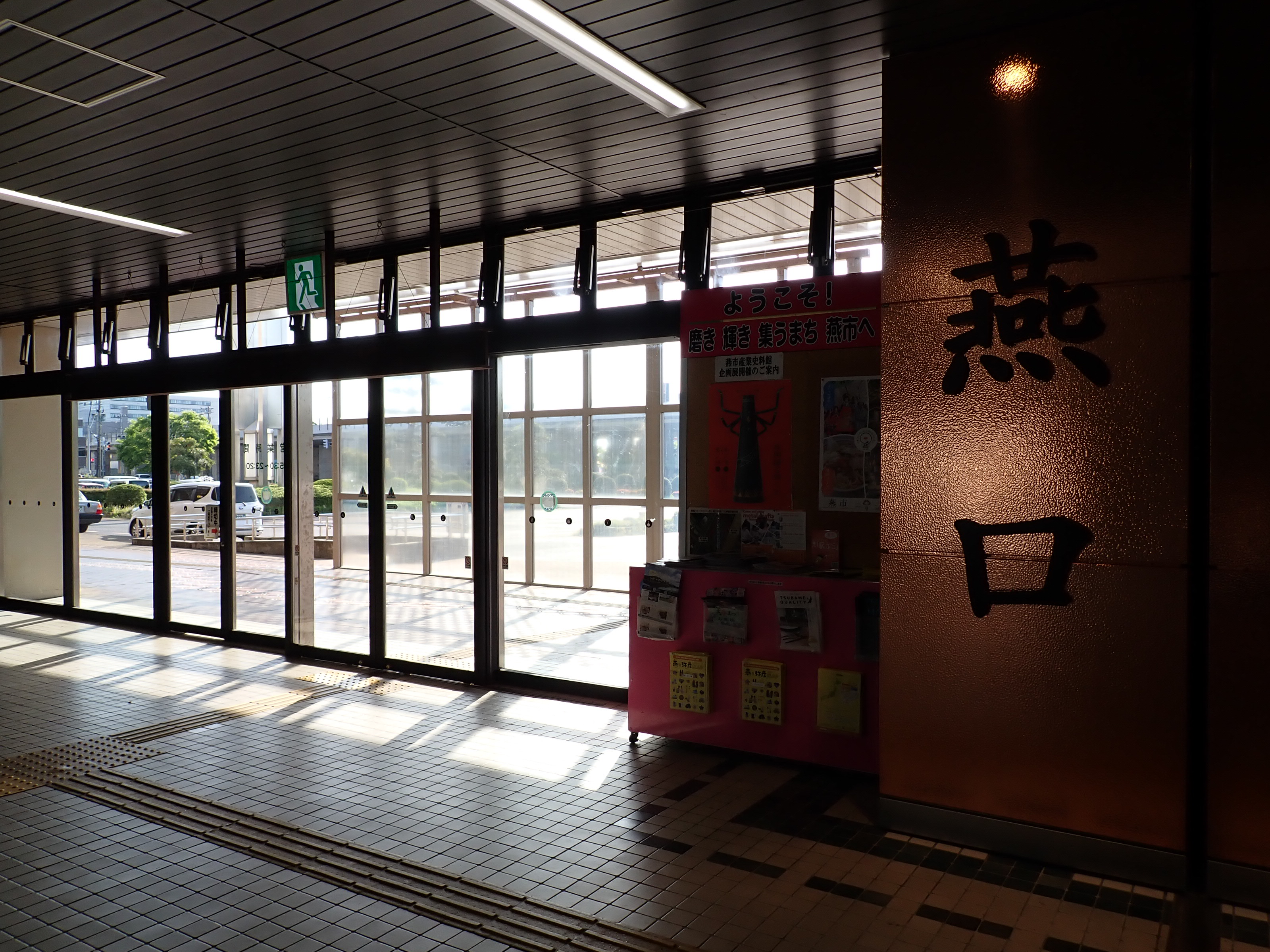 弥彦線と交差するところにある駅で、燕市と三条市の間に作られました。駅長室があるところが三条市なので、所在地は三条市となっています。それぞれの出入口も「燕口」「三条口」となっていて、規模等に差が出ないようになっていることがよく分かります。