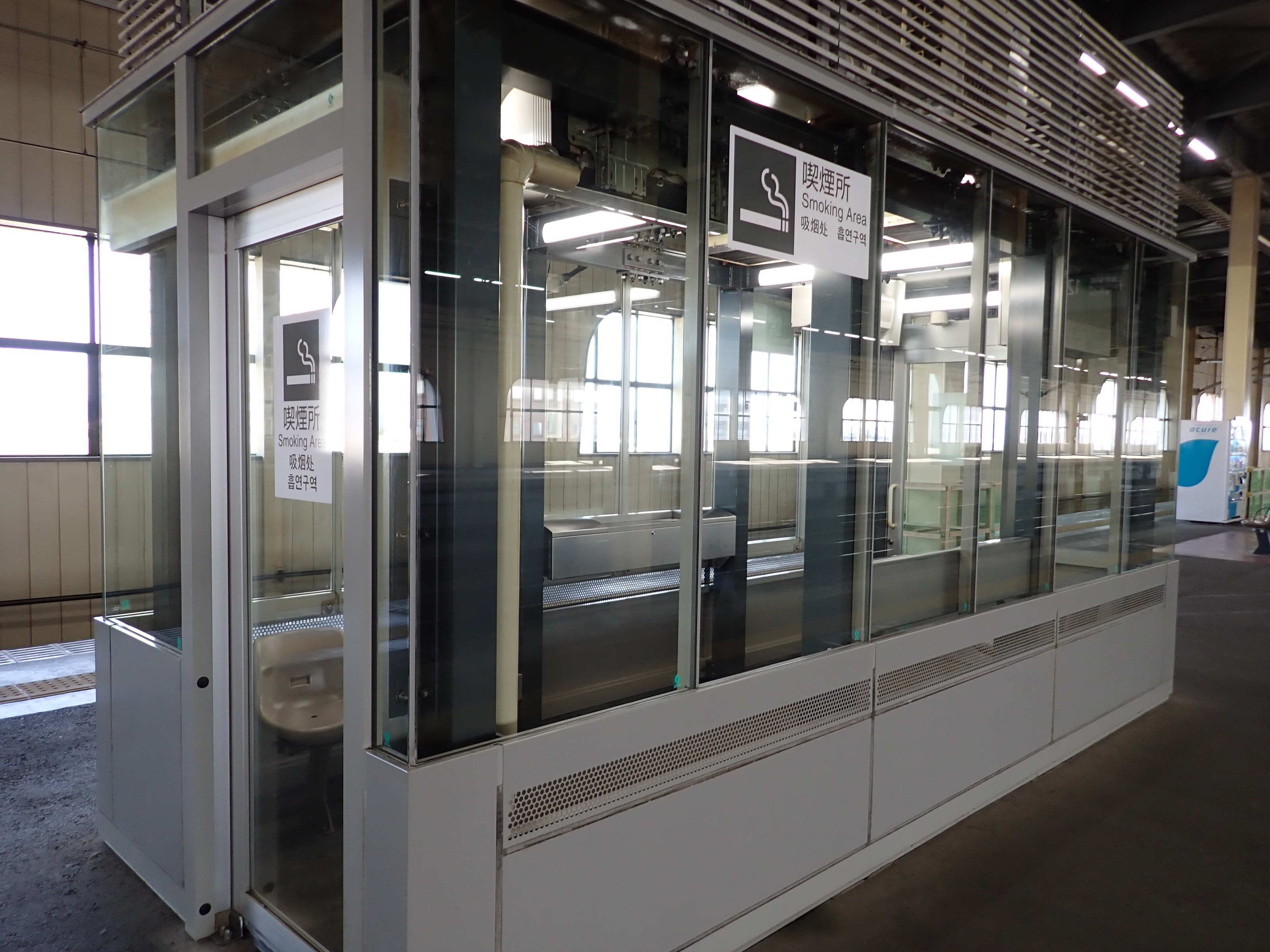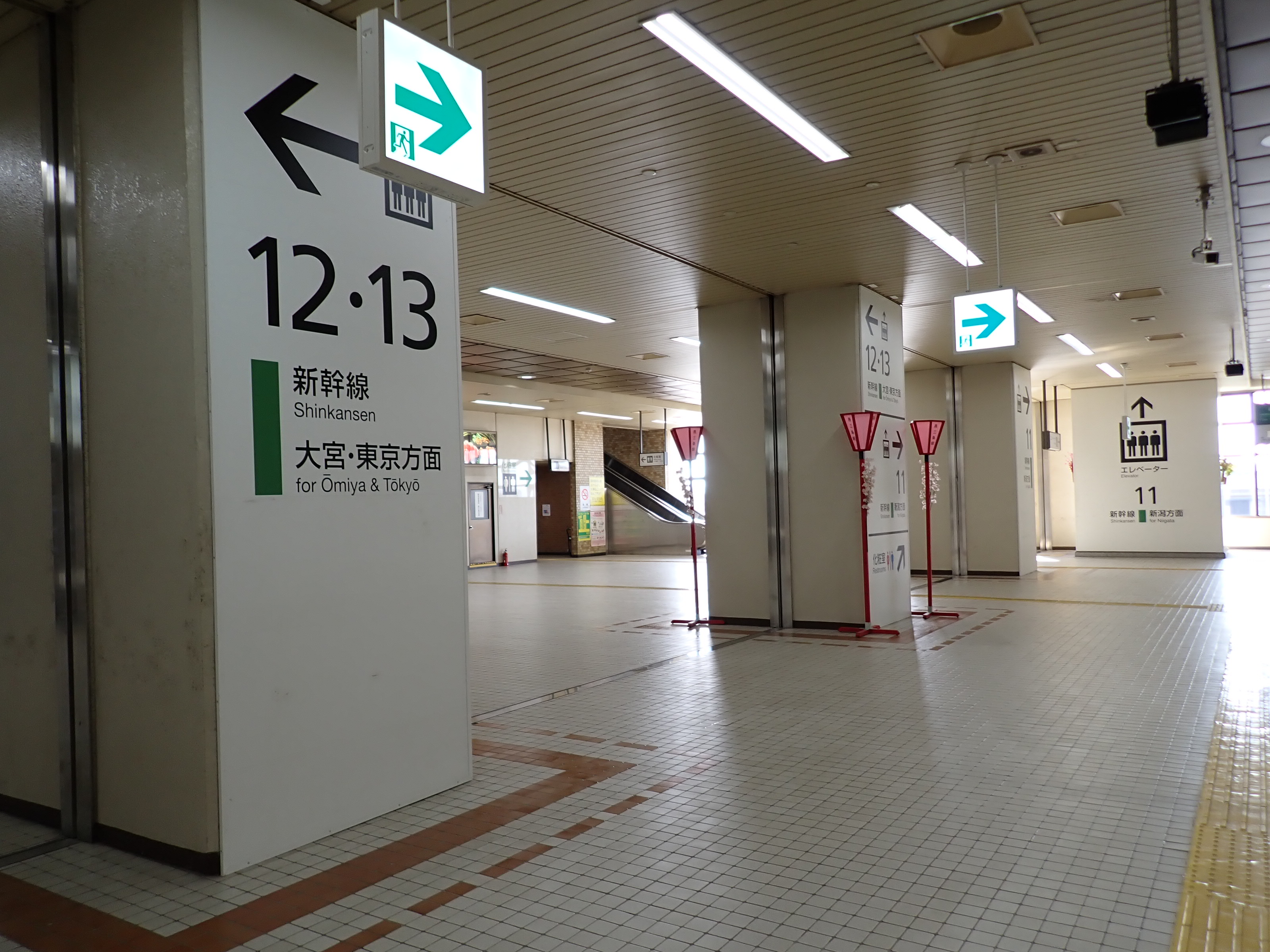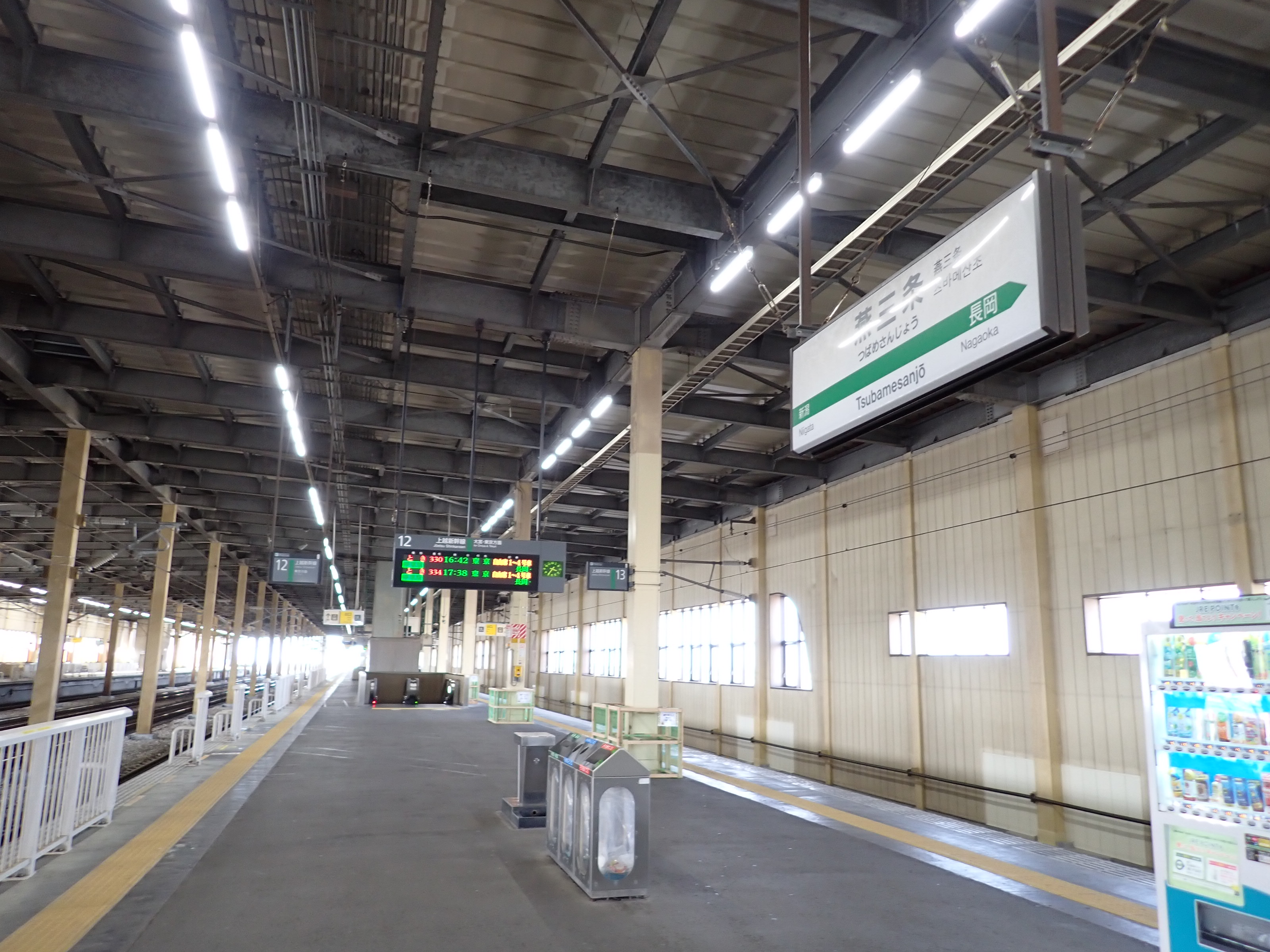 12・13番線の長岡駅側から中央部へ進みます。喫煙所など。