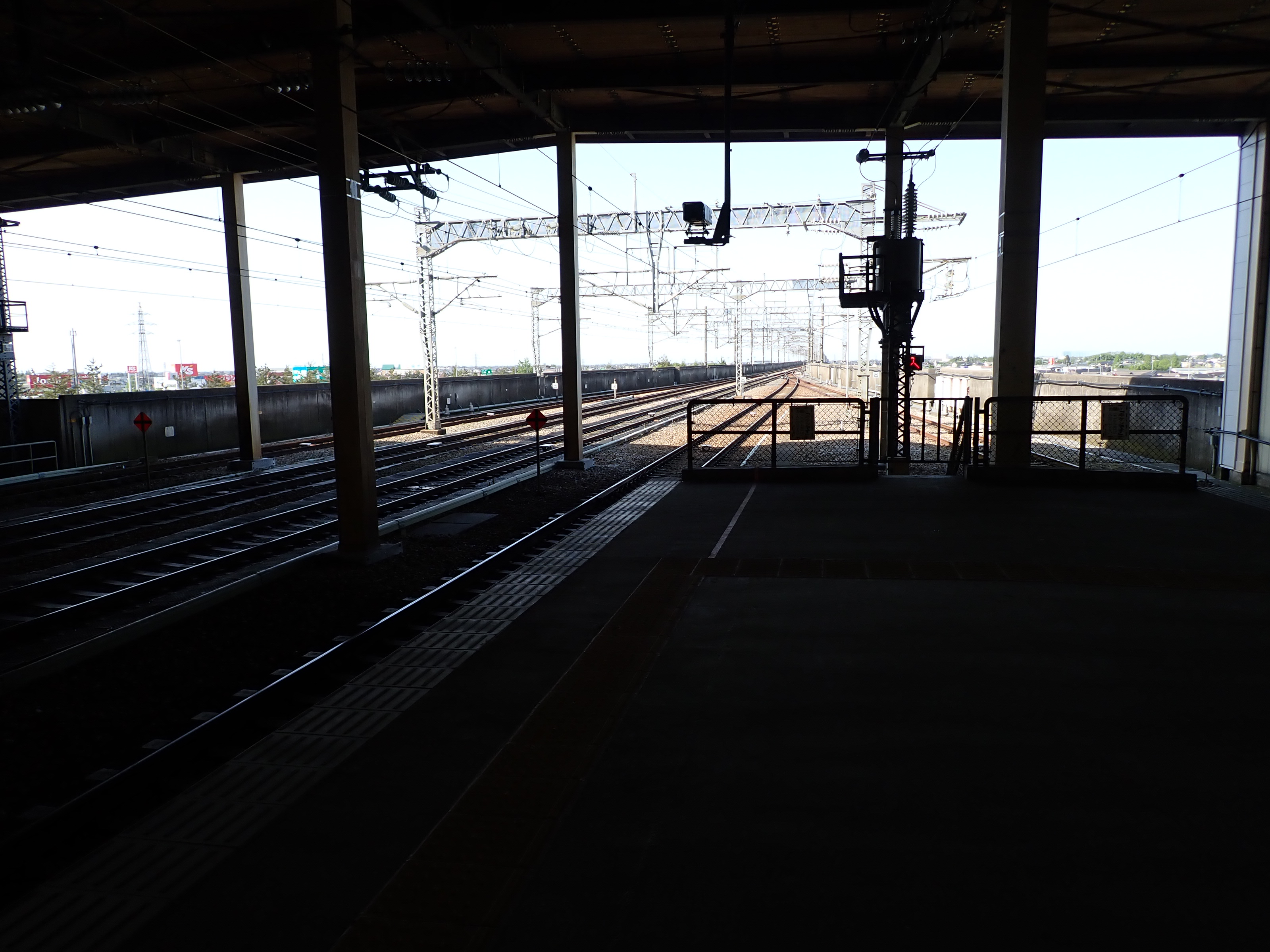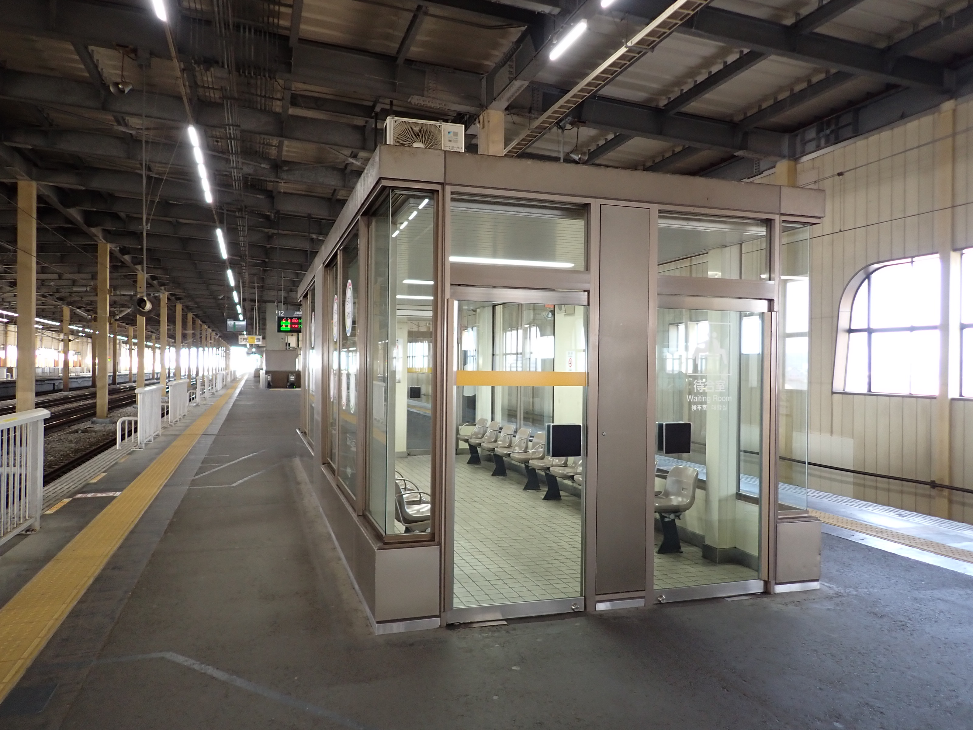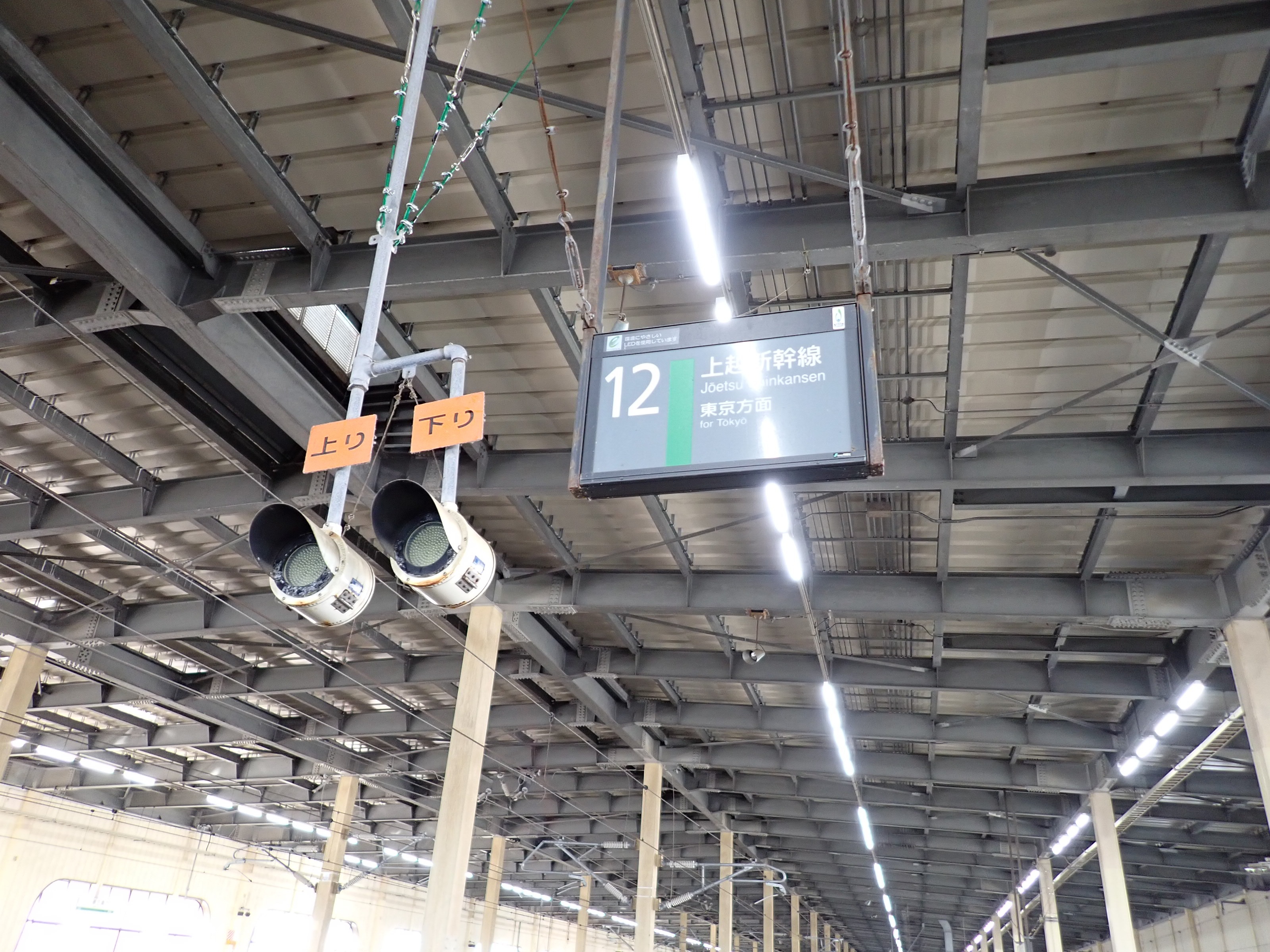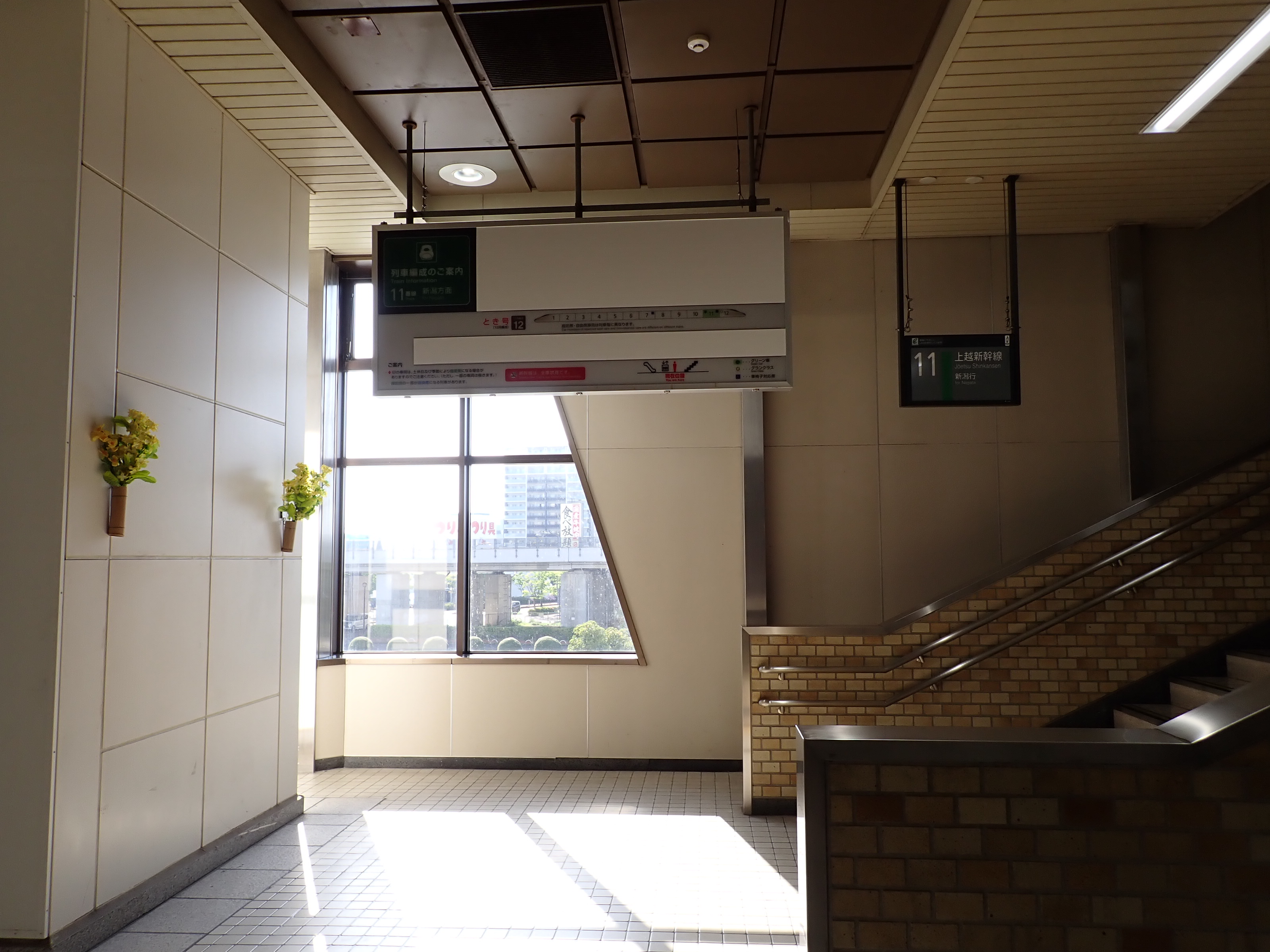12・13番線の長岡駅側から中央部へ進みます。喫煙所など。