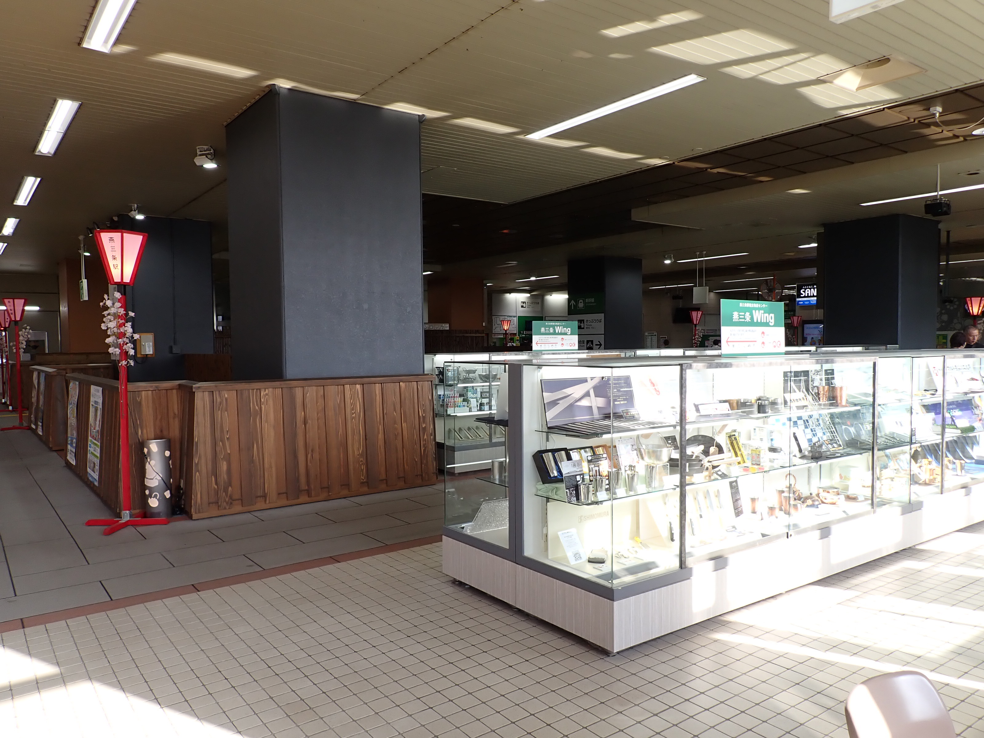 改札口にあるミラー。地元、燕振興工業さんのものが使われています。