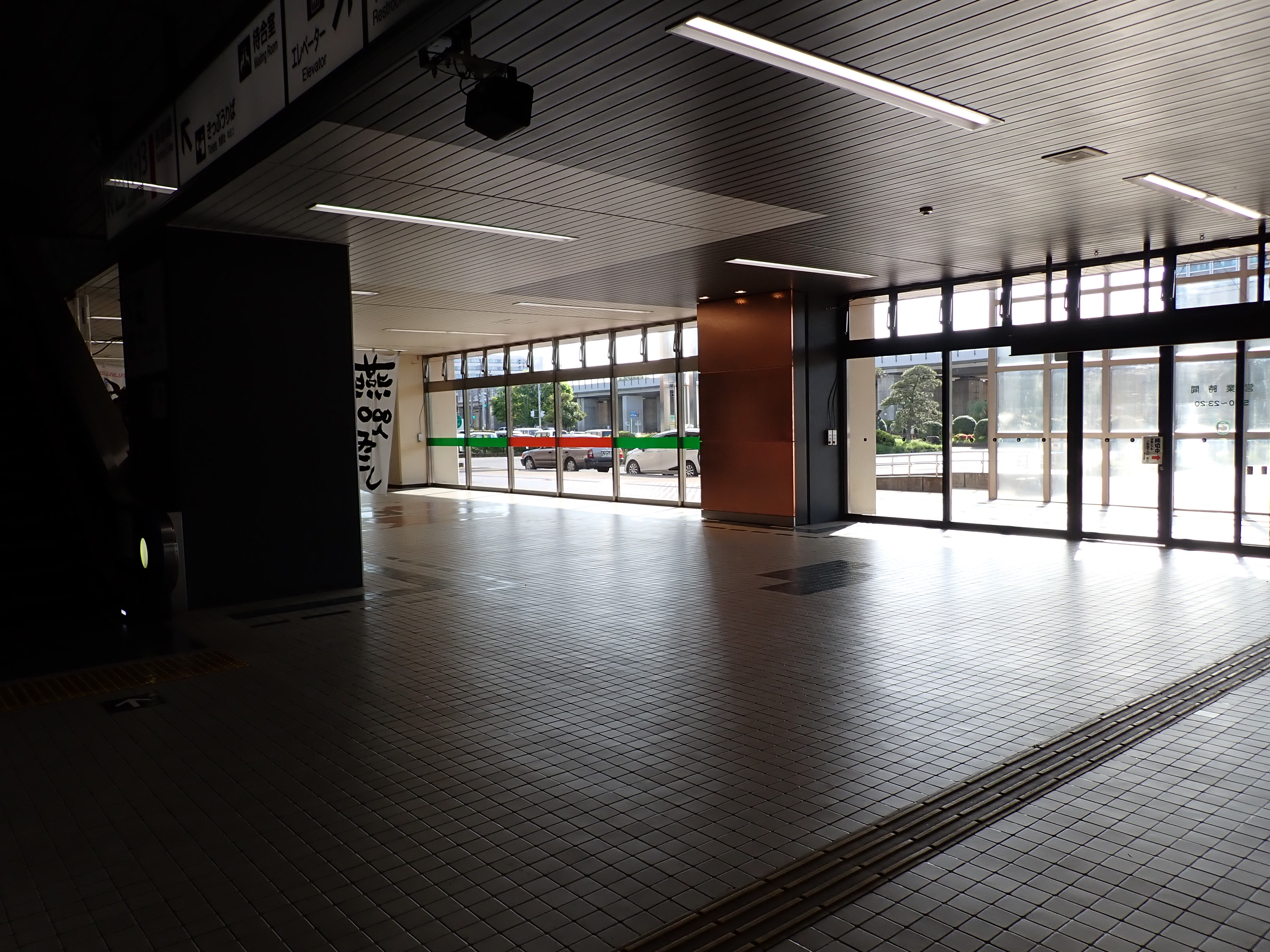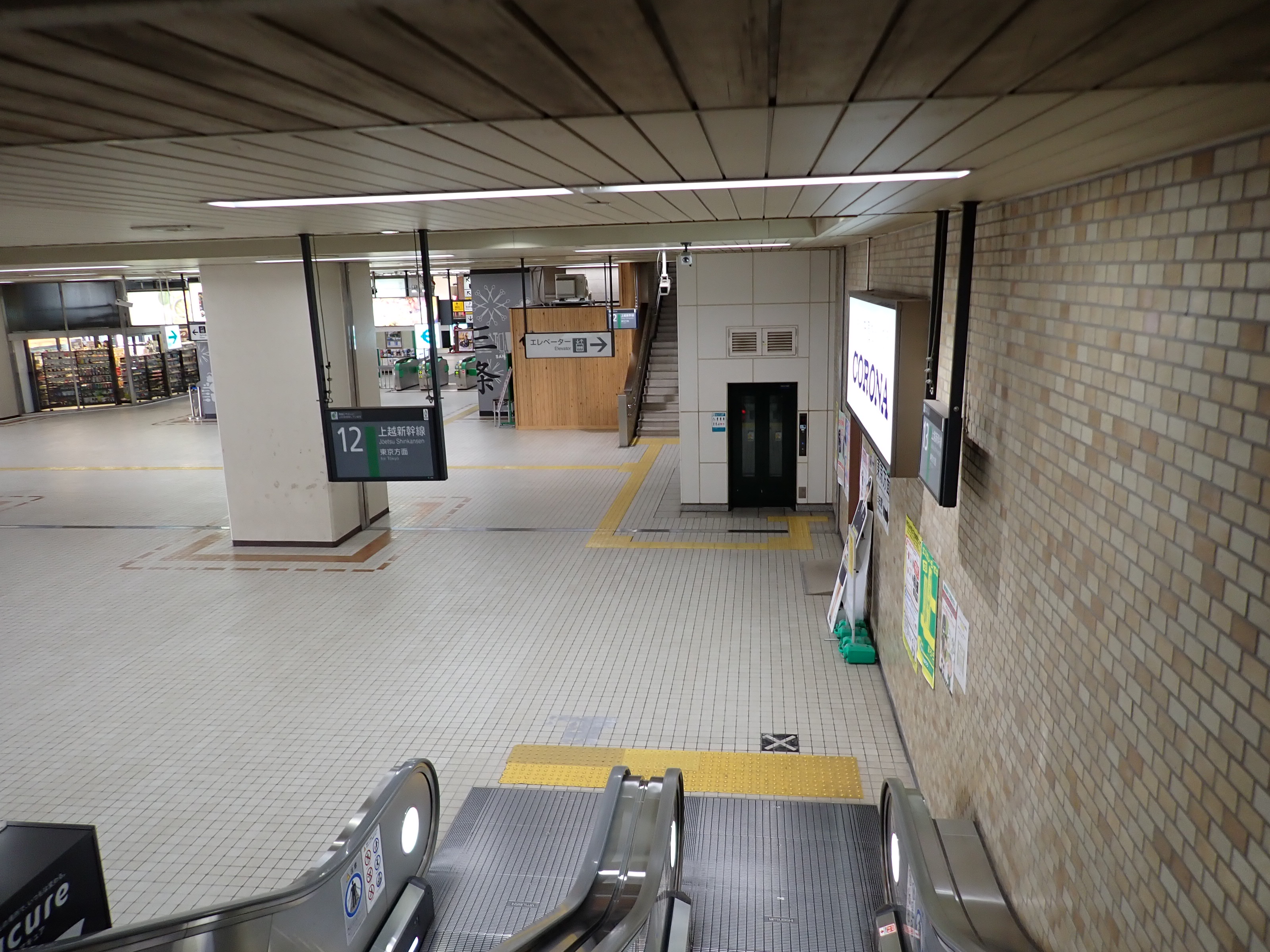 エスカレーターから駅前(燕口)を見おろしたところ。