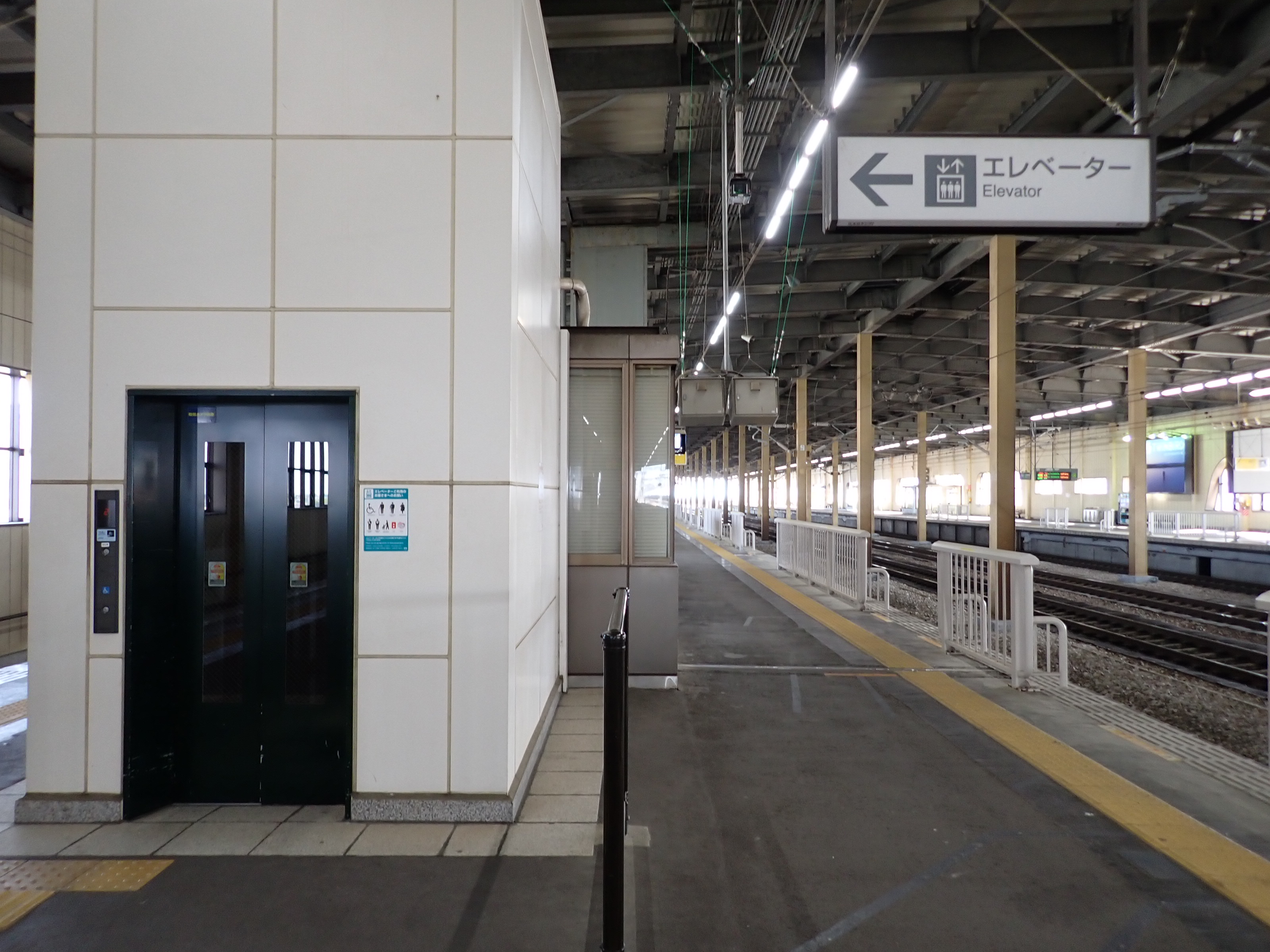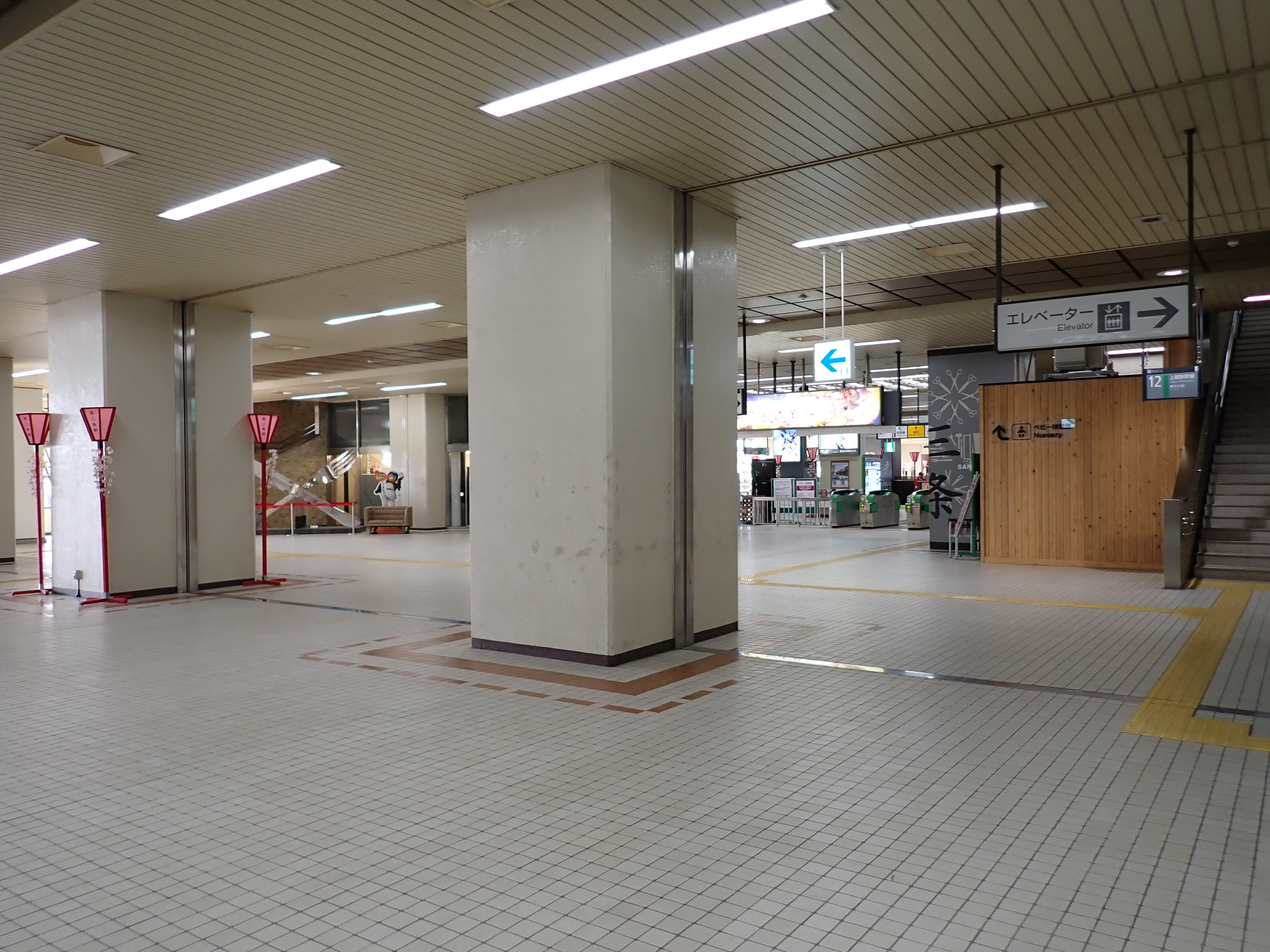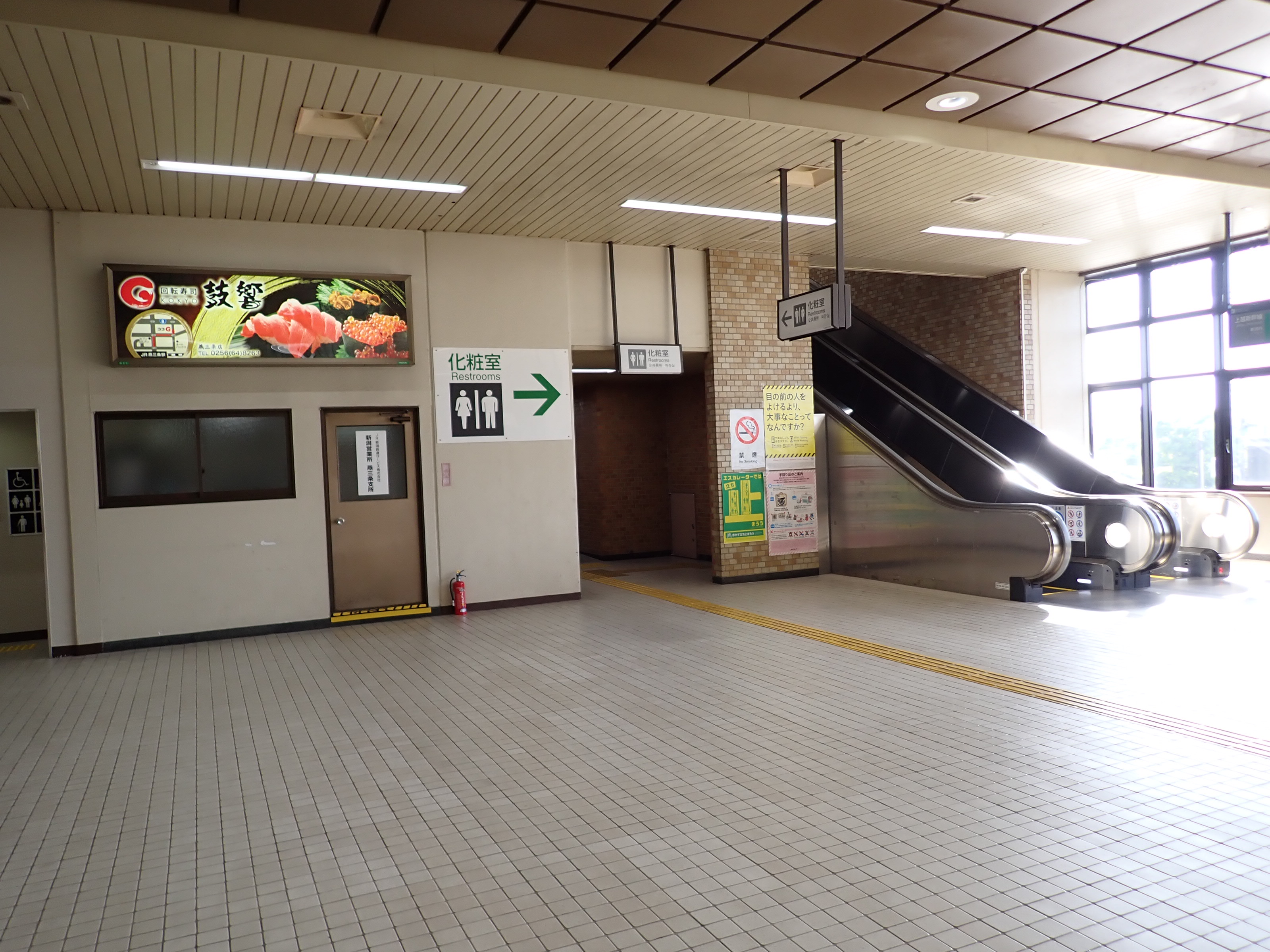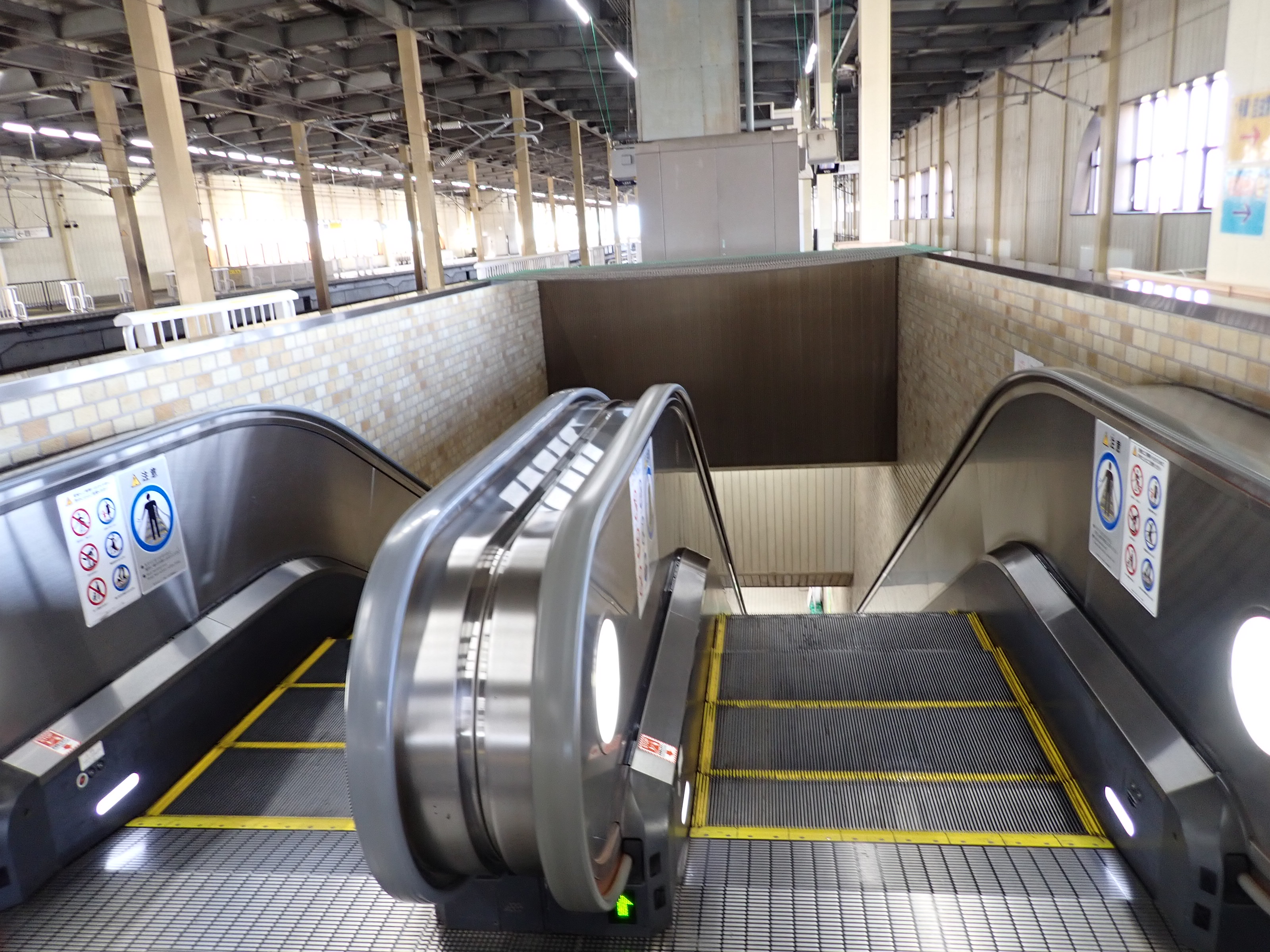 12・13番線のエスカレーターと階段の間。運転事務室付近の様子。