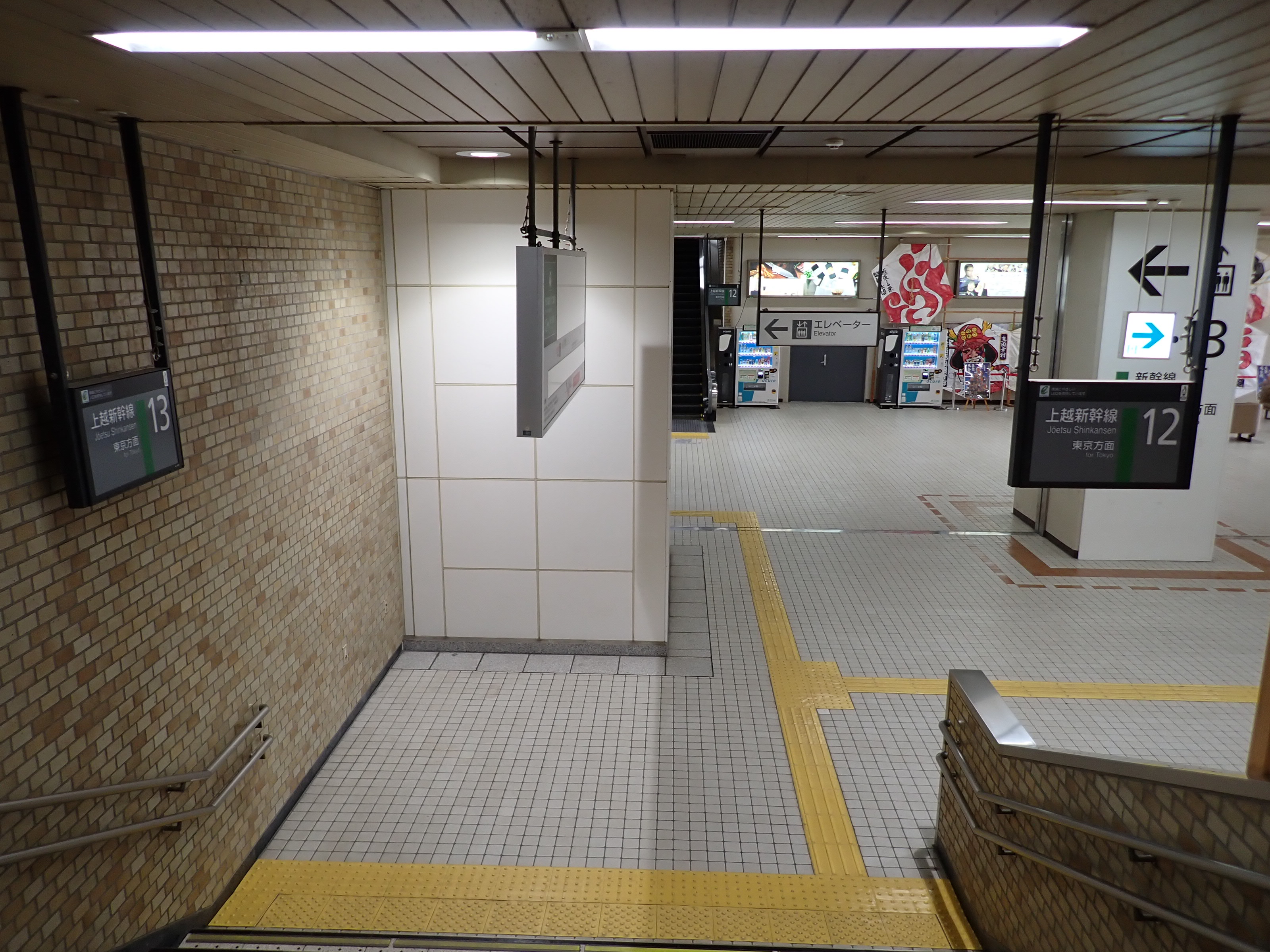 12・13番線の階段・エスカレーターで上がって行くところ。