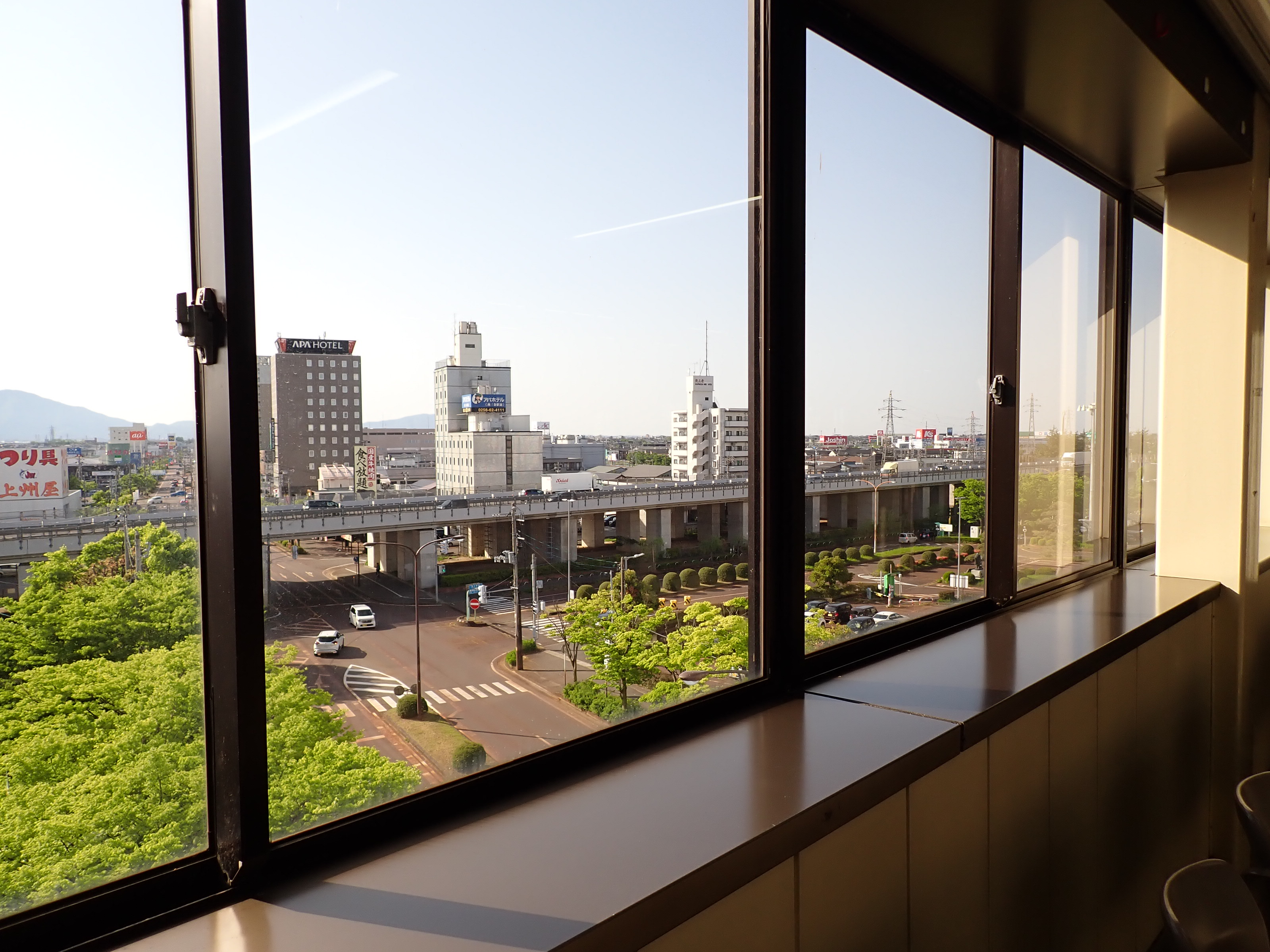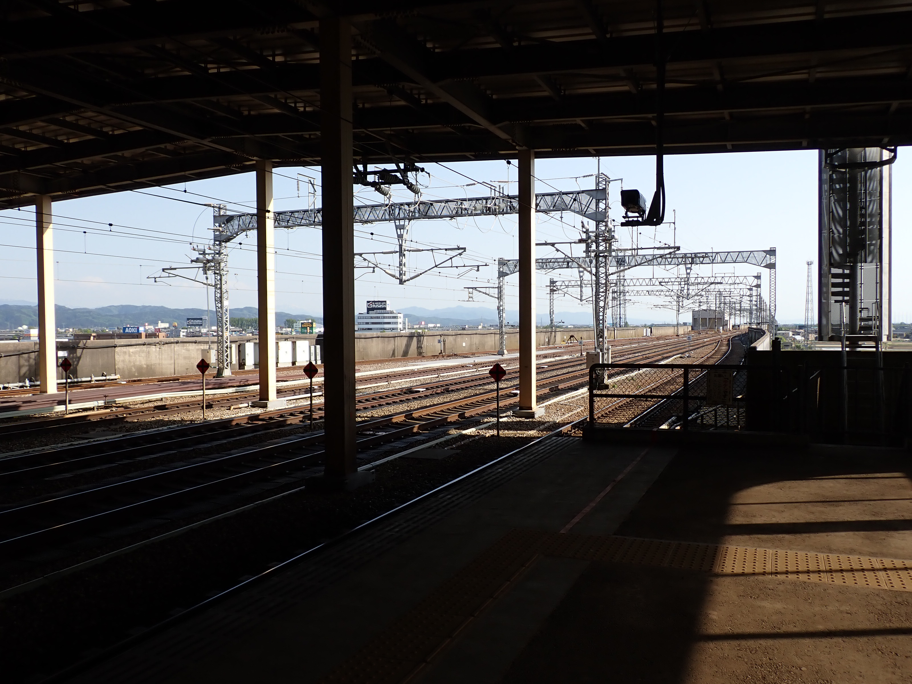 駅前広場の向かい側、北陸自動車道の高架付近。