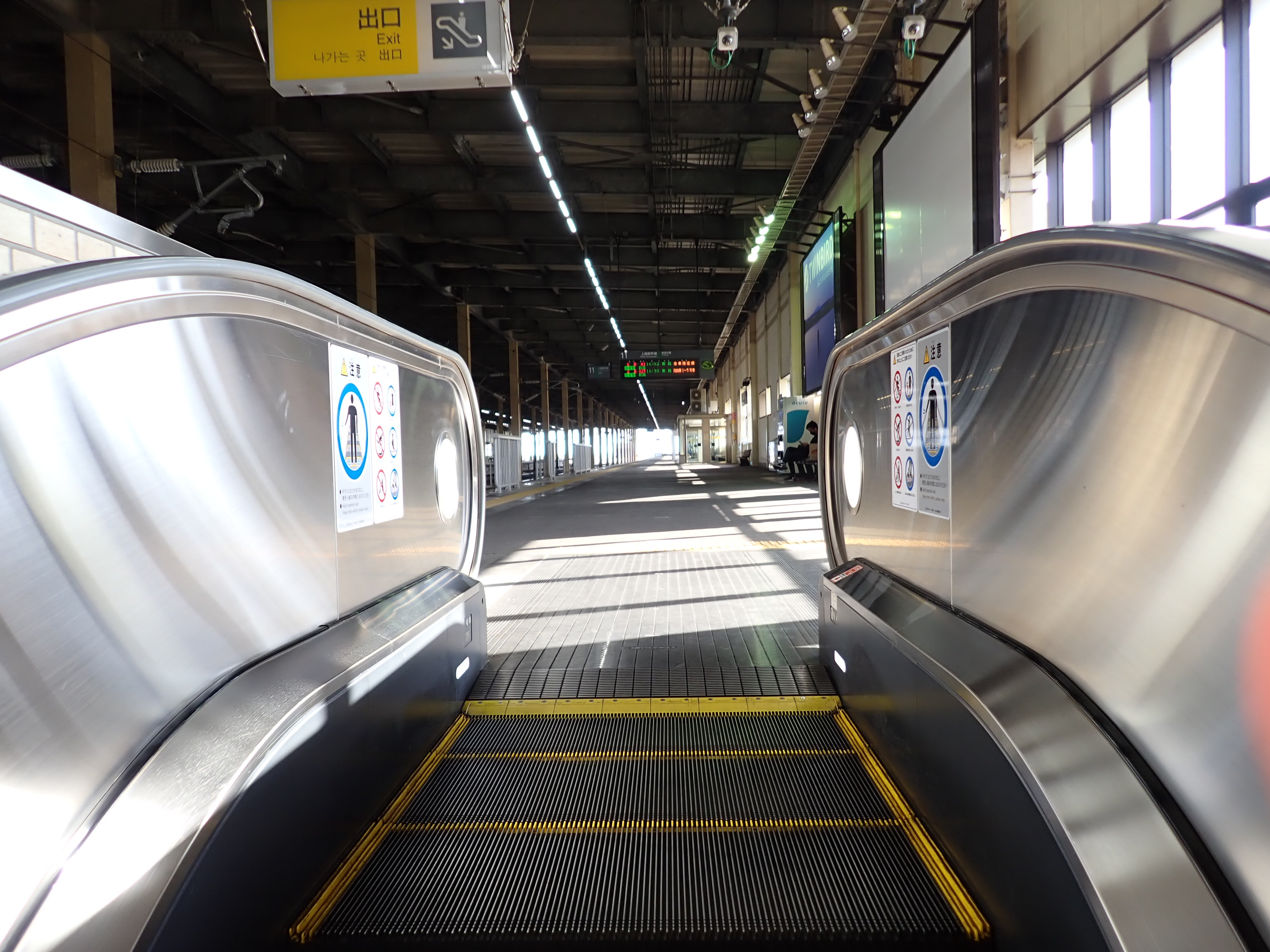 一旦エスカレーターで12・13番線へ上がり、再び改札階へ降りてきます。