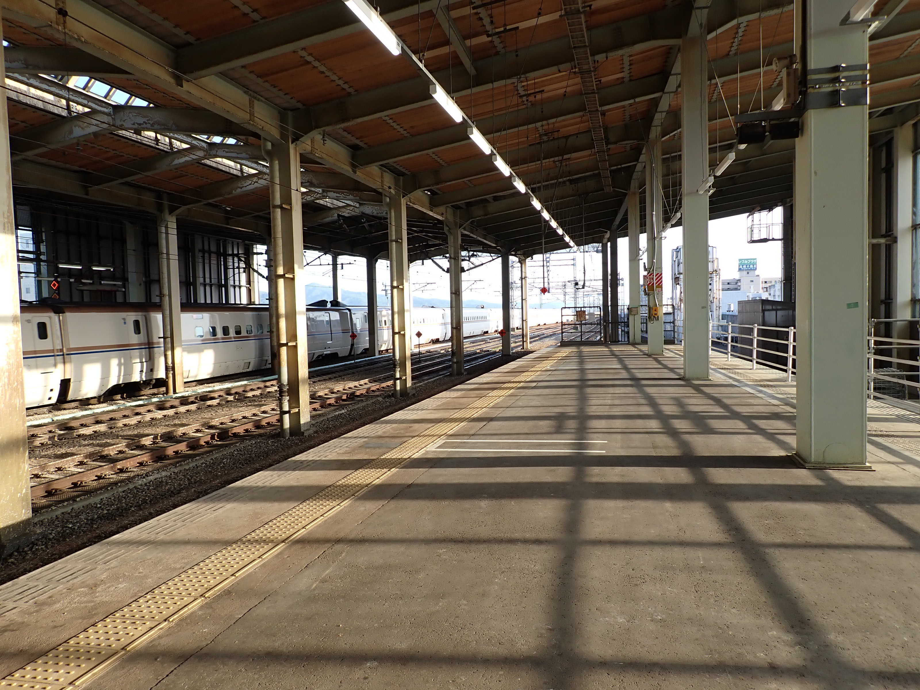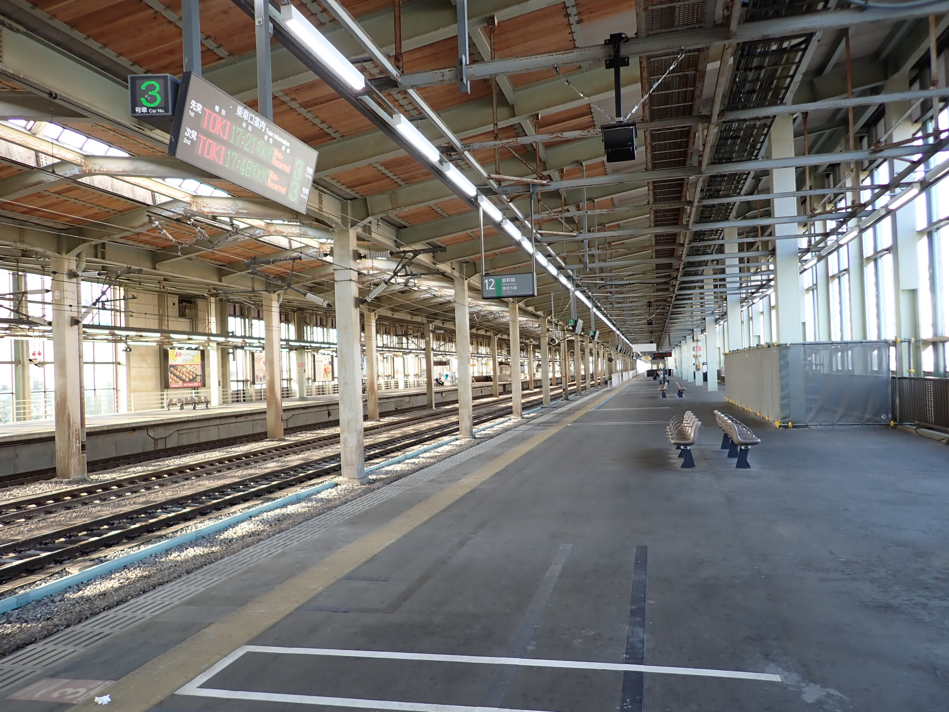 11番線は将来的に羽越新幹線建設に備えてホームを予め横に用意してあると言われているスペ−スがあるのが特徴です。
