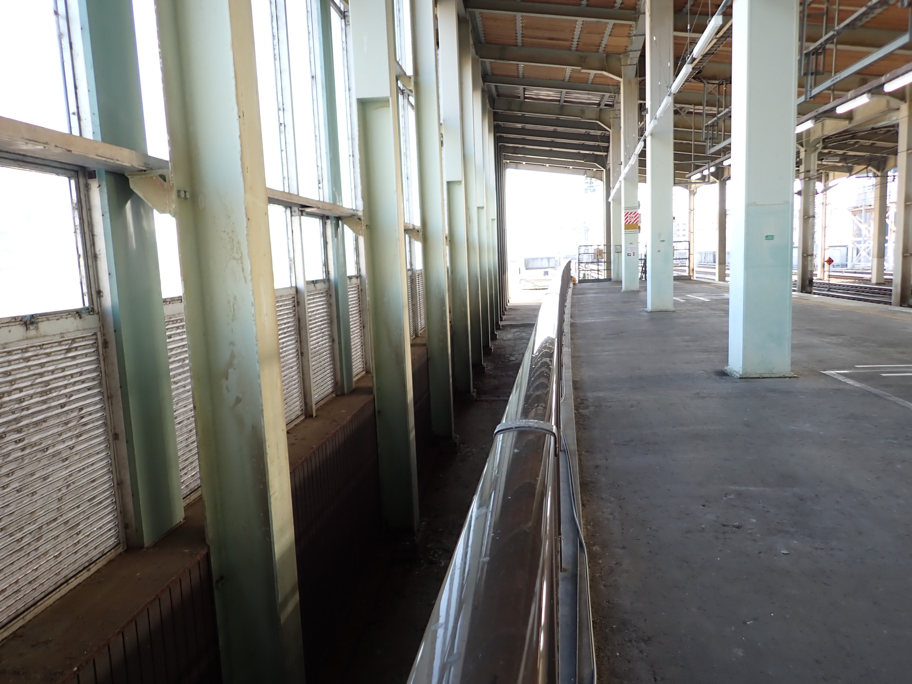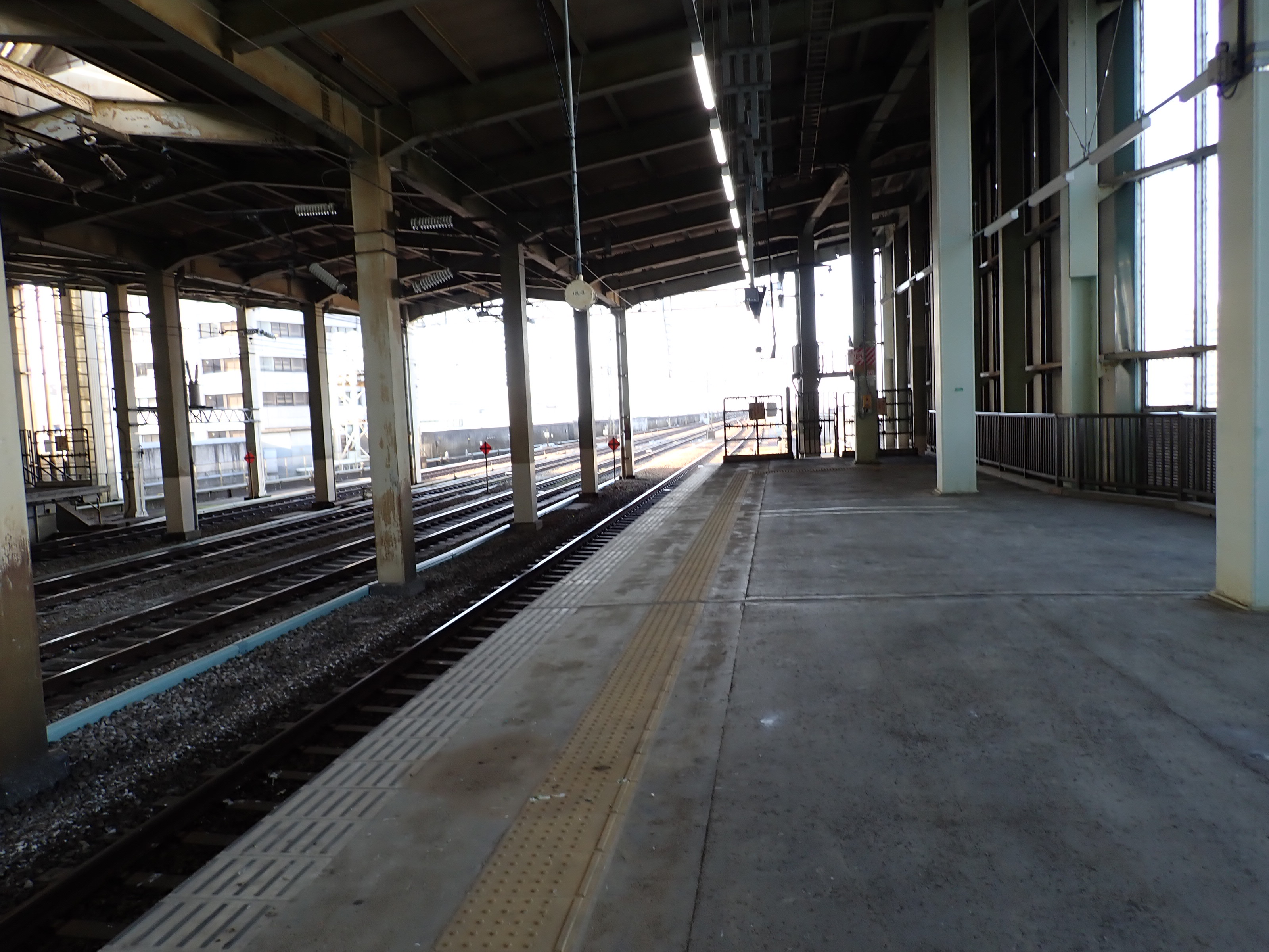 11番線の浦佐駅側。先端の方のホームが壁から少し離れています。