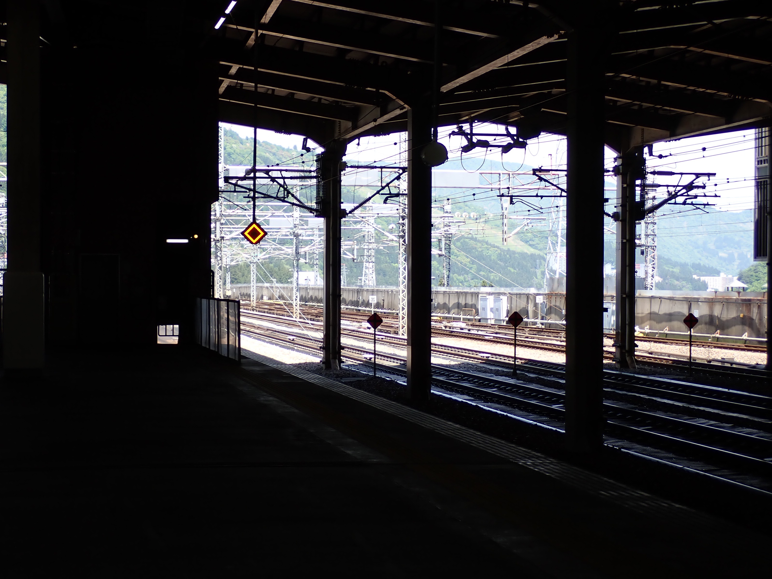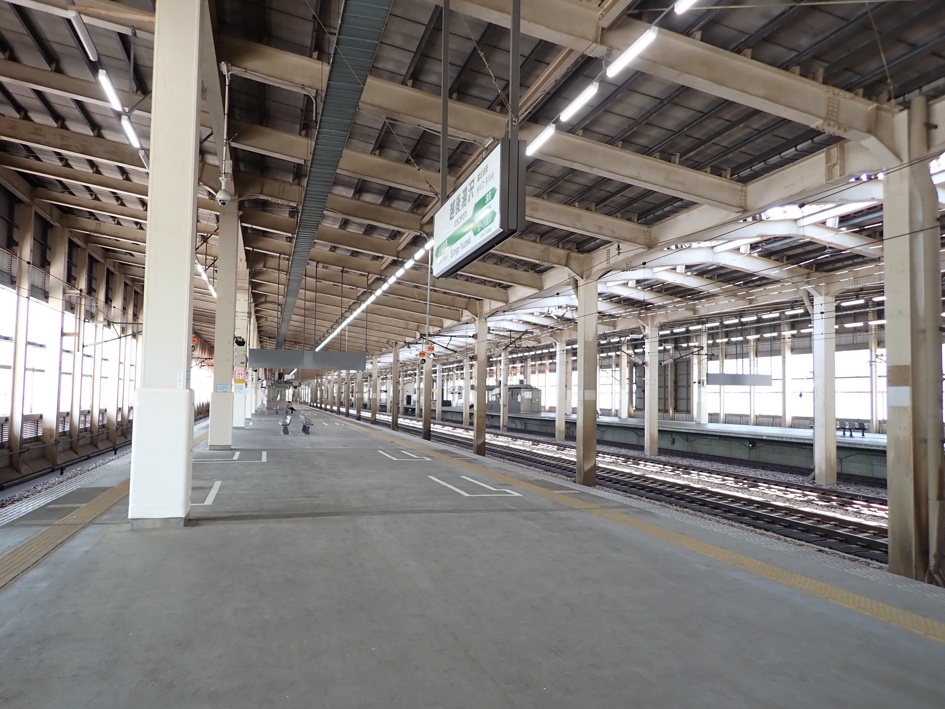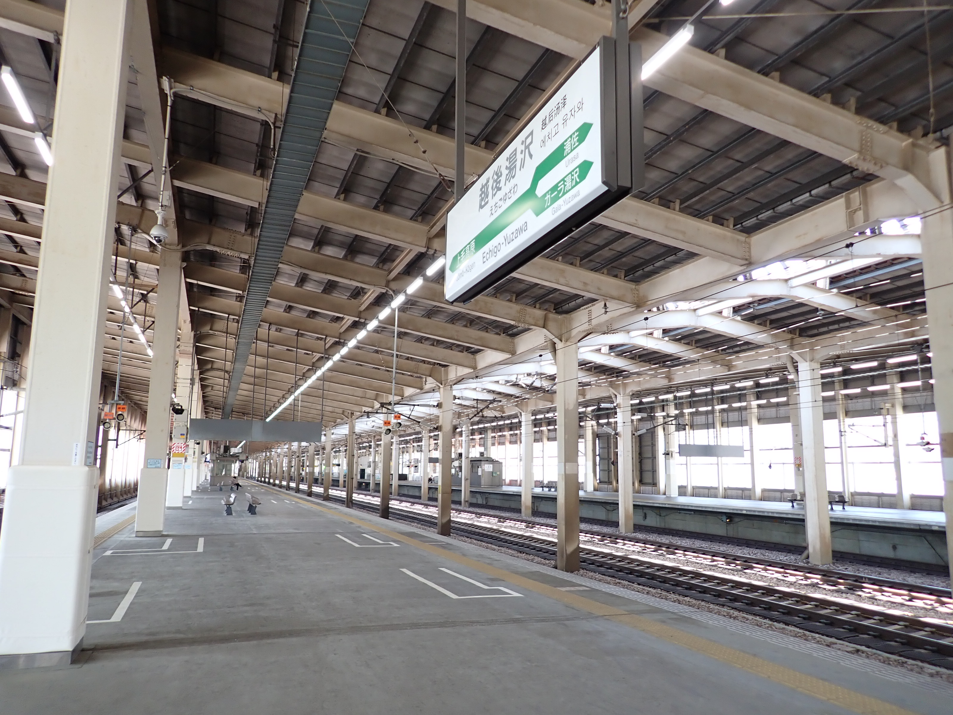 13・14番線上毛高原駅からホームの中央の方を見たところ。