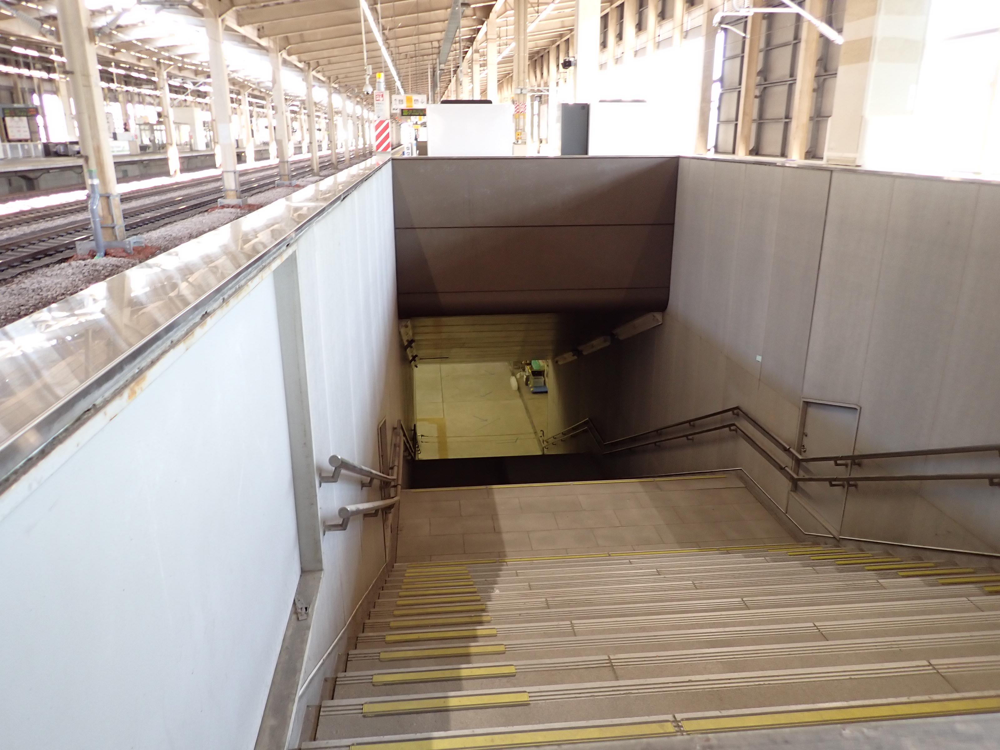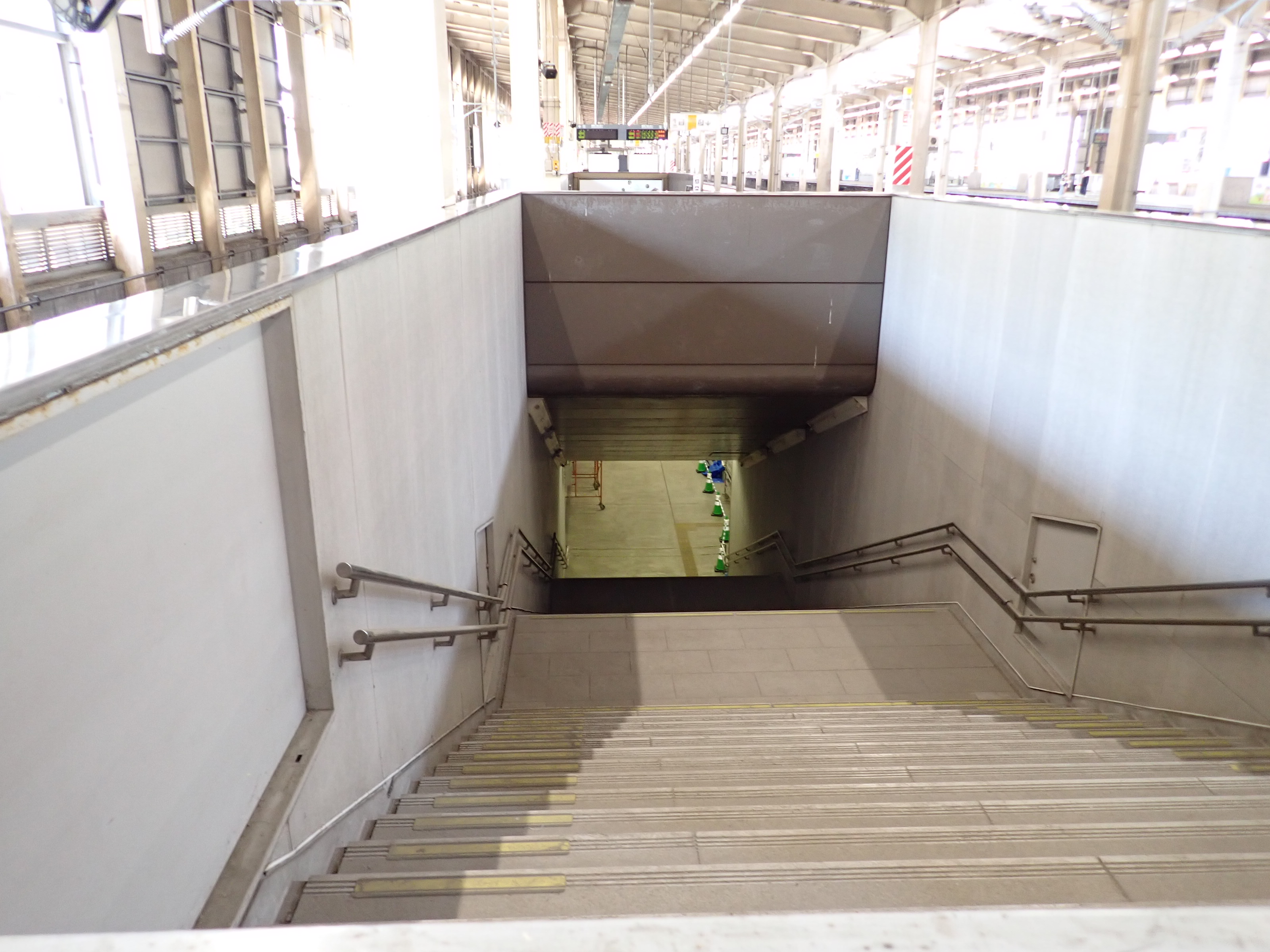 エスカレーターと対面になっている方(改札口に近い方)の階段から下っていくところ。
