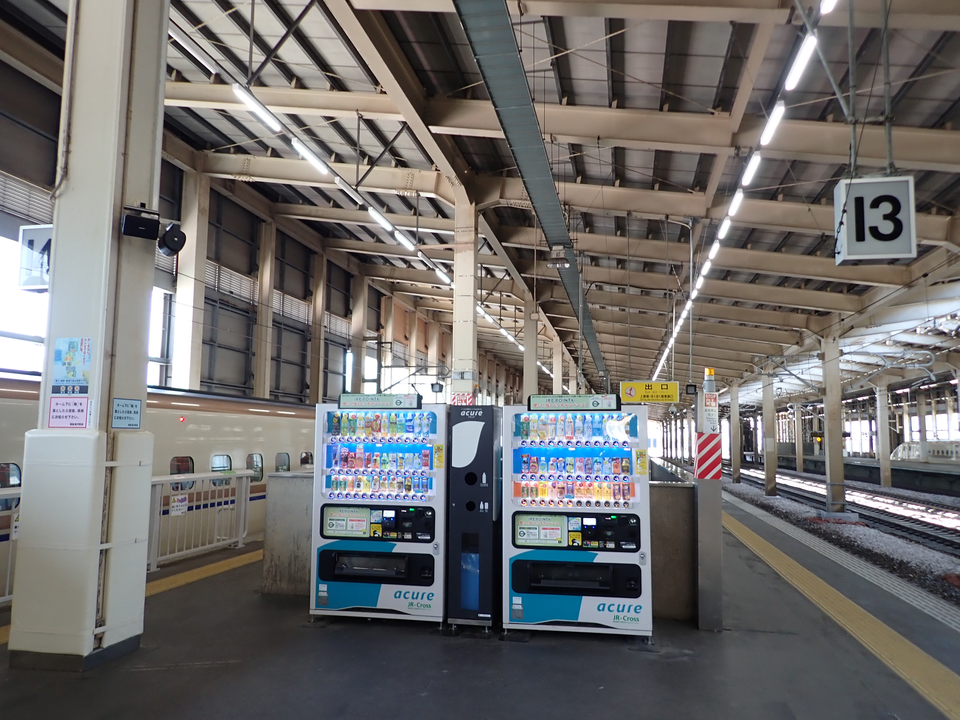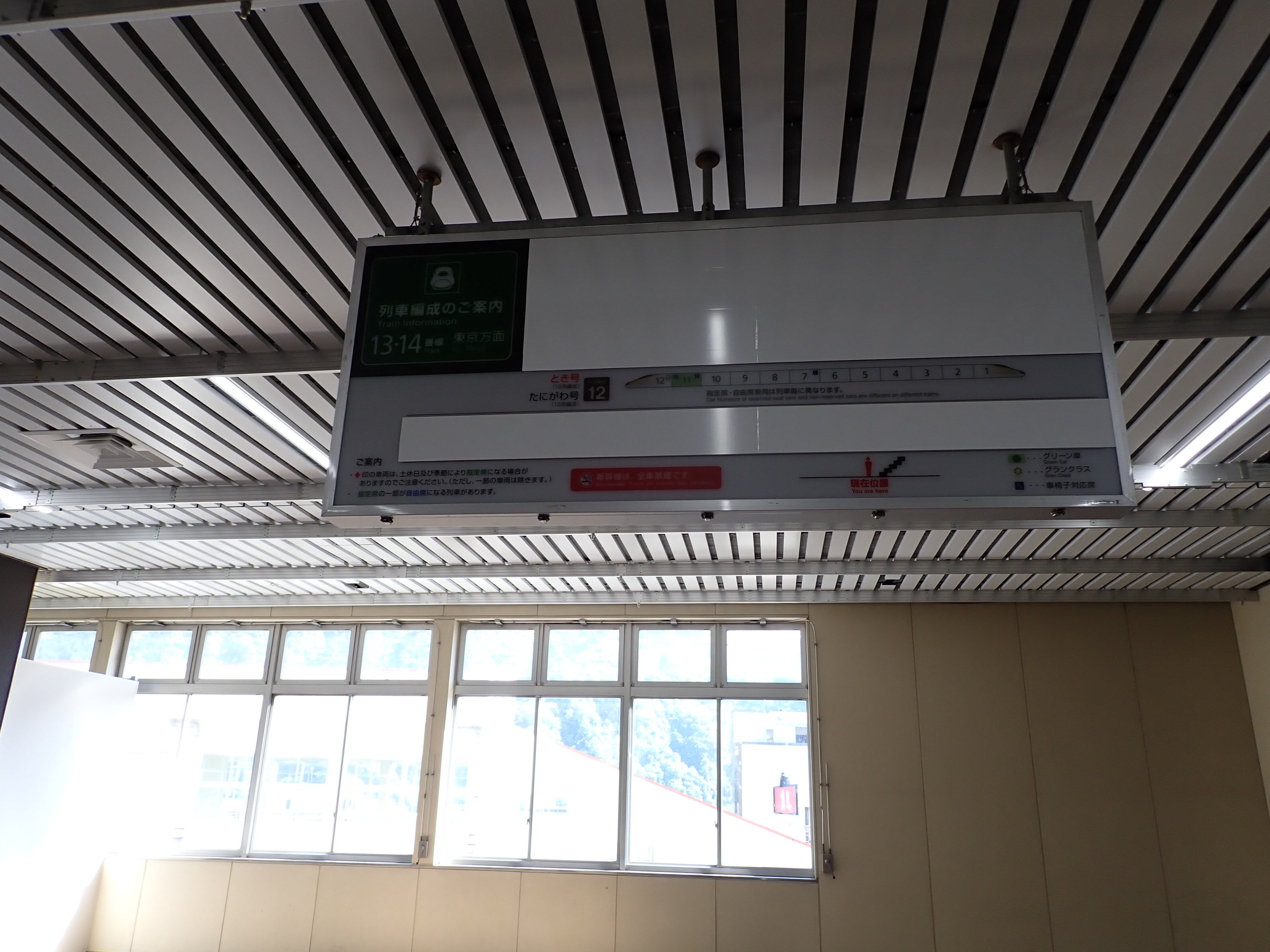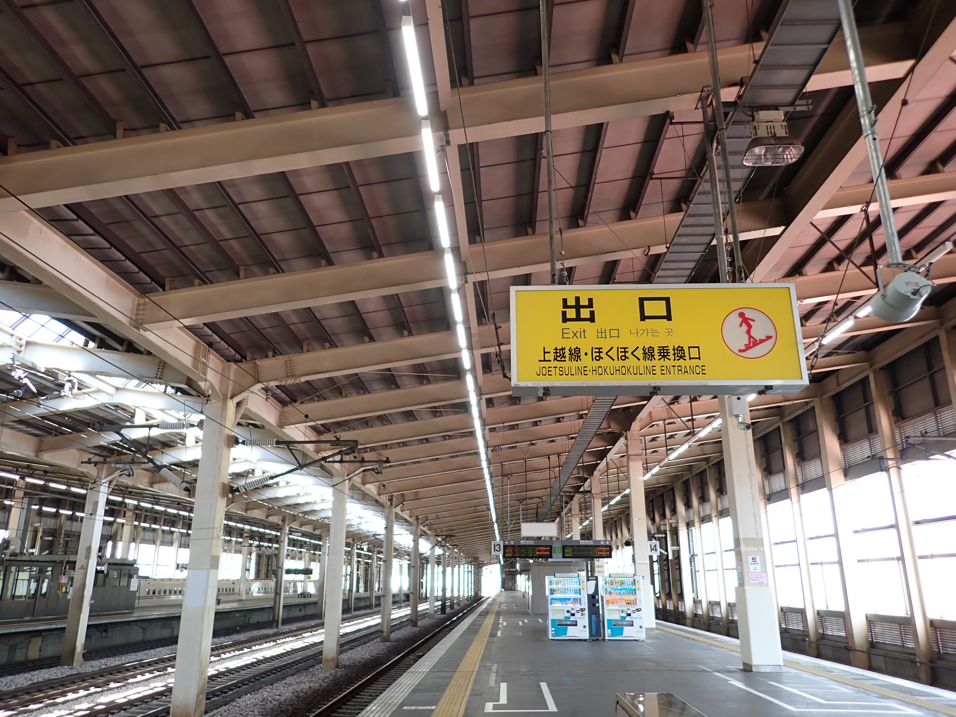 13・14番線の上毛高原駅側。この駅は両ホームに何台もこの番線標があります。