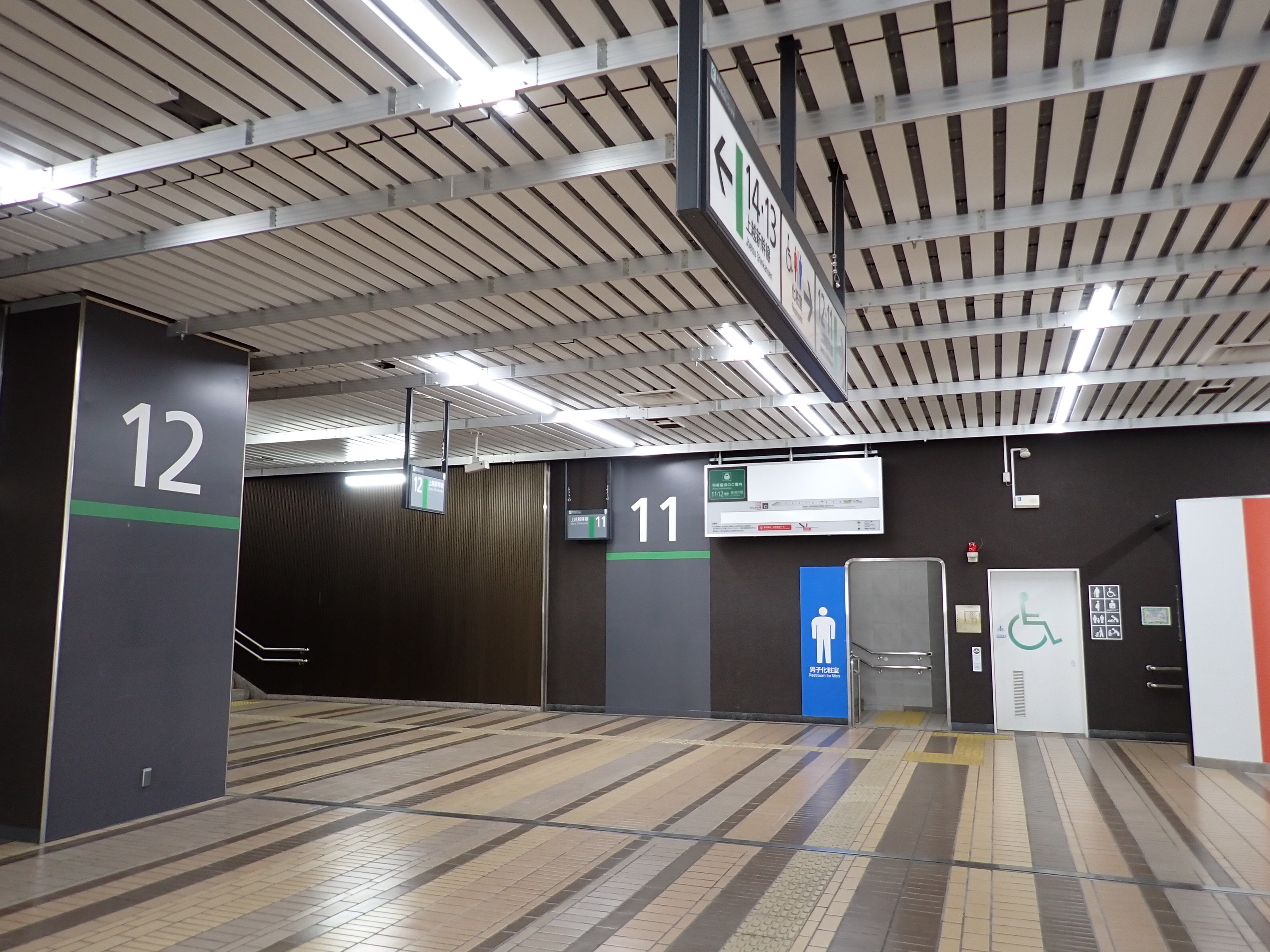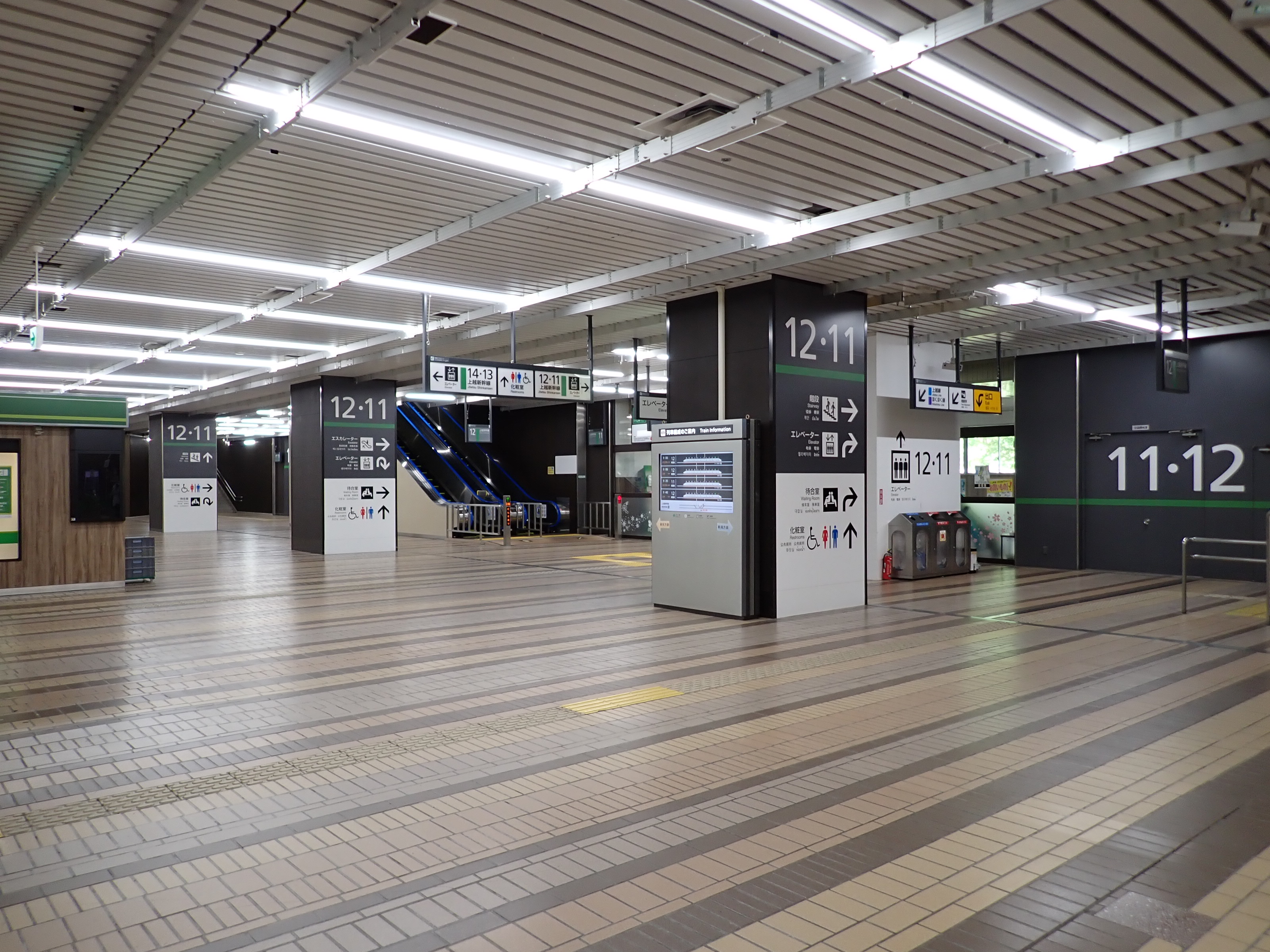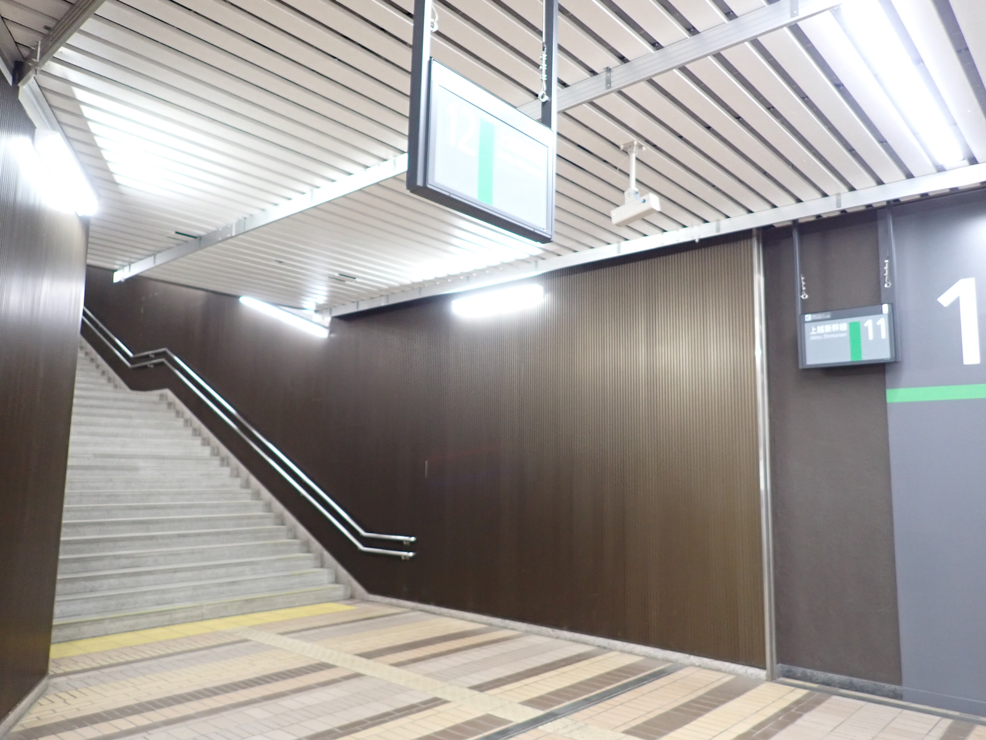 改札口側の階段・エスカレーターが対になっているところの階段から11・12番線へ。
