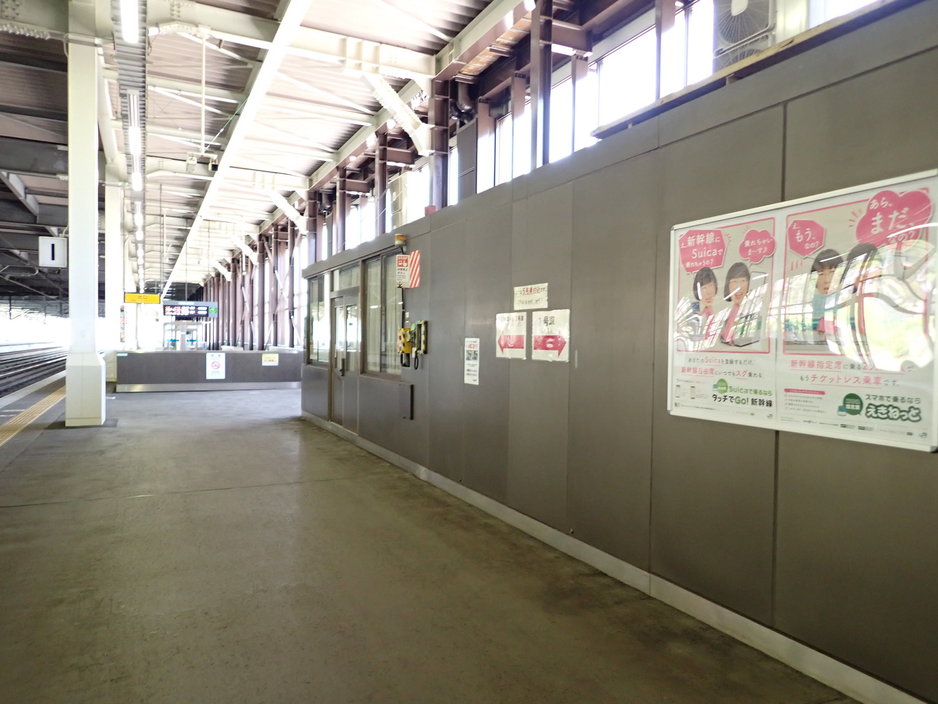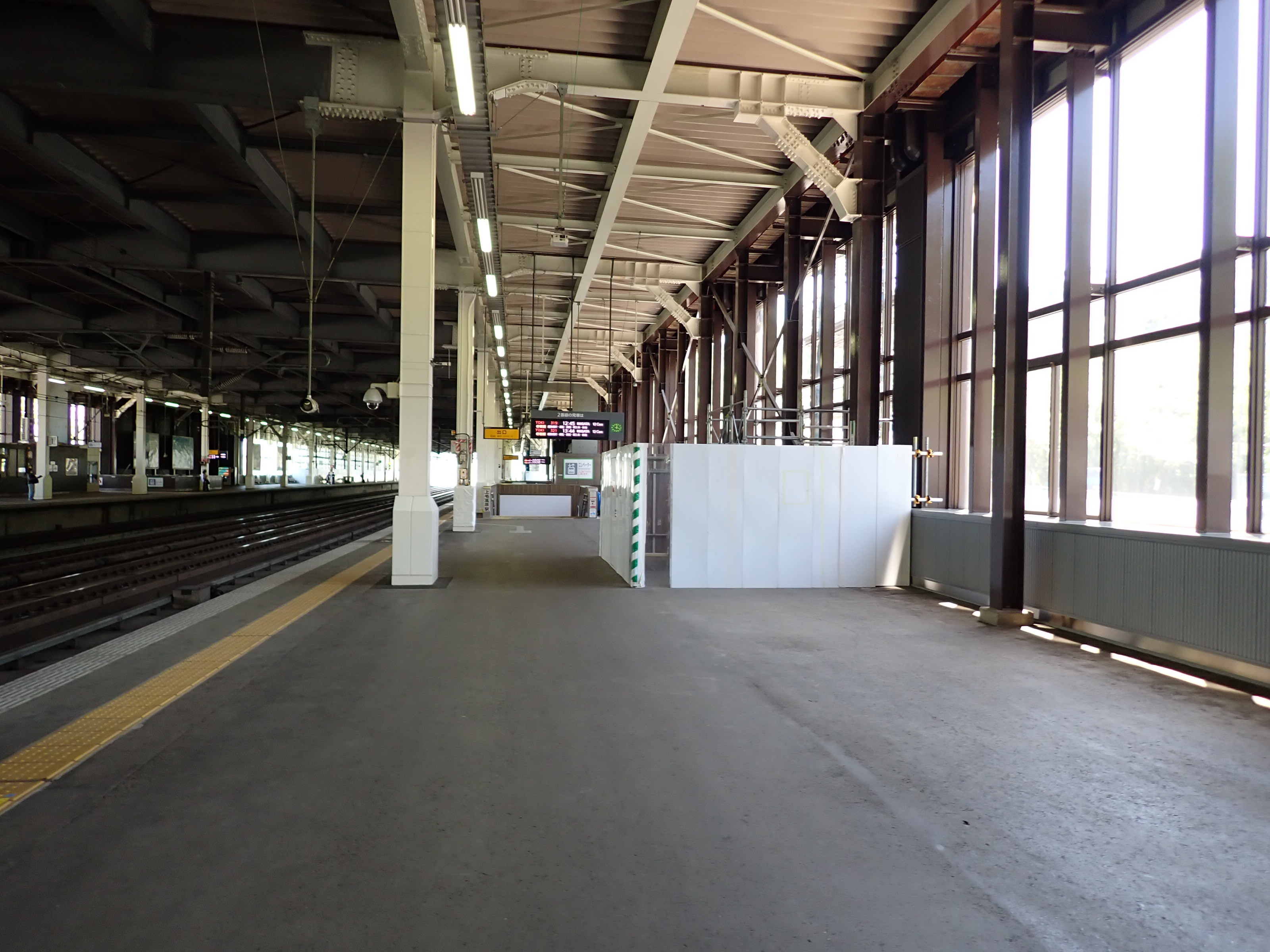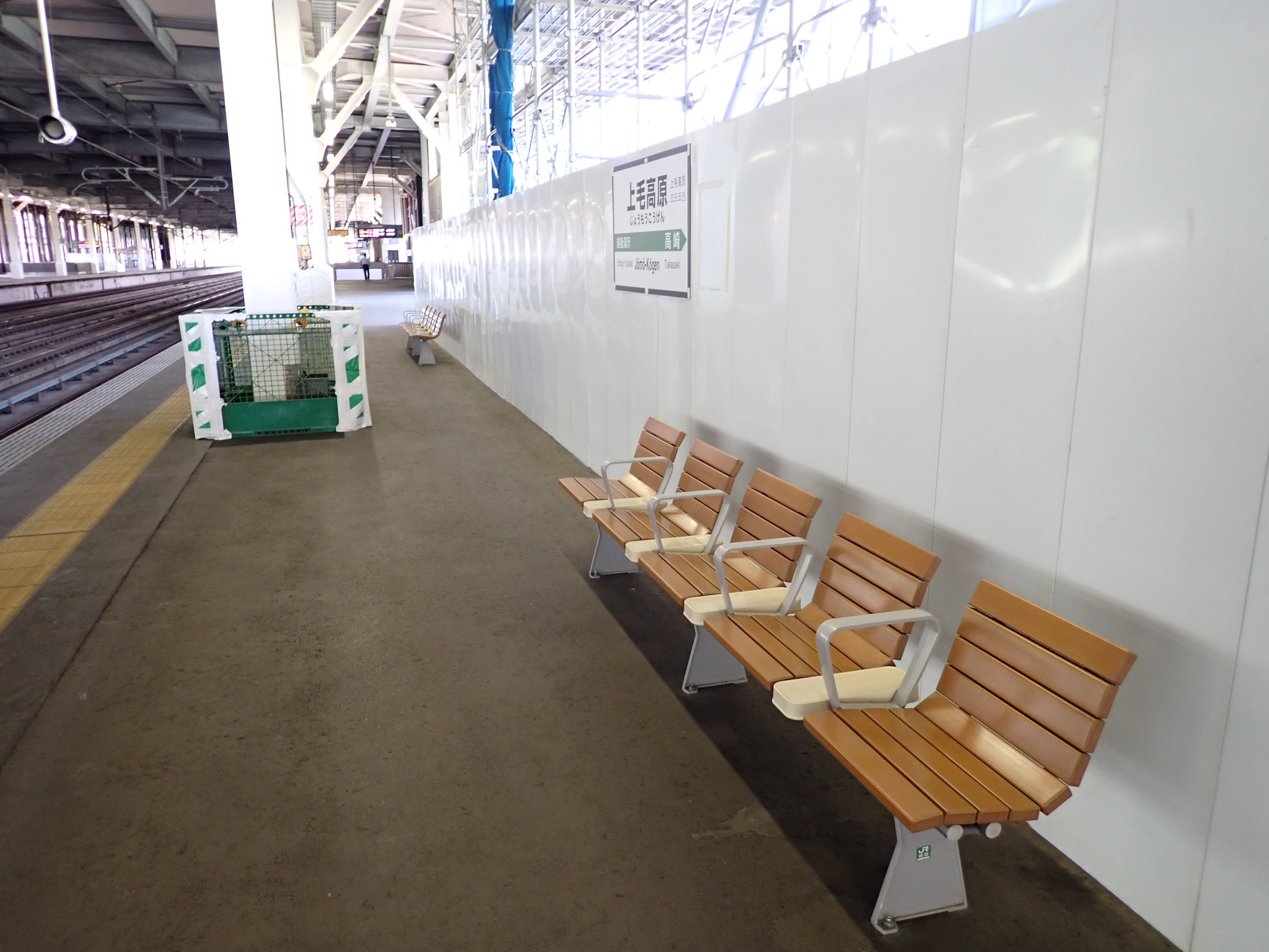 1番線の高崎駅側。工事のため仮囲いがされていました。