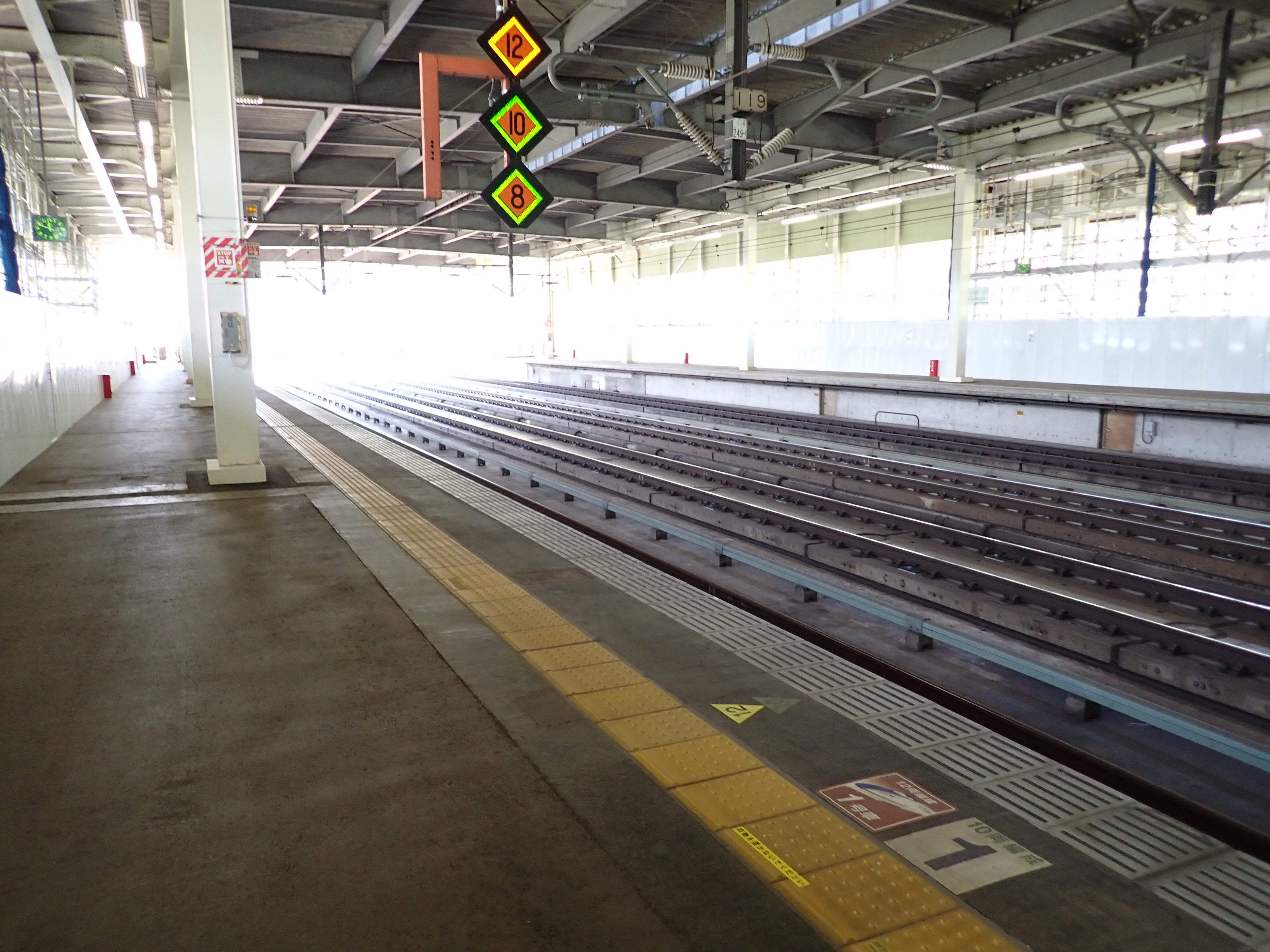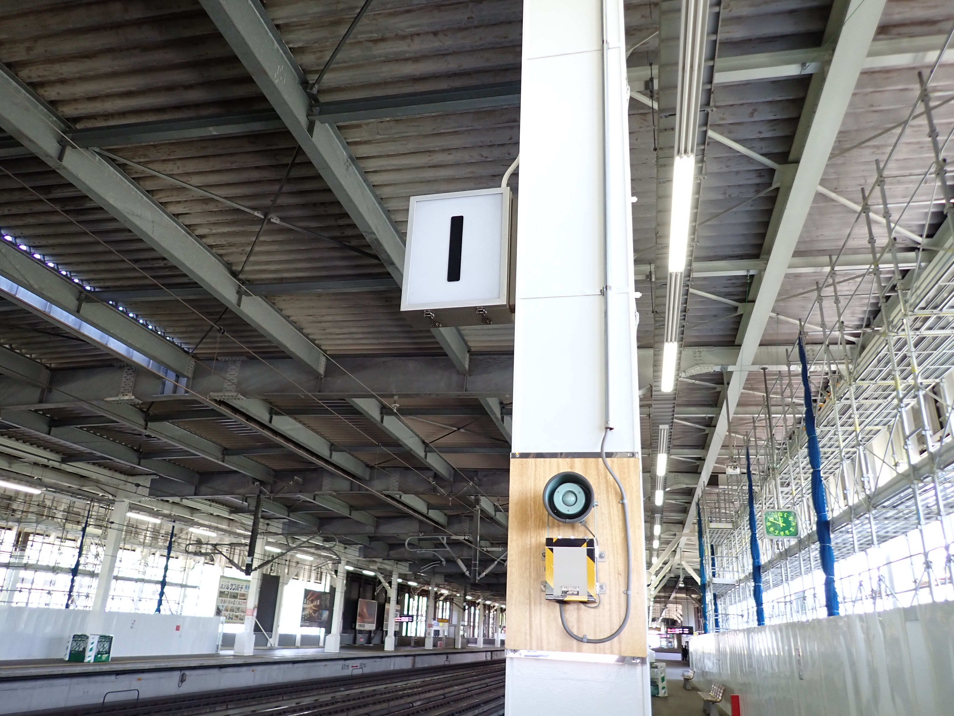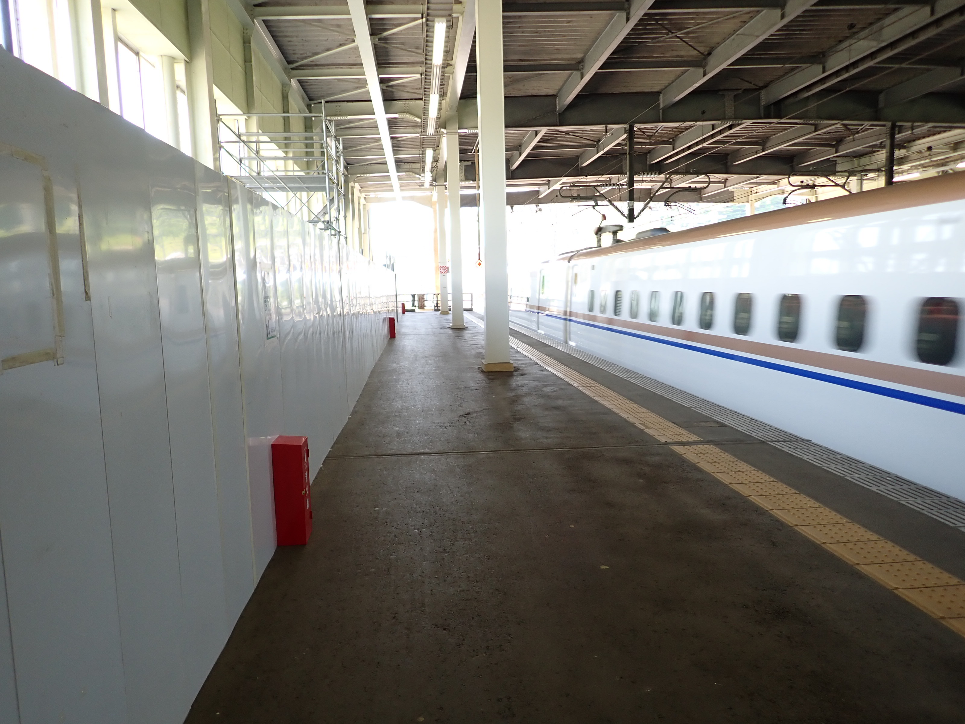 1番線の高崎駅側。工事のため仮囲いがされていました。