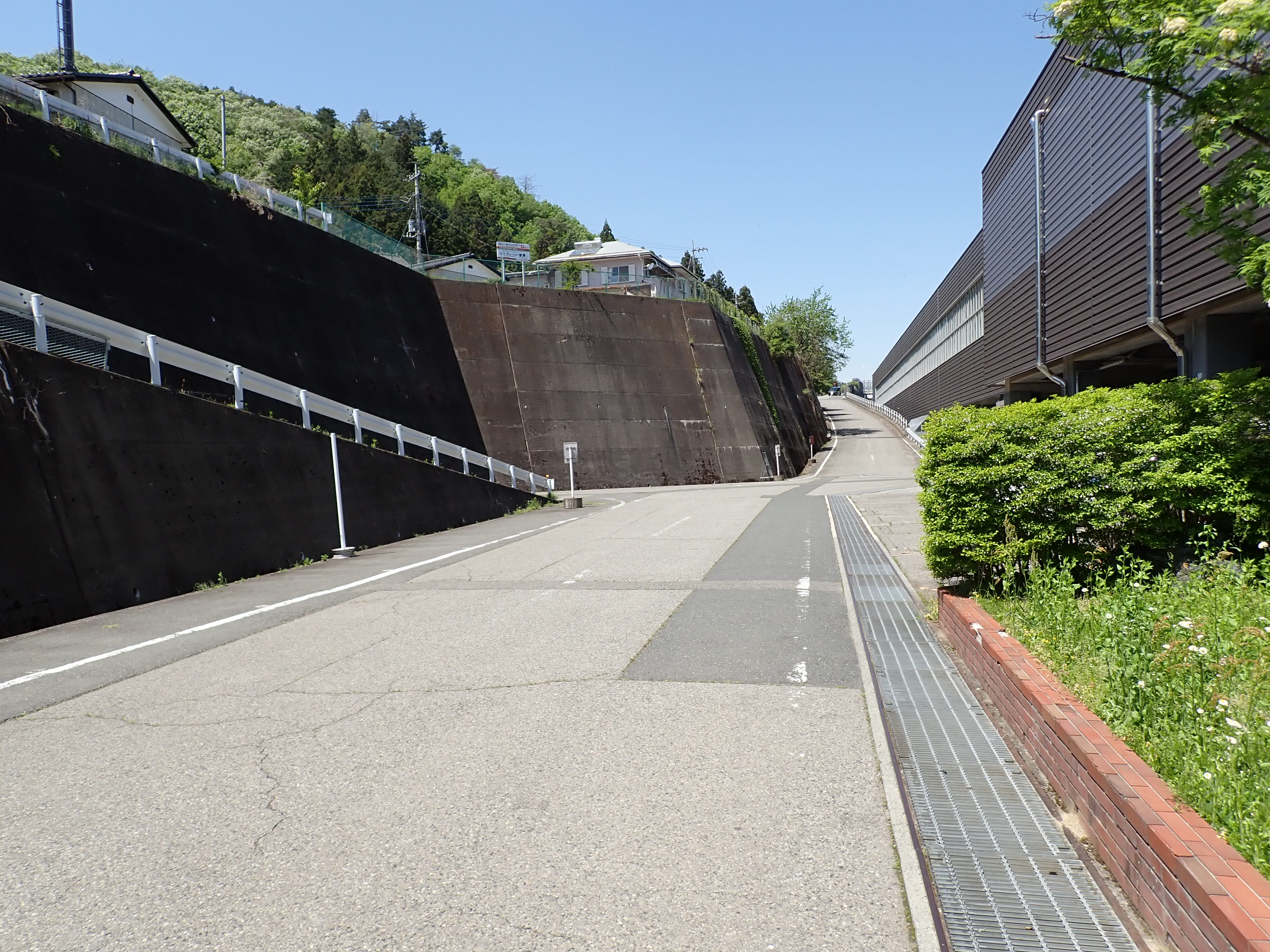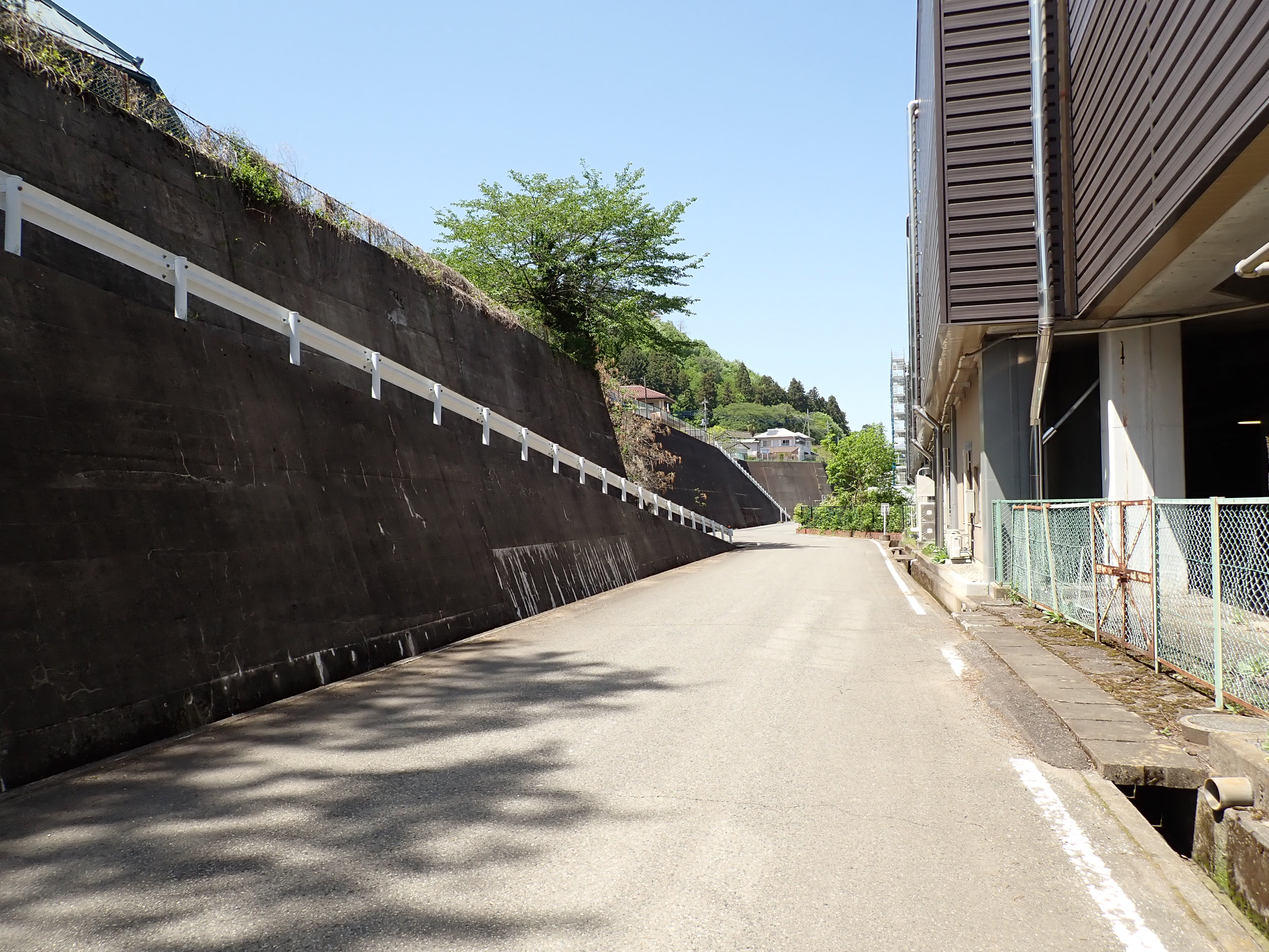 西口に戻ってきて、駅舎を背に左側に進み、坂を上がり少し戻って陸橋を渡ります。