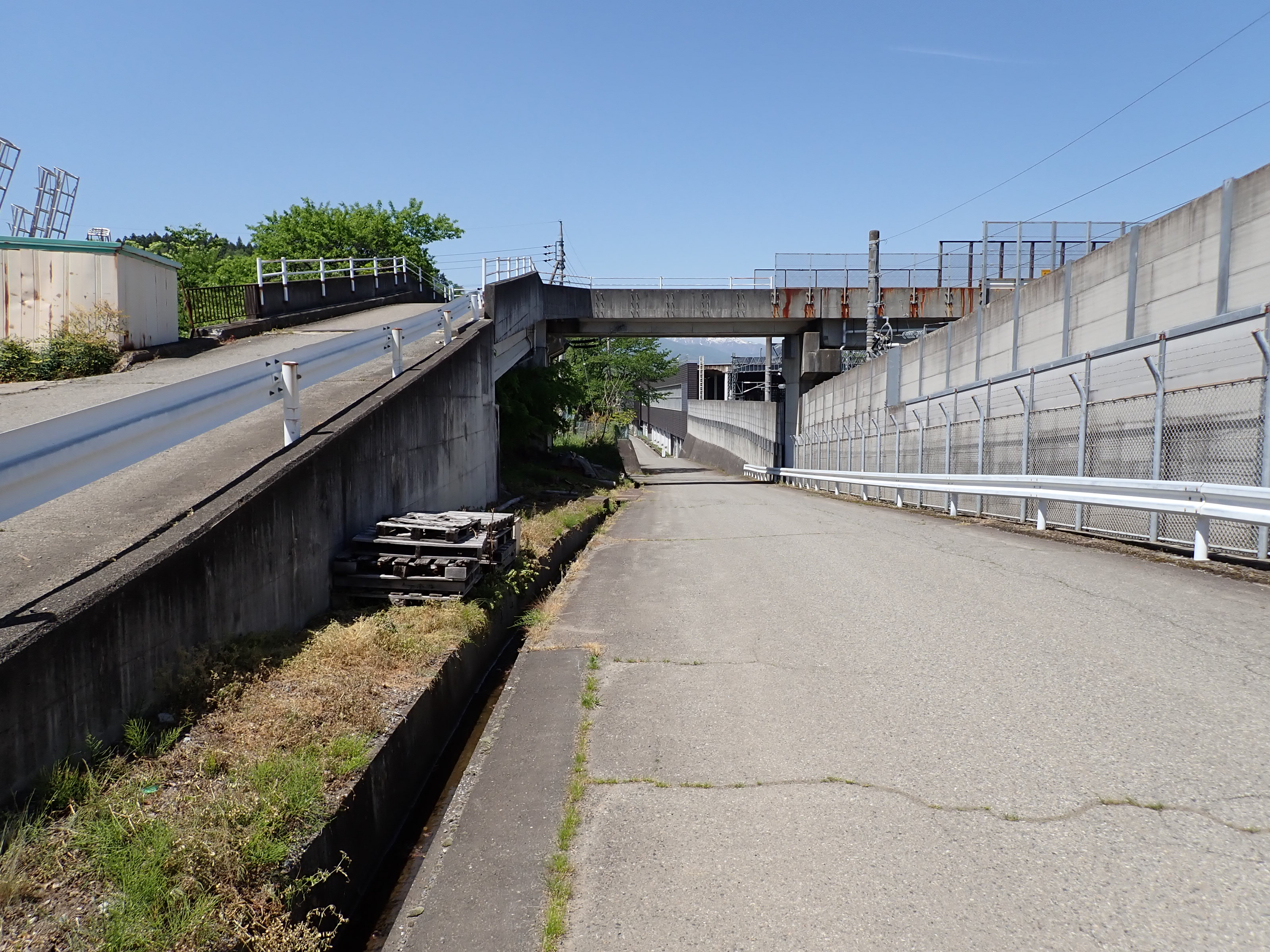陸橋を下りて駅の方へ進みます。