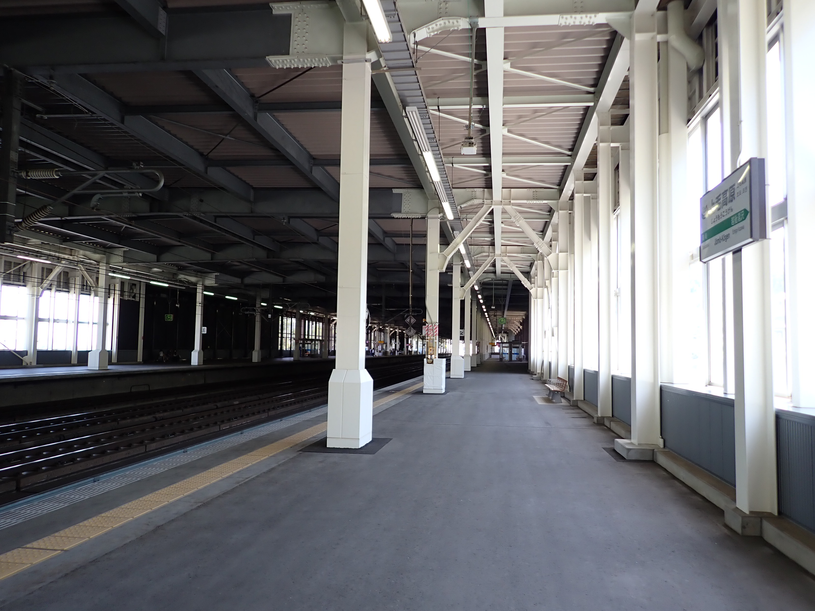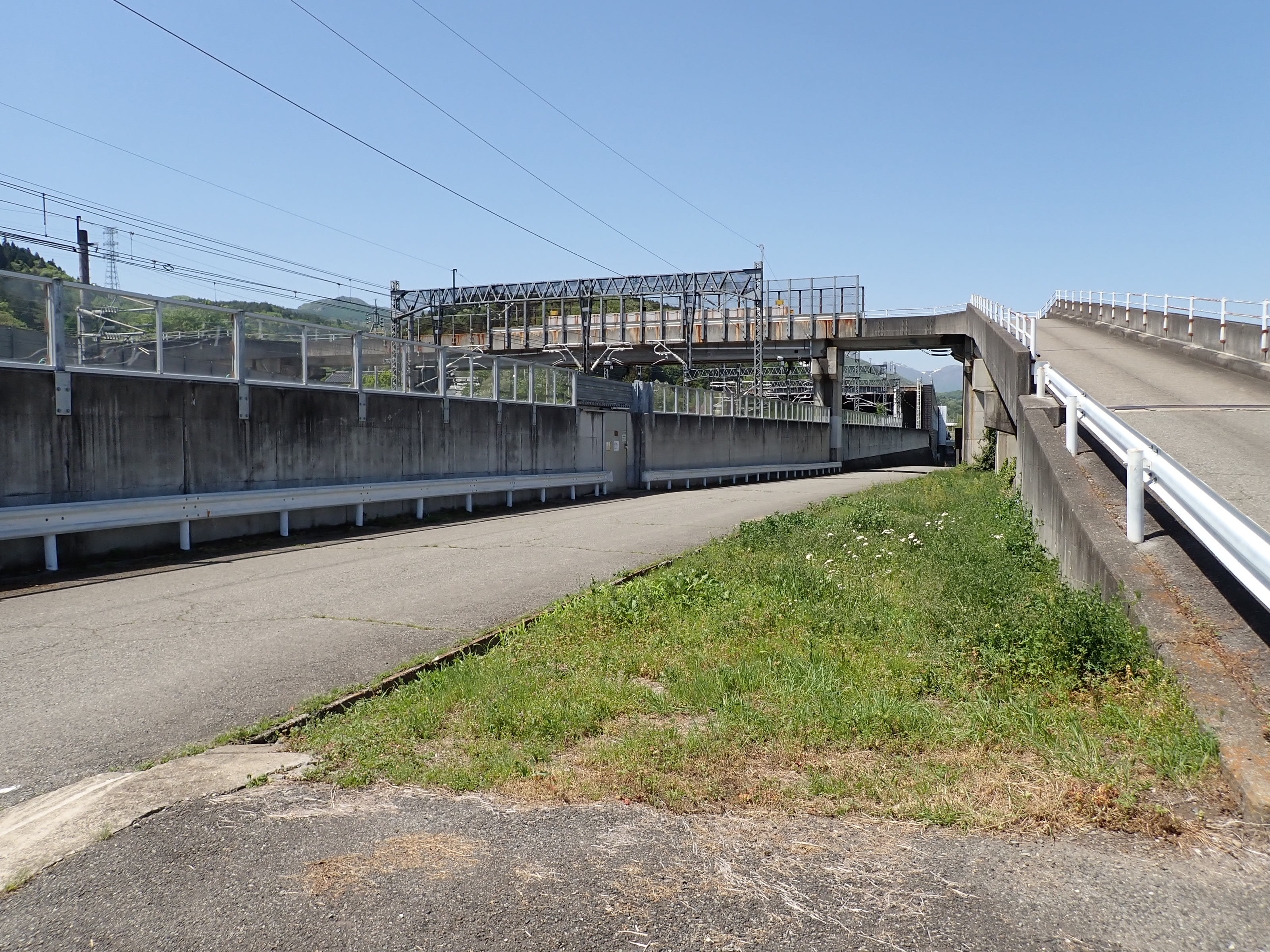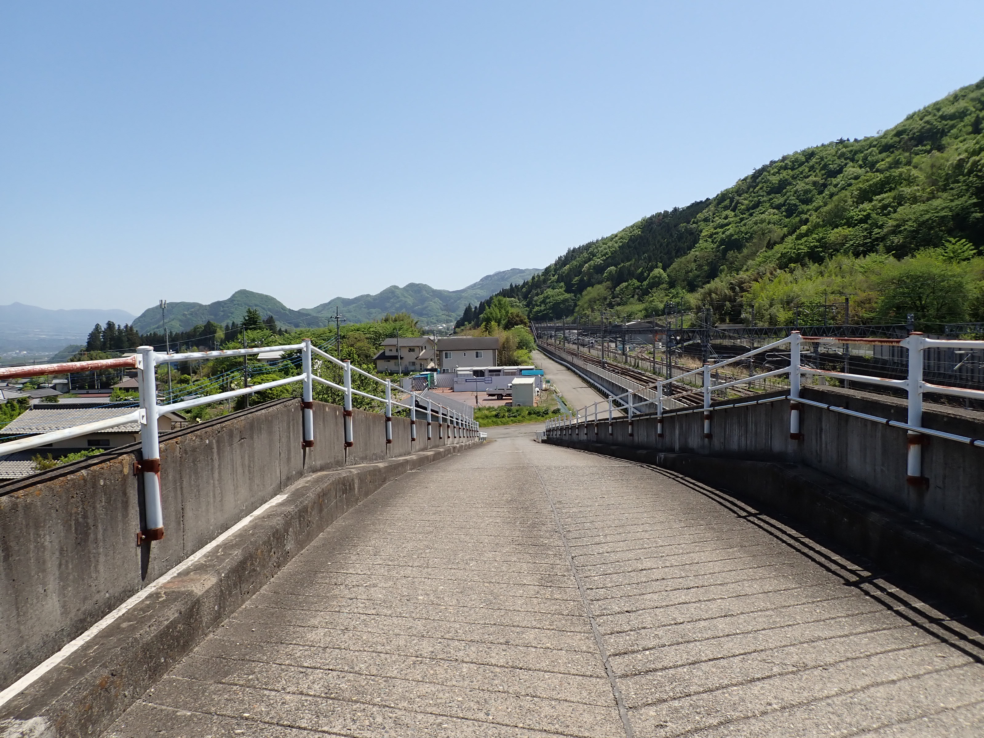 上毛高原駅を見ながら陸橋を渡ります。