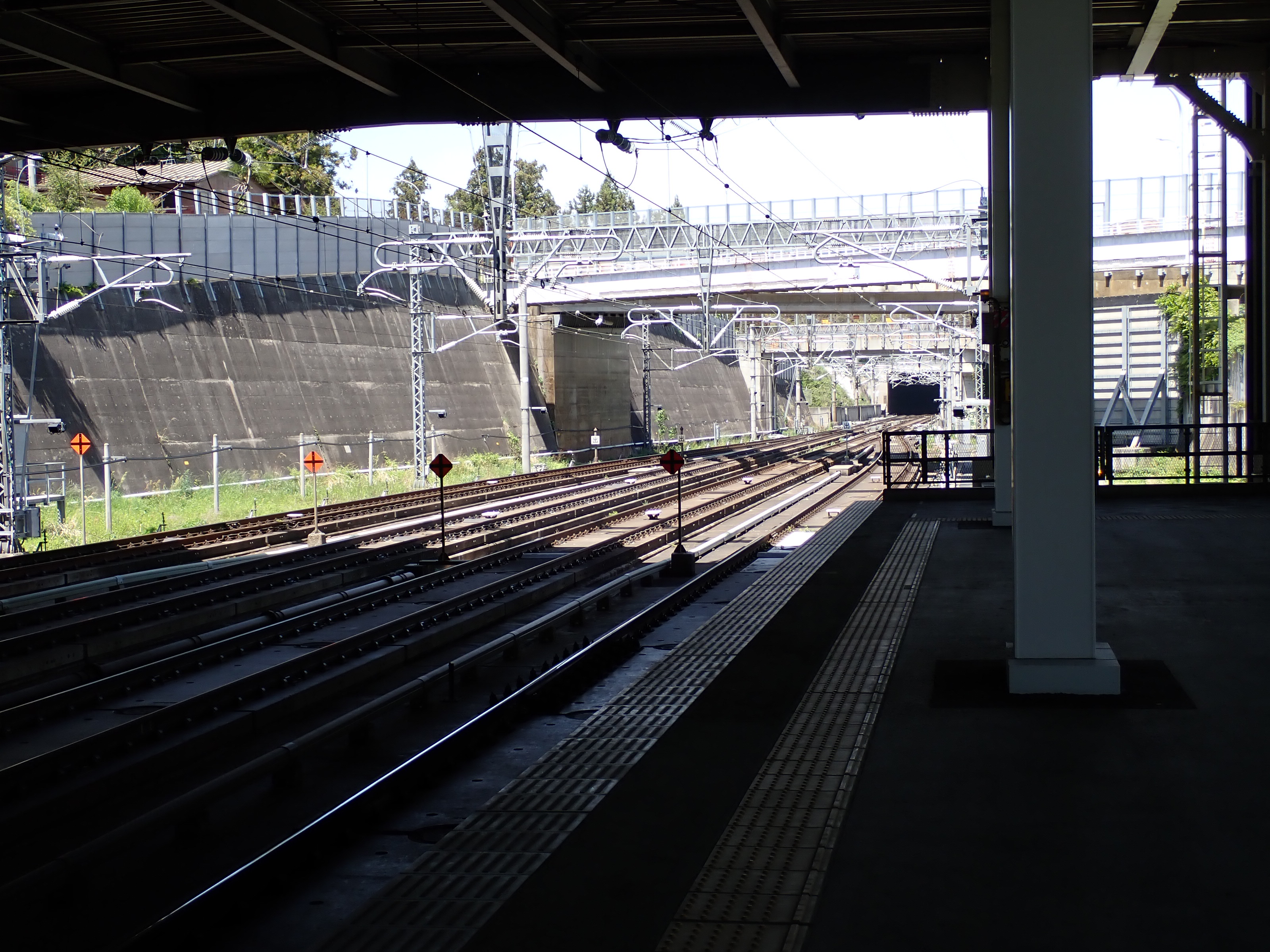 西口の駅前にある坂を上がって駅を見たところ。