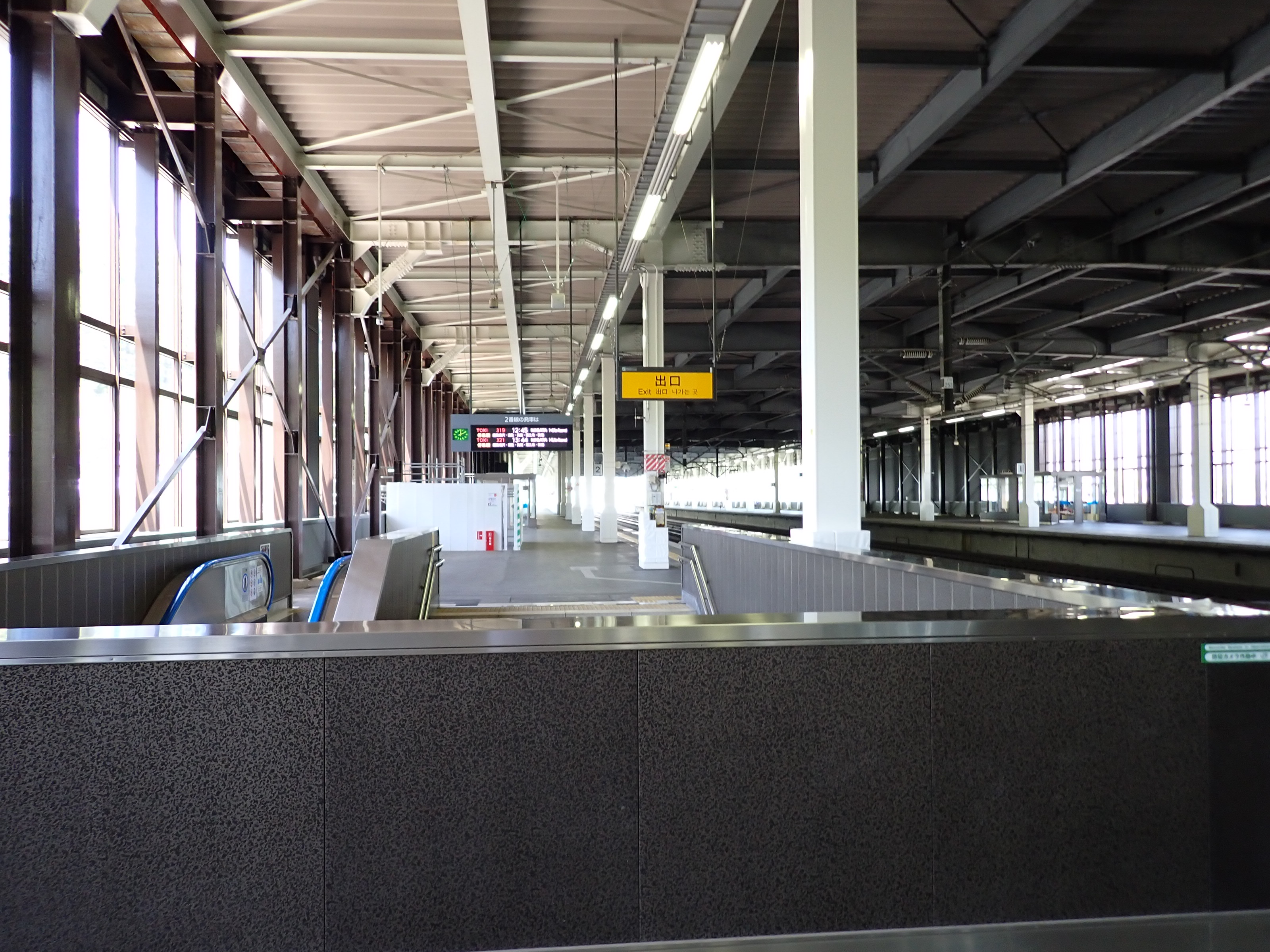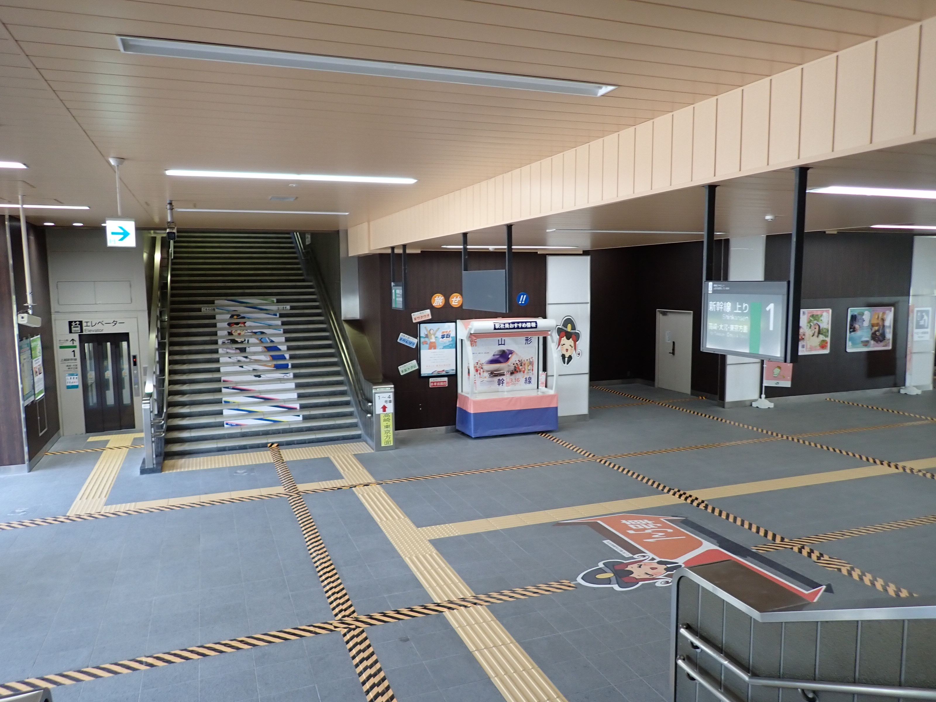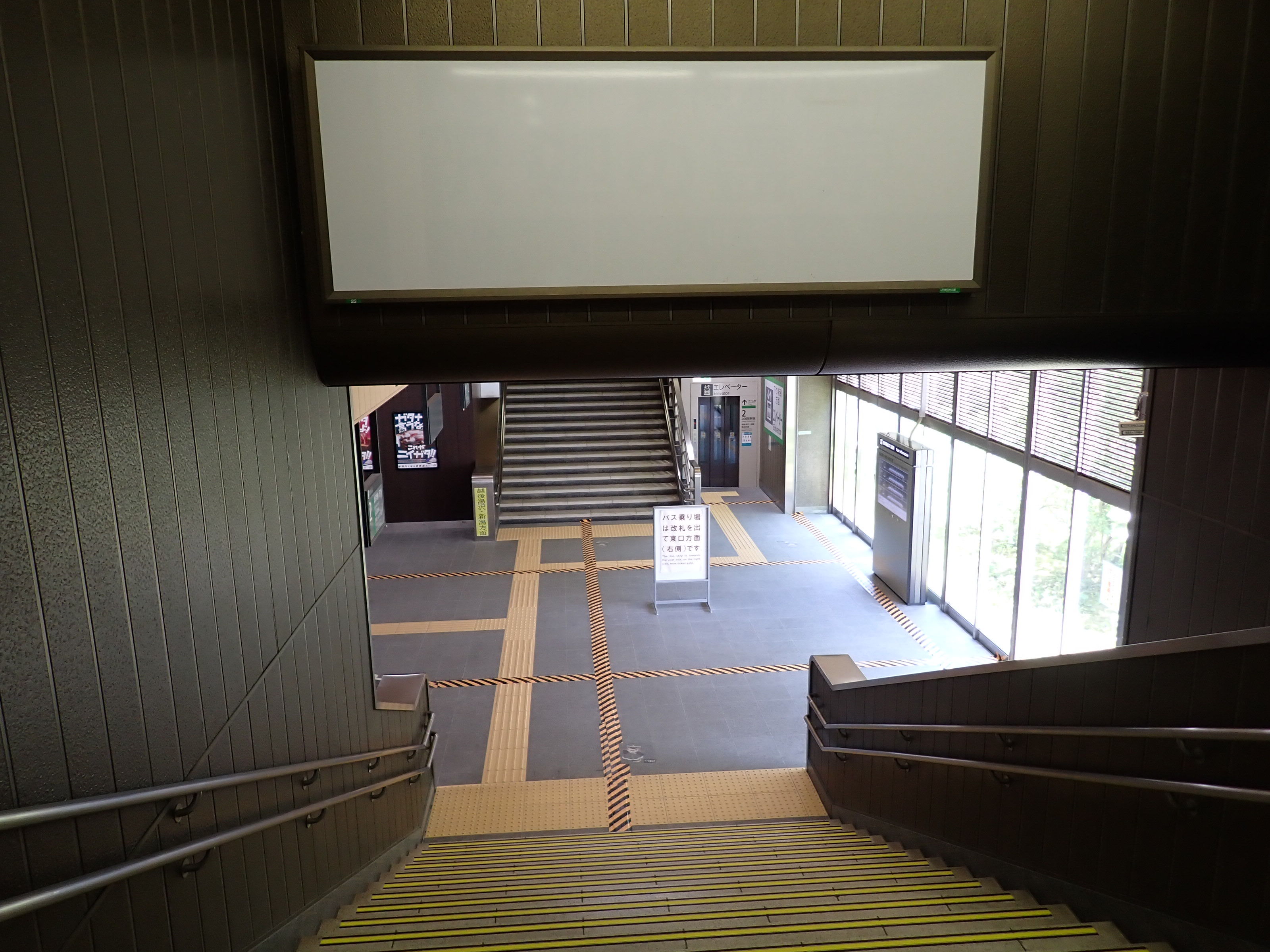 越後湯沢駅側の階段・エスカレーター付近の様子。