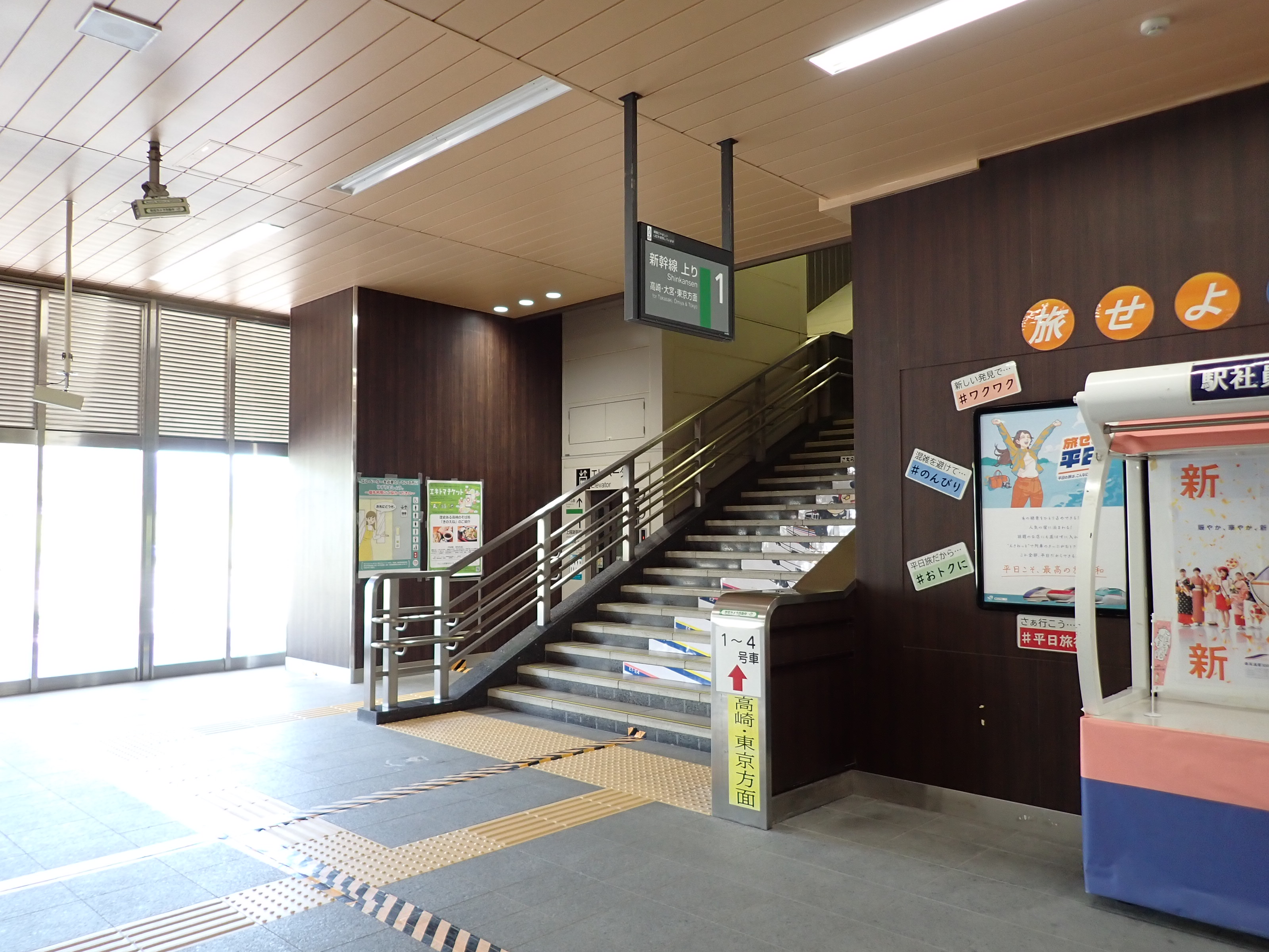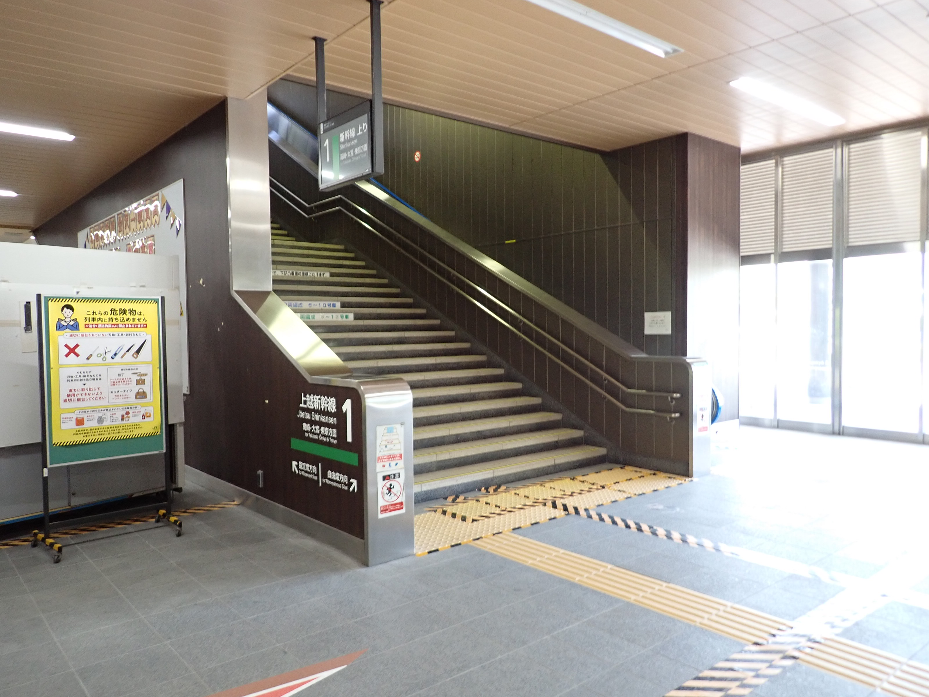 1番線高崎駅側の階段付近の様子。