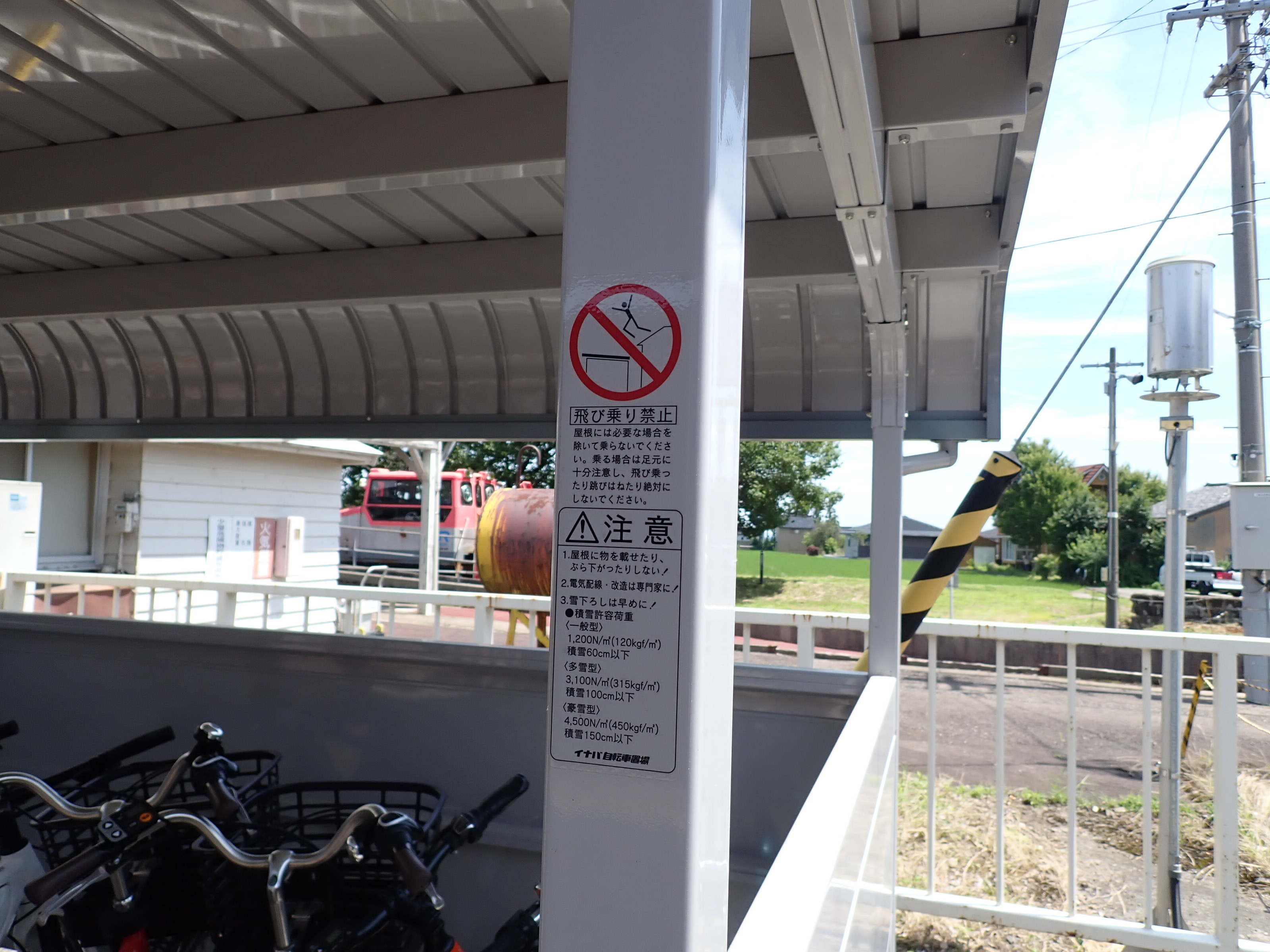 駅舎向かって右側、レンタサイクル用の駐輪場。