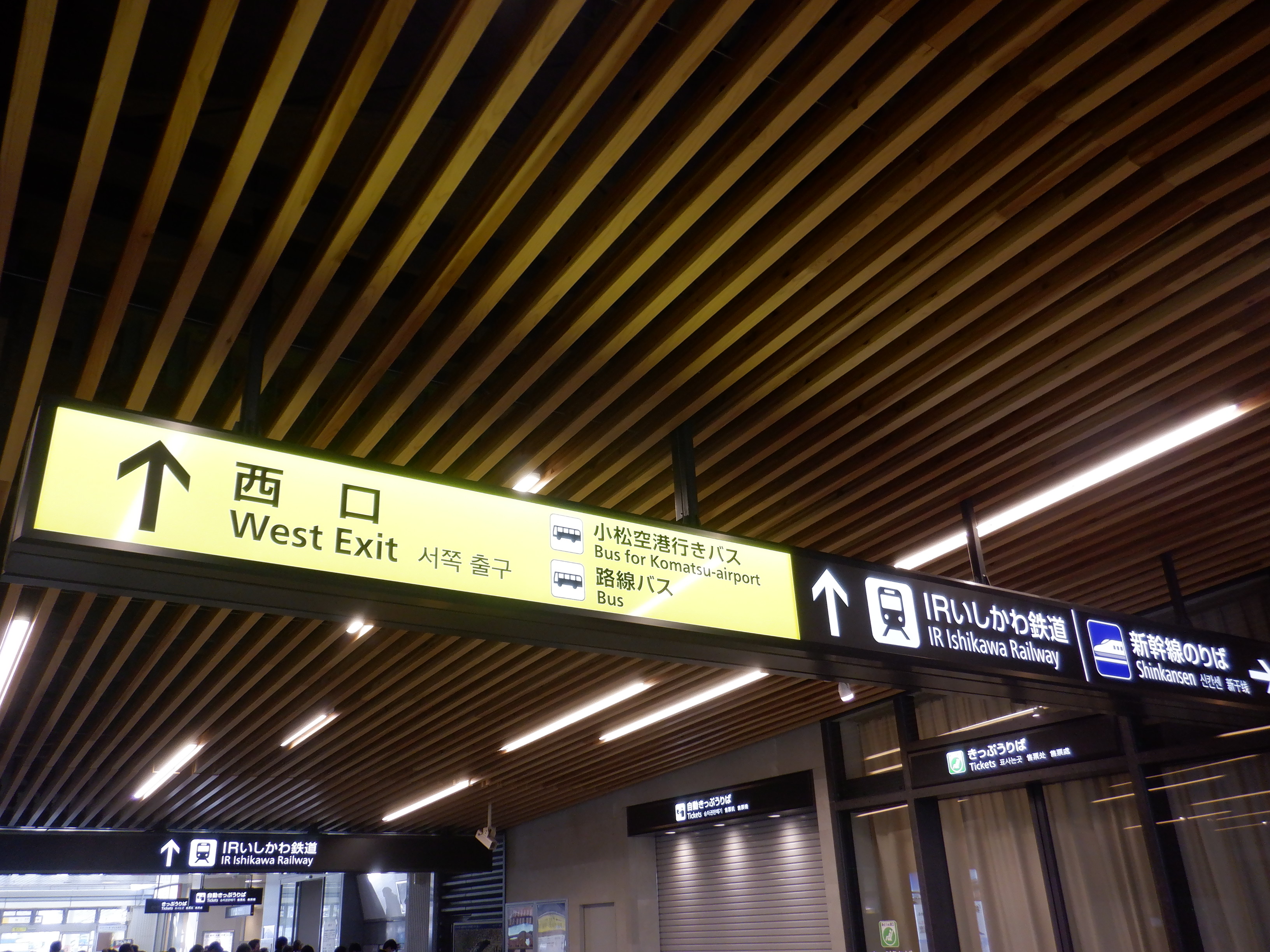 新幹線のりばとなるところ。IRいしかわ鉄道の表示もあります。