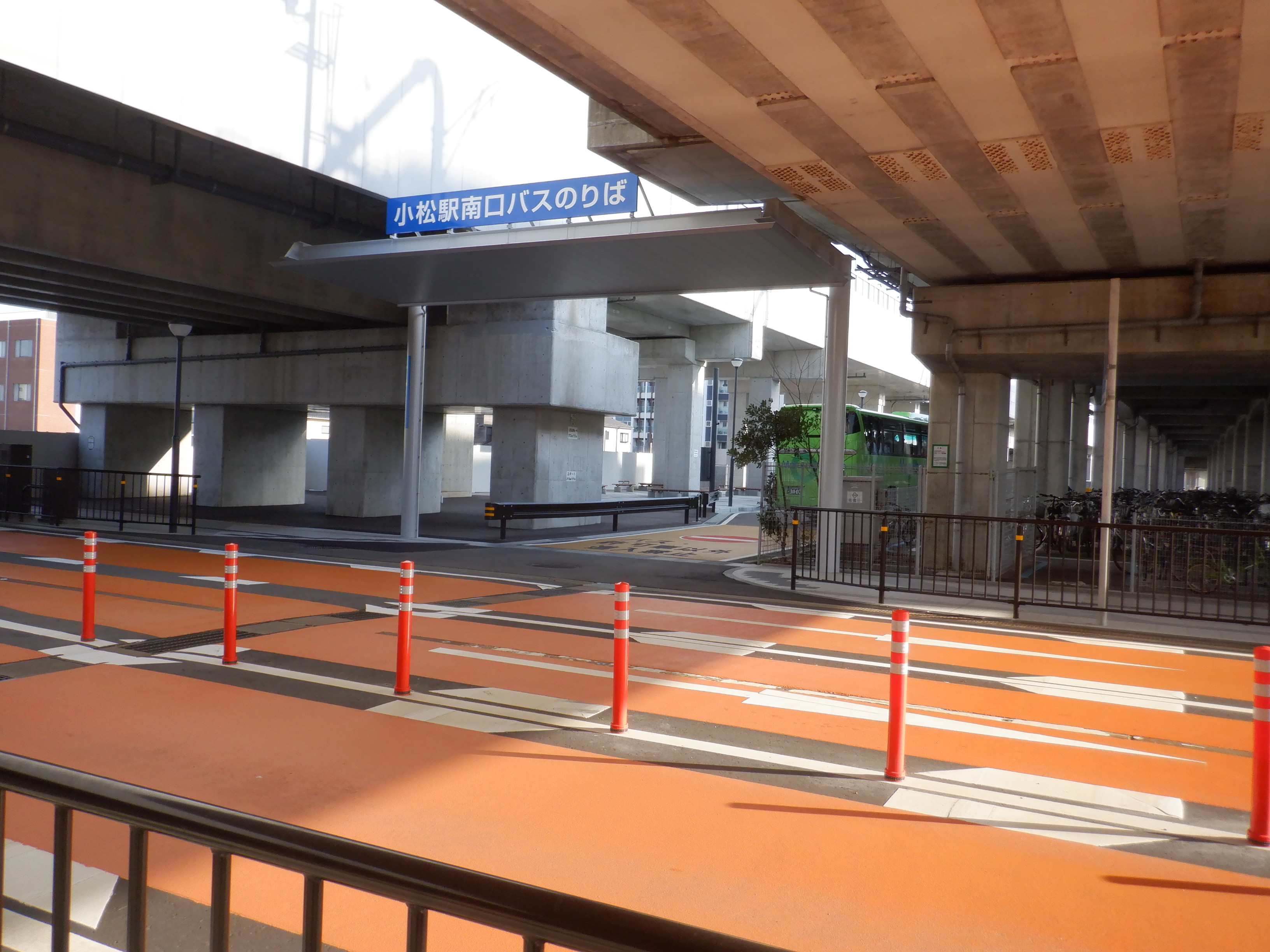 南口(高架下)バスのりばシェルター。完成して供用しているようです。